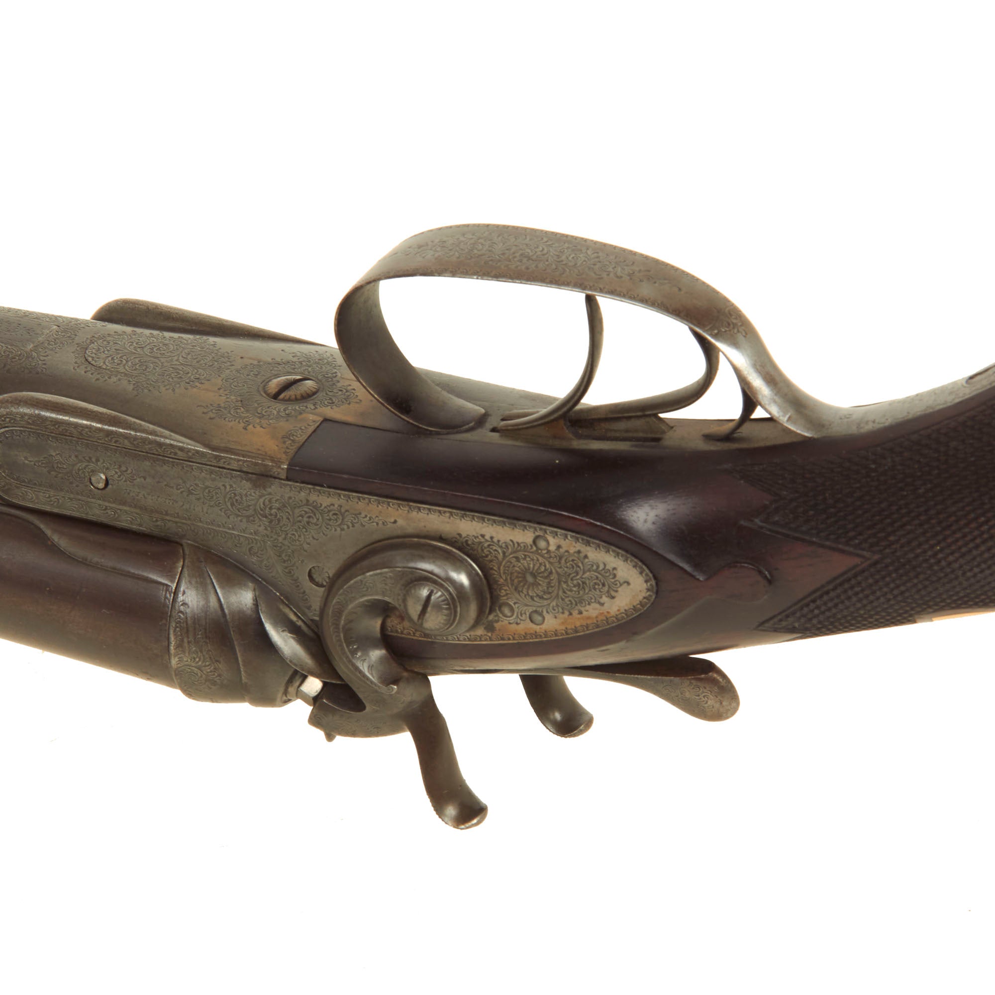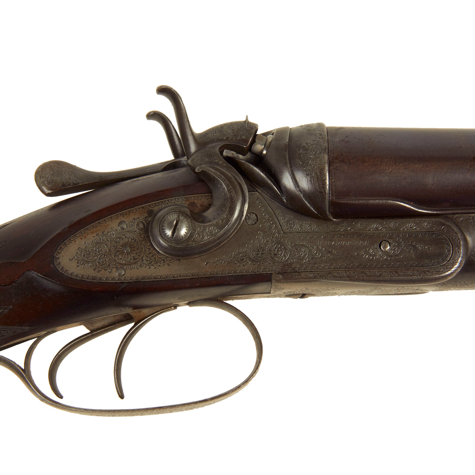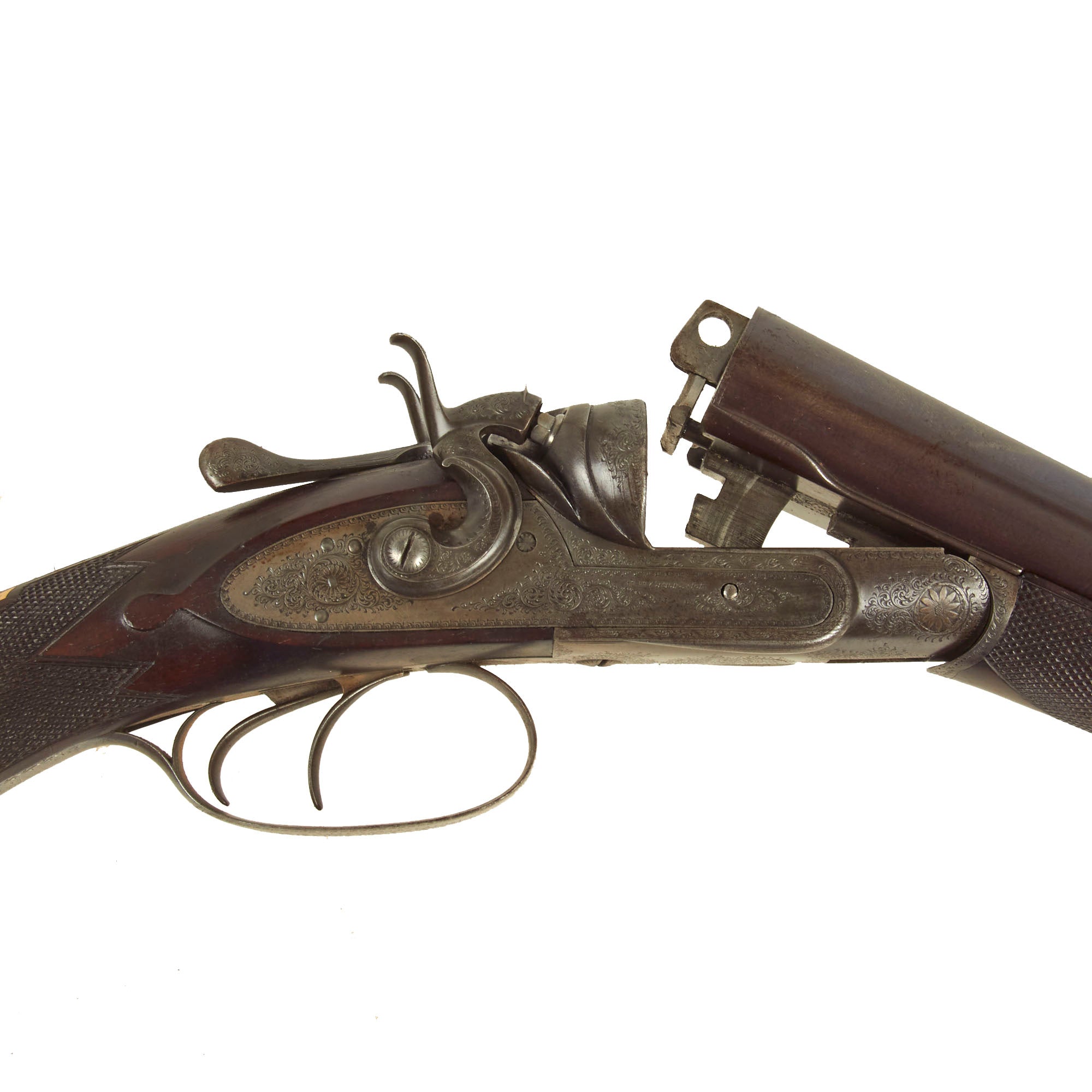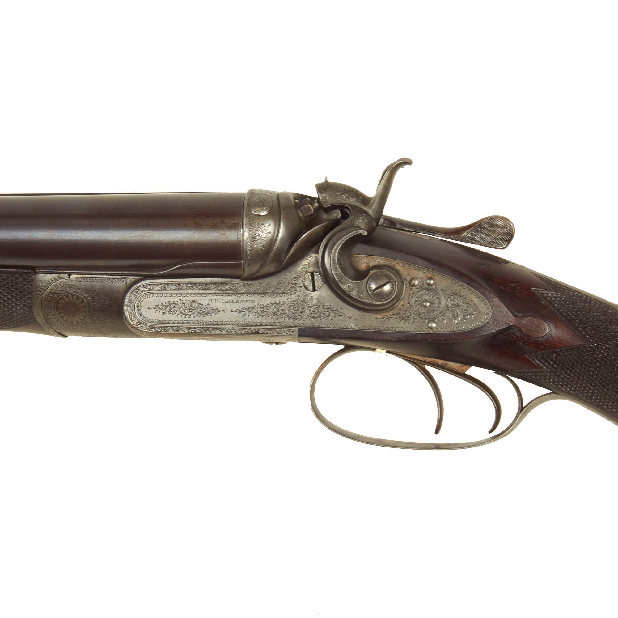 Original Item: Only One Available. Here we have a fantastic ornately engraved British-made Double Barreled Hammer shotgun, possibly intended for the large U.S. import market. It is marked on both lock plates by maker W.W. GREENER, a very well-known and respected British gun making firm, whose history reaches back almost 200 years! William Greener had been working for the prominent London gun maker Joseph Manton, before returning to his home in Newcastle to found the W. Greener Company in 1829. In 1844, having realized that almost all of his supplies were coming from Birmingham, he moved his production to the city, and during 1845-58 was appointed gunmaker to Prince Albert, the Prince-Consort of Queen Victoria. The company became quite prosperous at this time, and opened a factory on "Rifle Hill" in the Aston area of Birmingham. However, William Greener was a very firm believe in muzzle loading firearms, and refused to make any breechloading guns.