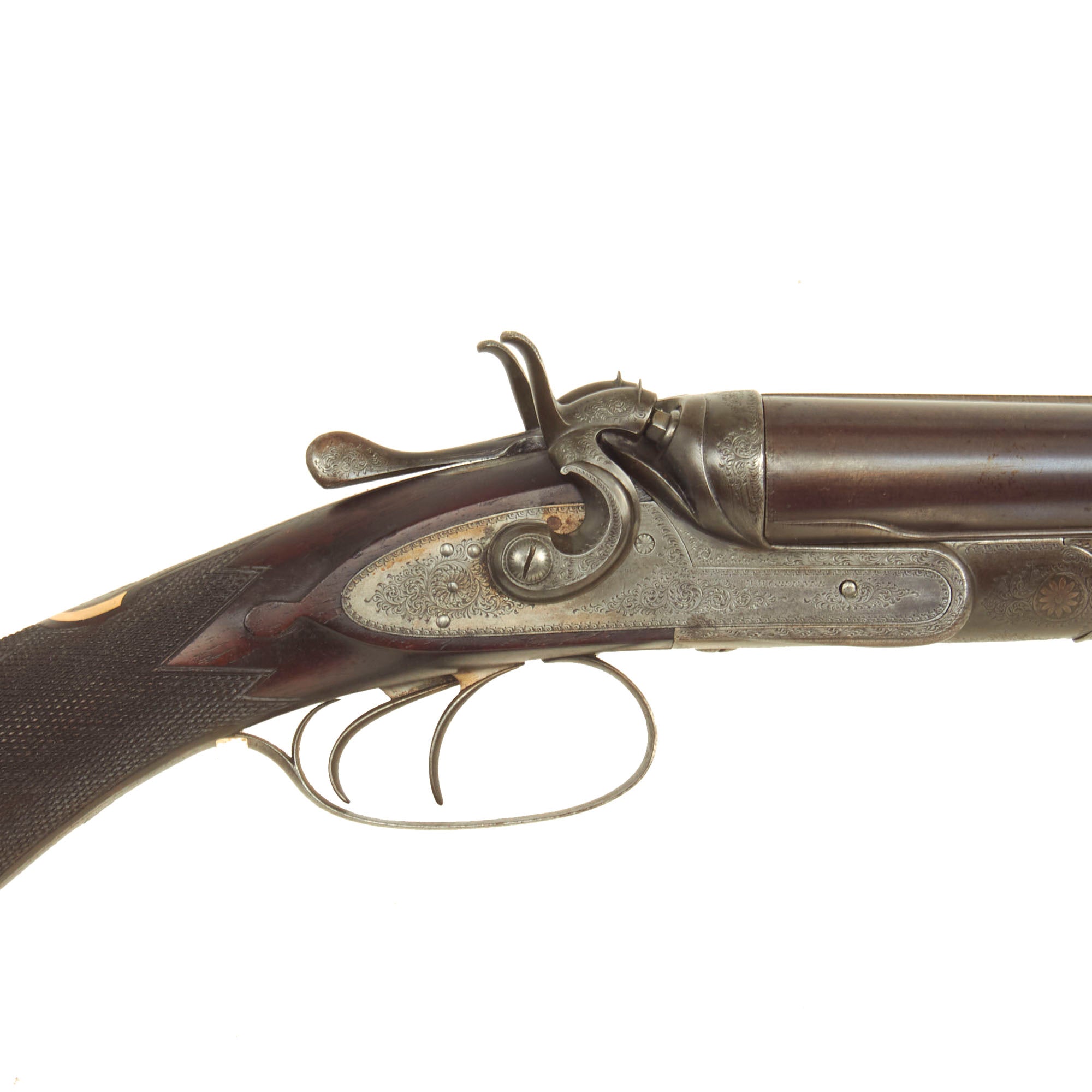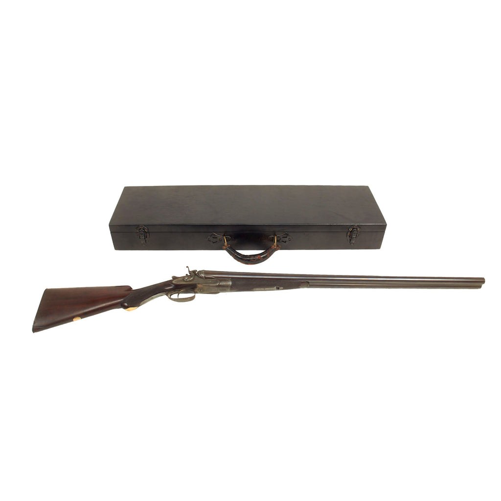 A truly lovely antique hammer shotgun by a very famous maker, made right during the period when they achieved true fame for their designs! Complete in a custom wood case, this lovely piece is ready to research and display!
