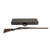 The case measures 31 1/2" x 8 1/2" x 4", and has two functional latches on the front, as well as a nice carry handle. Inside the case is a very nice period multi-piece cleaning rod.