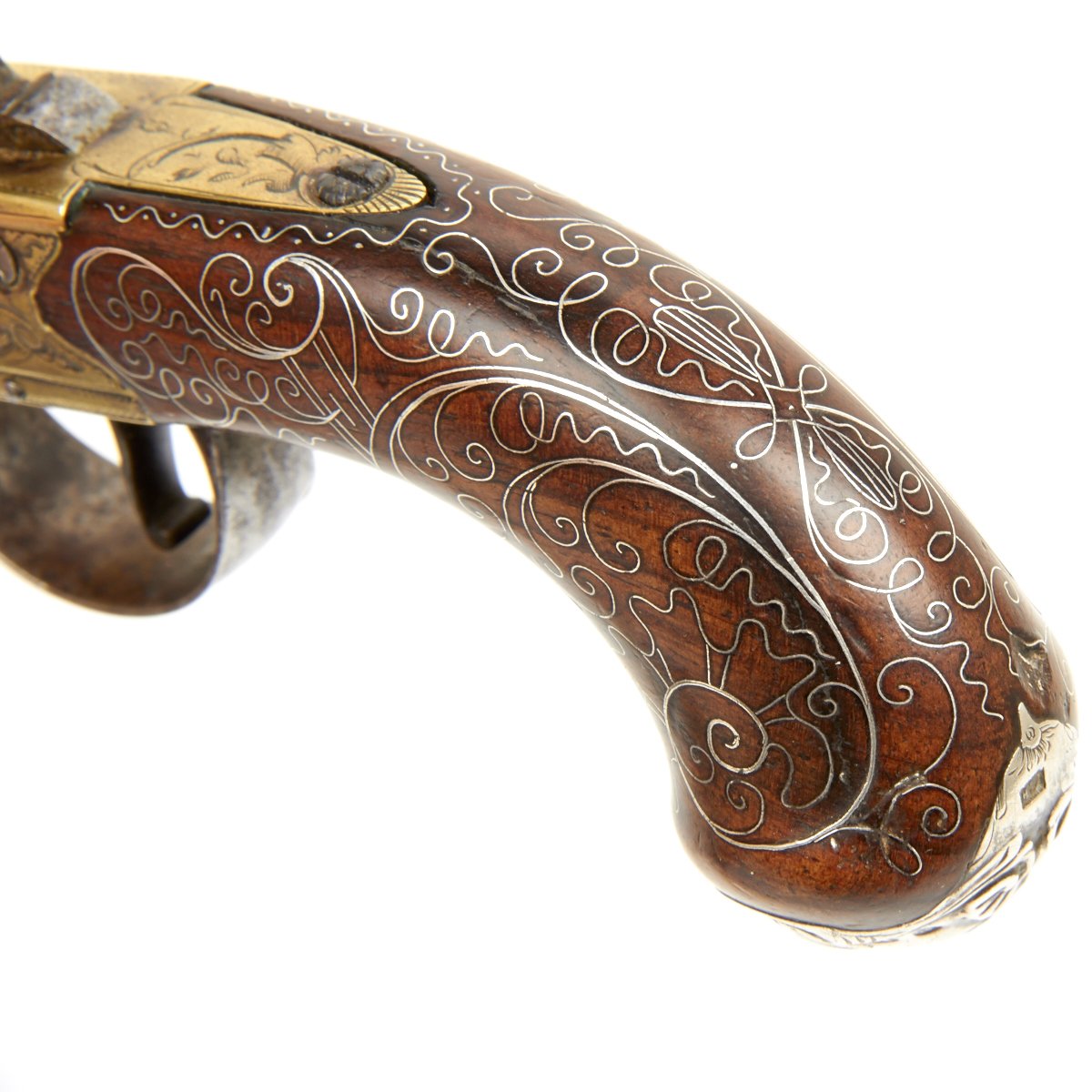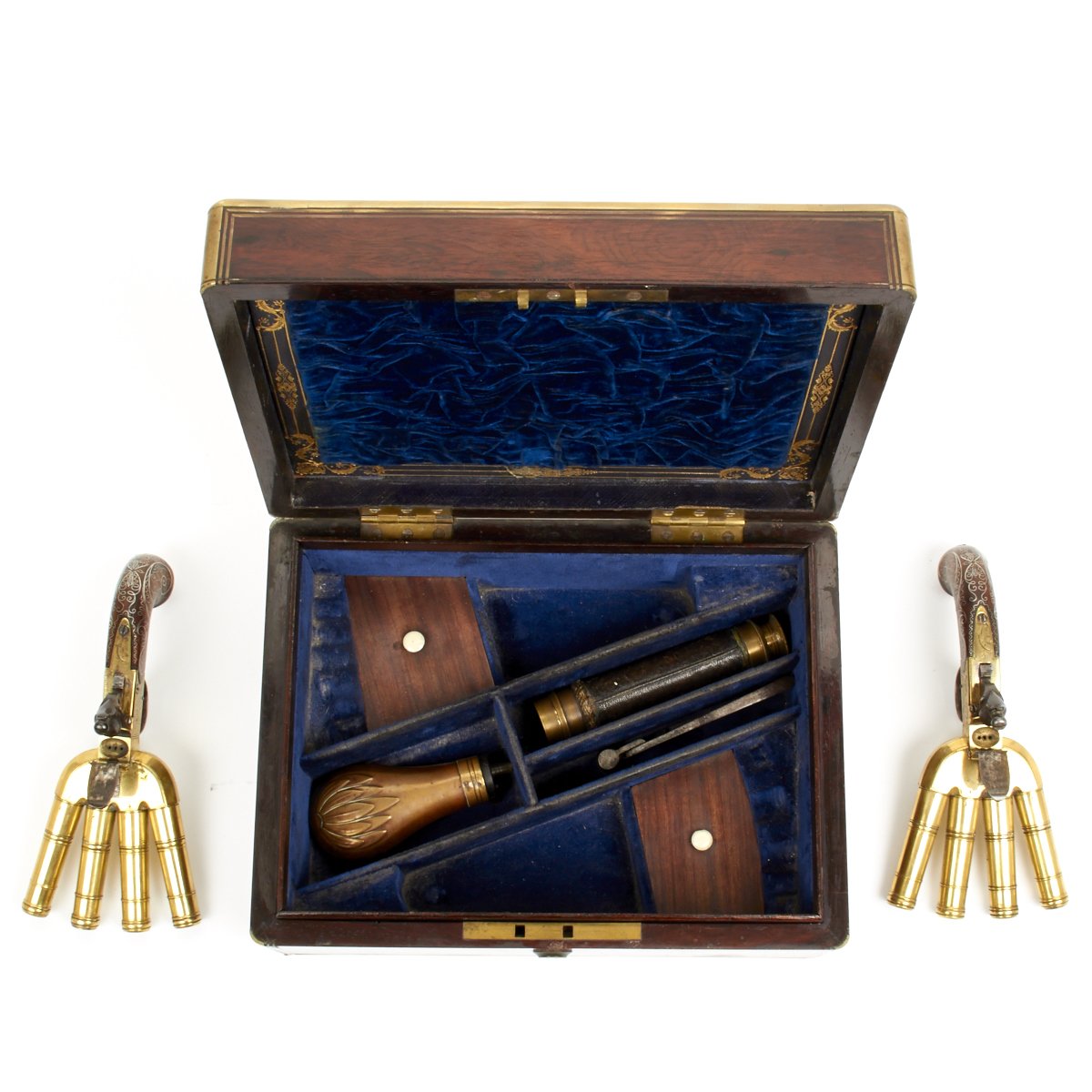 Ducks foot pistols are highly prized by collectors most were originally purchased by wealthy owners more often than not by a Naval Officer or his family to discourage mutiny, an all too common event in the harsh Naval times of King George III. Those that do come to the market are typically from a deceased collector's estate which would indicate that such unusual weapons are the last things a collector wishes to part with.