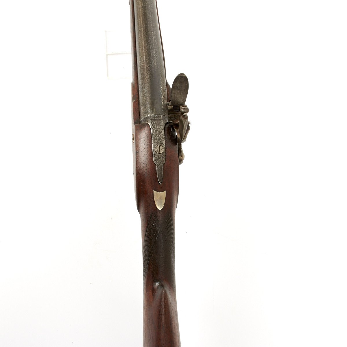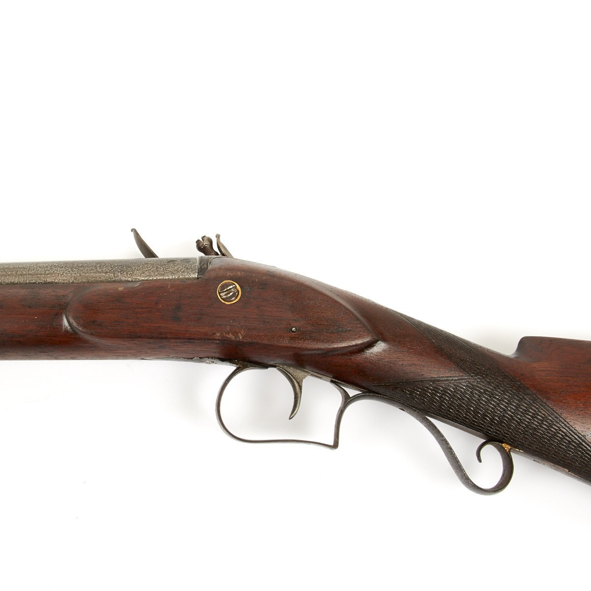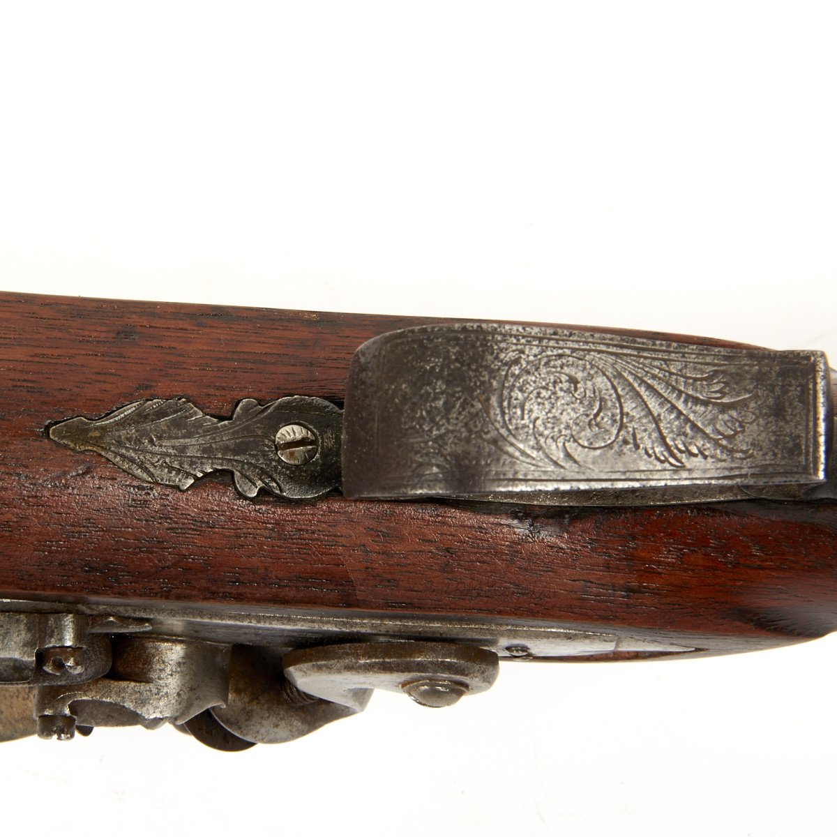The weapon has engraved steel mounts and still retains a steel ramrod. The piece dates from