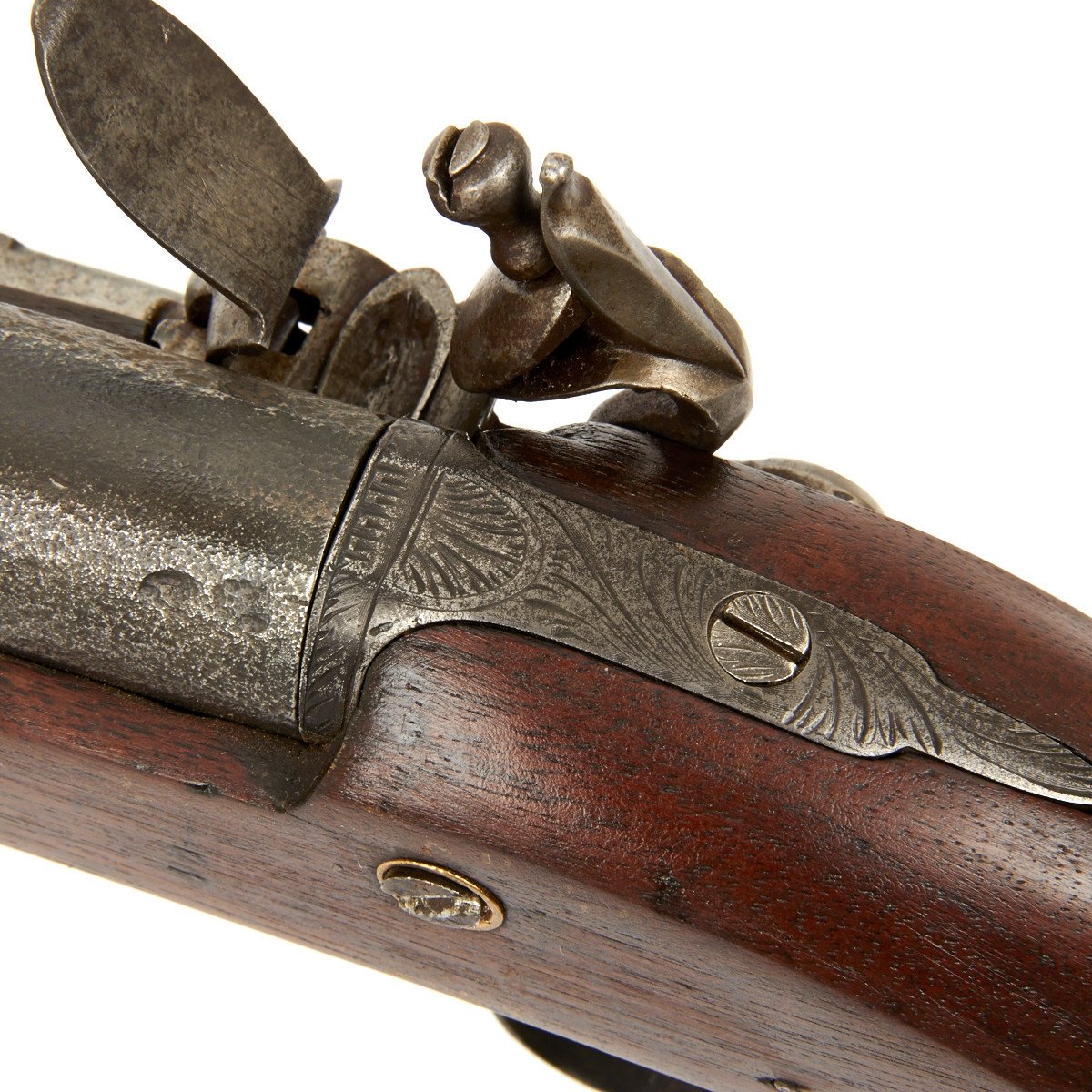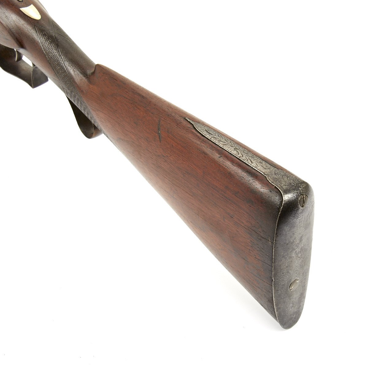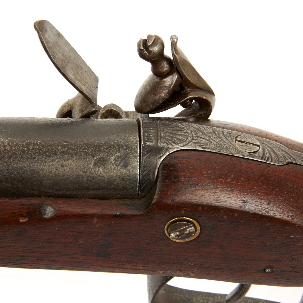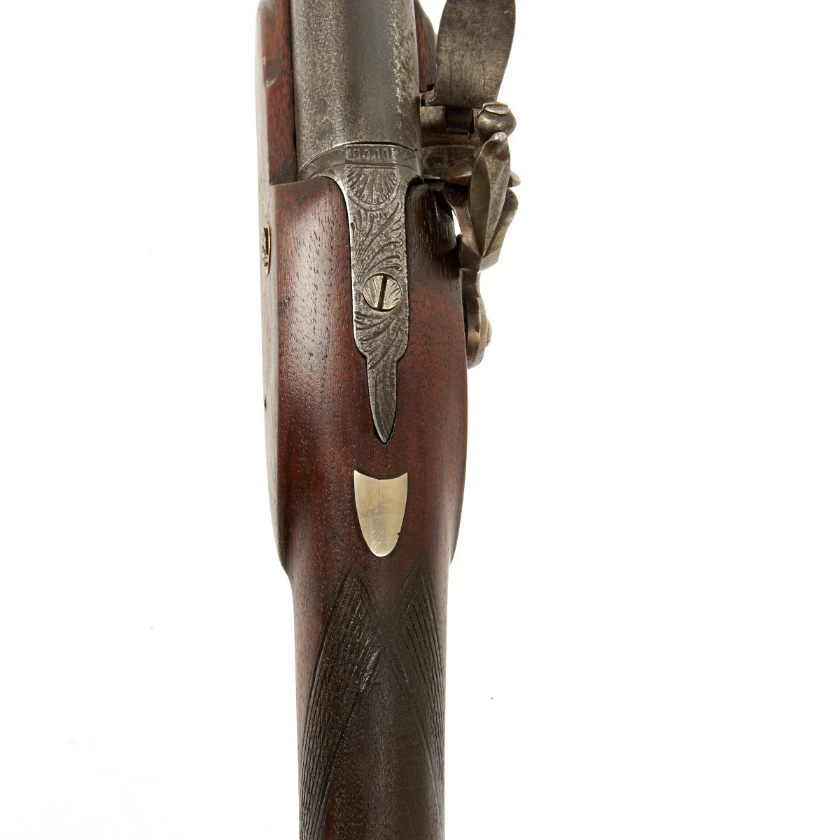 The weapon has engraved steel mounts and still retains a steel ramrod. The piece dates from