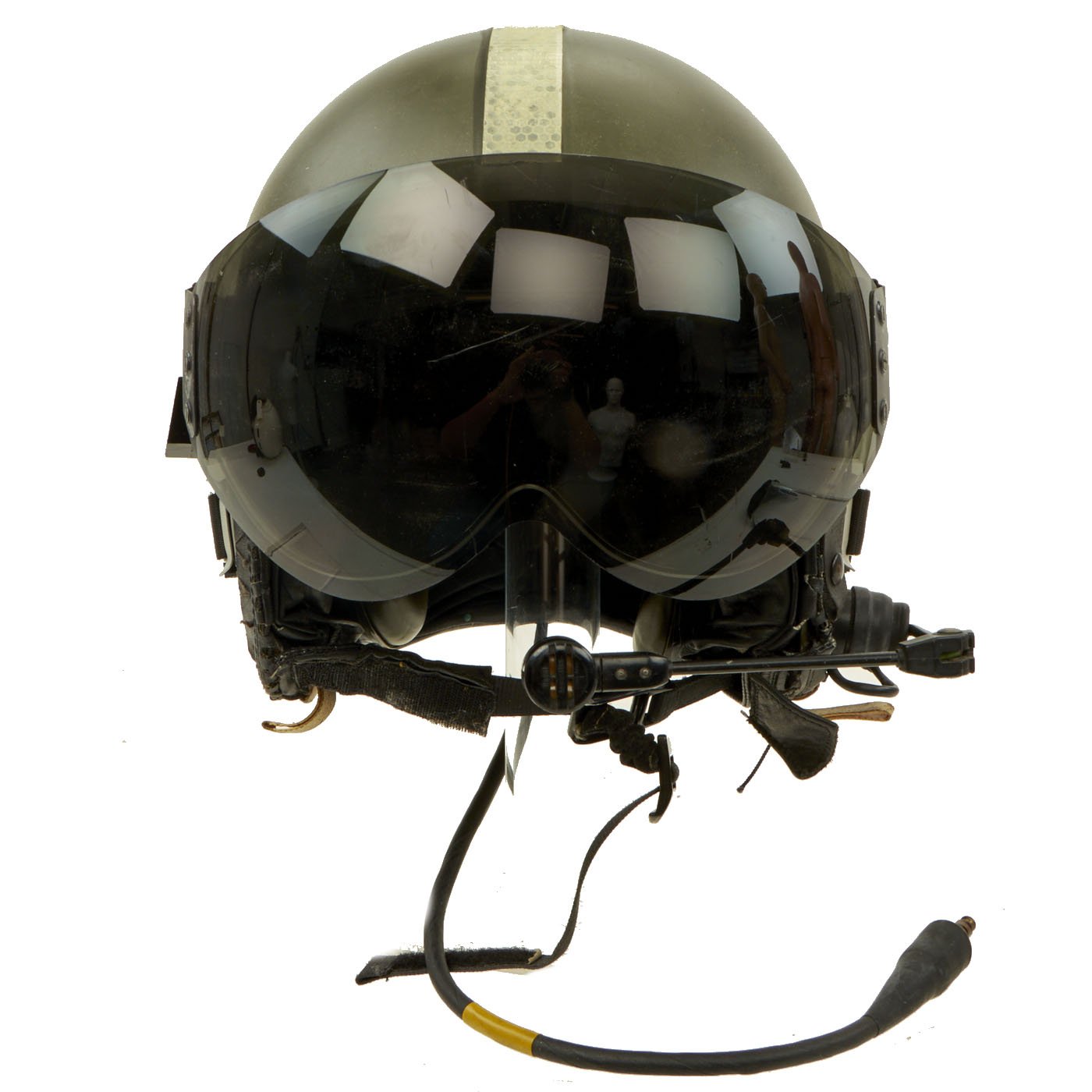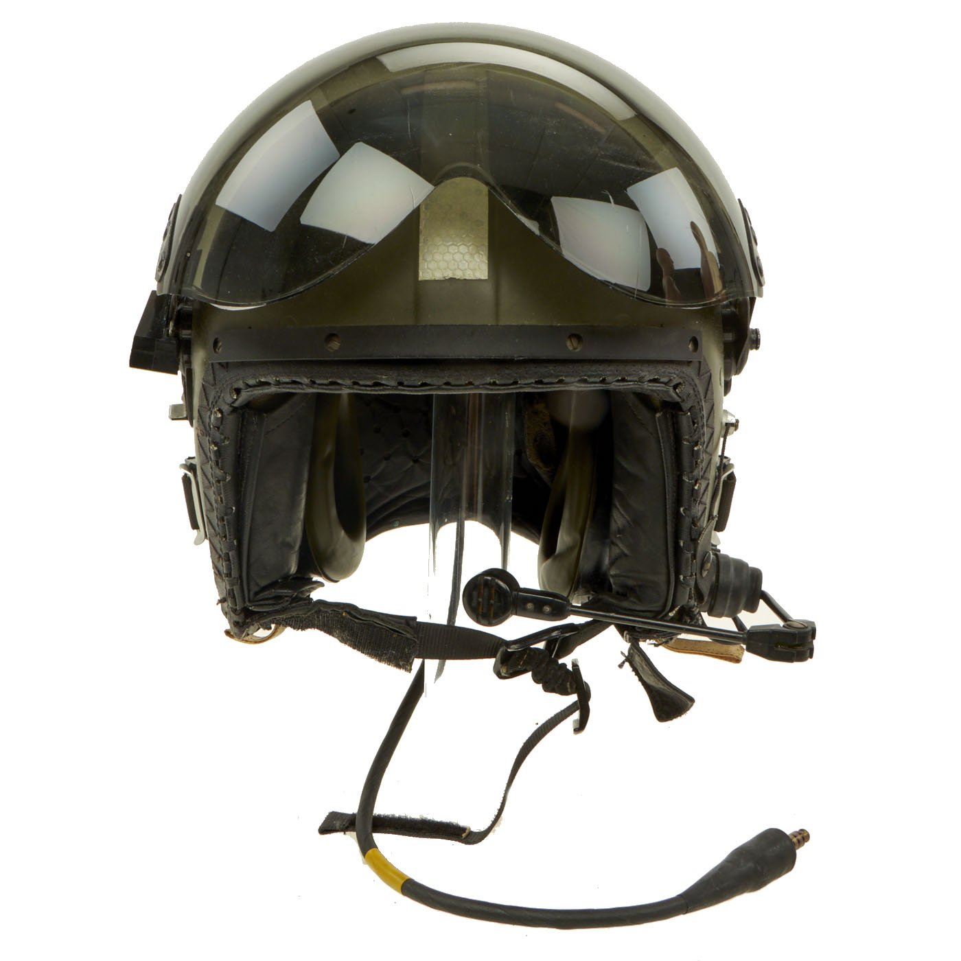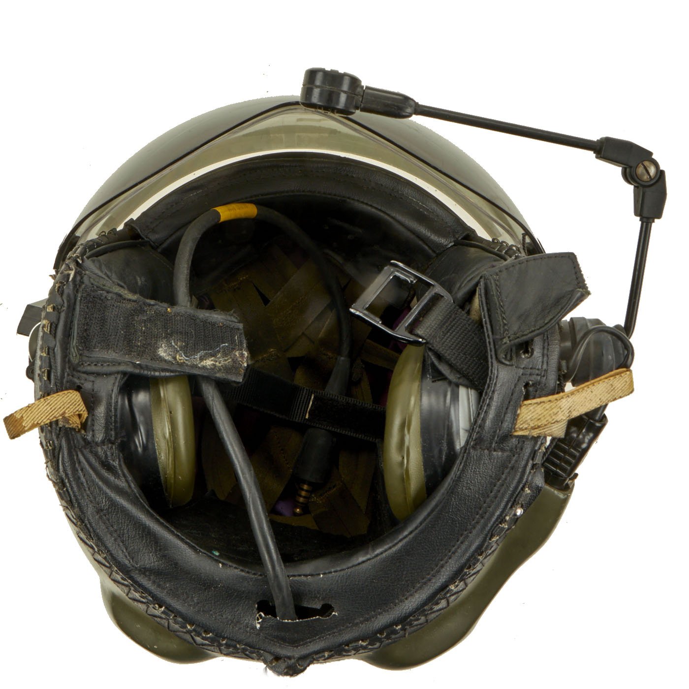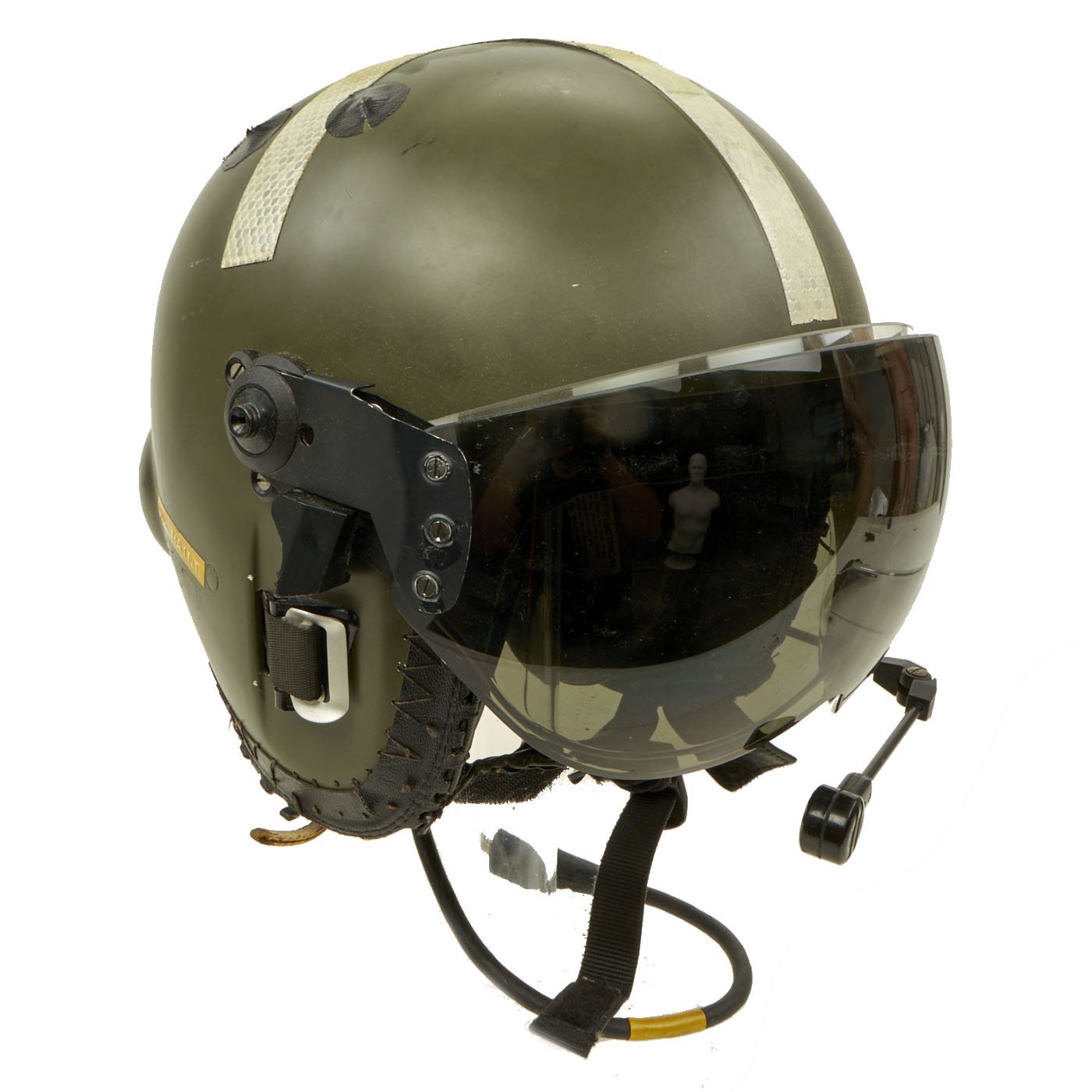 Original Item: Only One Available. The Mk.4A Flying Helmet was Royal Air Force / Royal Navy / Army Air corps issue and superseded the Mk.3C helmet in the 1980`s. The shell is made of glass fibre impregnated with polyester resin and lined with shock absorbing expanded polystyrene; the interior is fitted with a multi-point adjustable webbing harness system with adjustable independently suspended earcups. The helmet has a locking clear inner blast visor and a friction mounted outer tinted visor with a detachable cloth visor cover, avionics consist of twin 300Ω speakers giving an impedance of 150Ω (@ 1kHz) terminating with a 18" downlead and single pin NATO jackplug, mounting blocks allow the fitting of hooks for the P or Q type oxygen mask. The Mk.4A has locating holes allowing the fitting of RAF or similar Boom Mikes. The manufacturer is probably Helmet Integrated Systems Ltd.