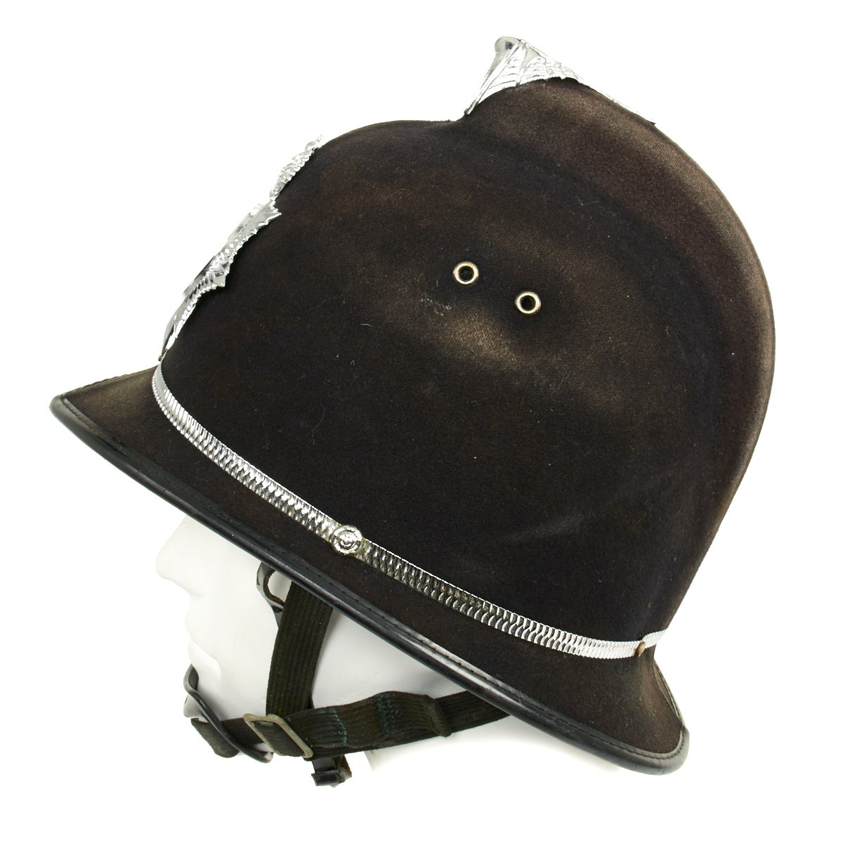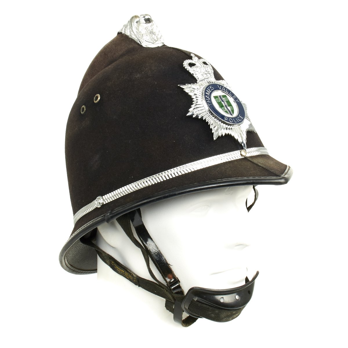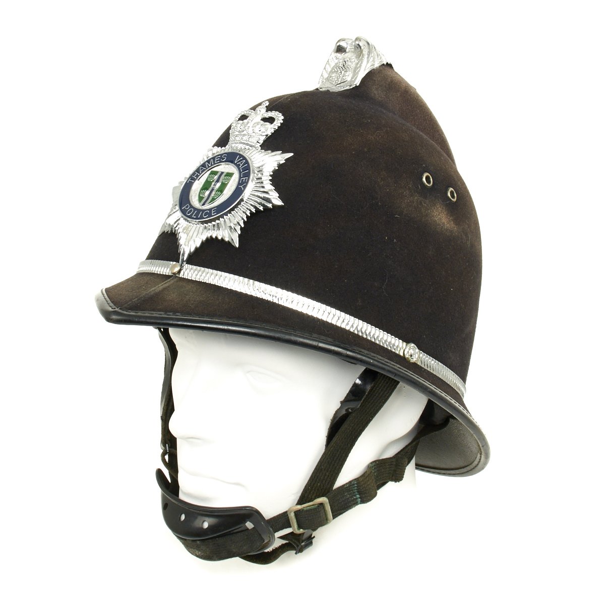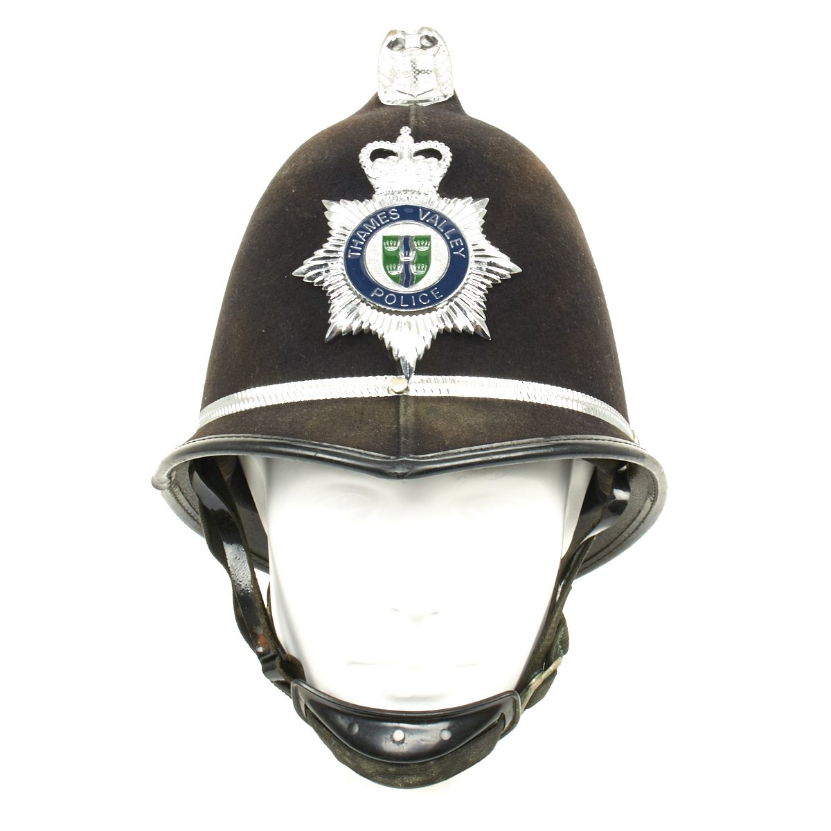 For those who follow the young Inspector Morse T.V. Series called ENDEAVOUR, which takes place in the 1960's in Oxford, England, this is the Constabulary that became known as the THAMES VALLEY POLICE. This unusual helmet has a Comb Top and an Enameled Helmet plate displaying the region's Coat of Arms.