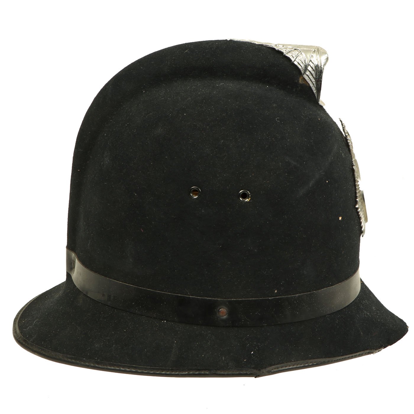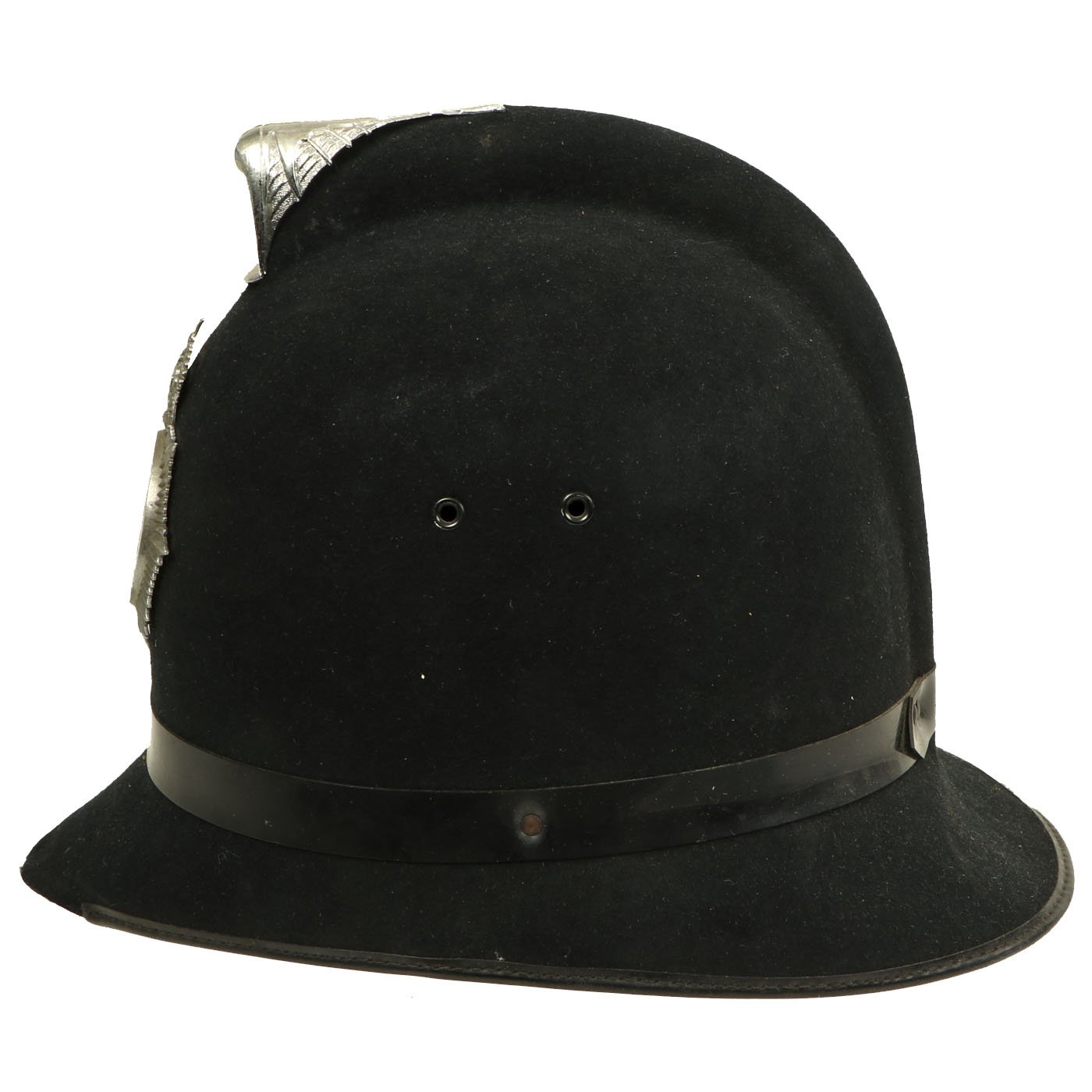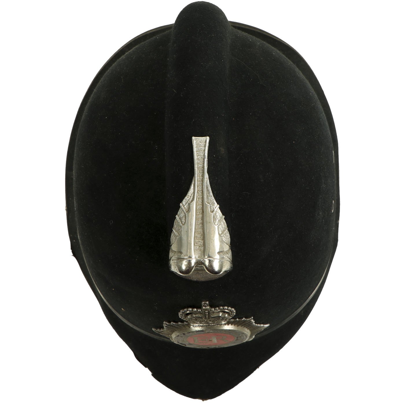 Original Item: Only One Available. The Traditional Bobby helmet was named after the creator of the British Police Force, SIR ROBERT PEEL, who became Prime Minister under Queen Victoria. This version, known as a "Comb Top", replaced the earlier "ball top" and "rose top" helmets used in many areas. The pattern features a pronounced ridge on the top of the helmet, which is capped off by a silvered fitting some simple designs.