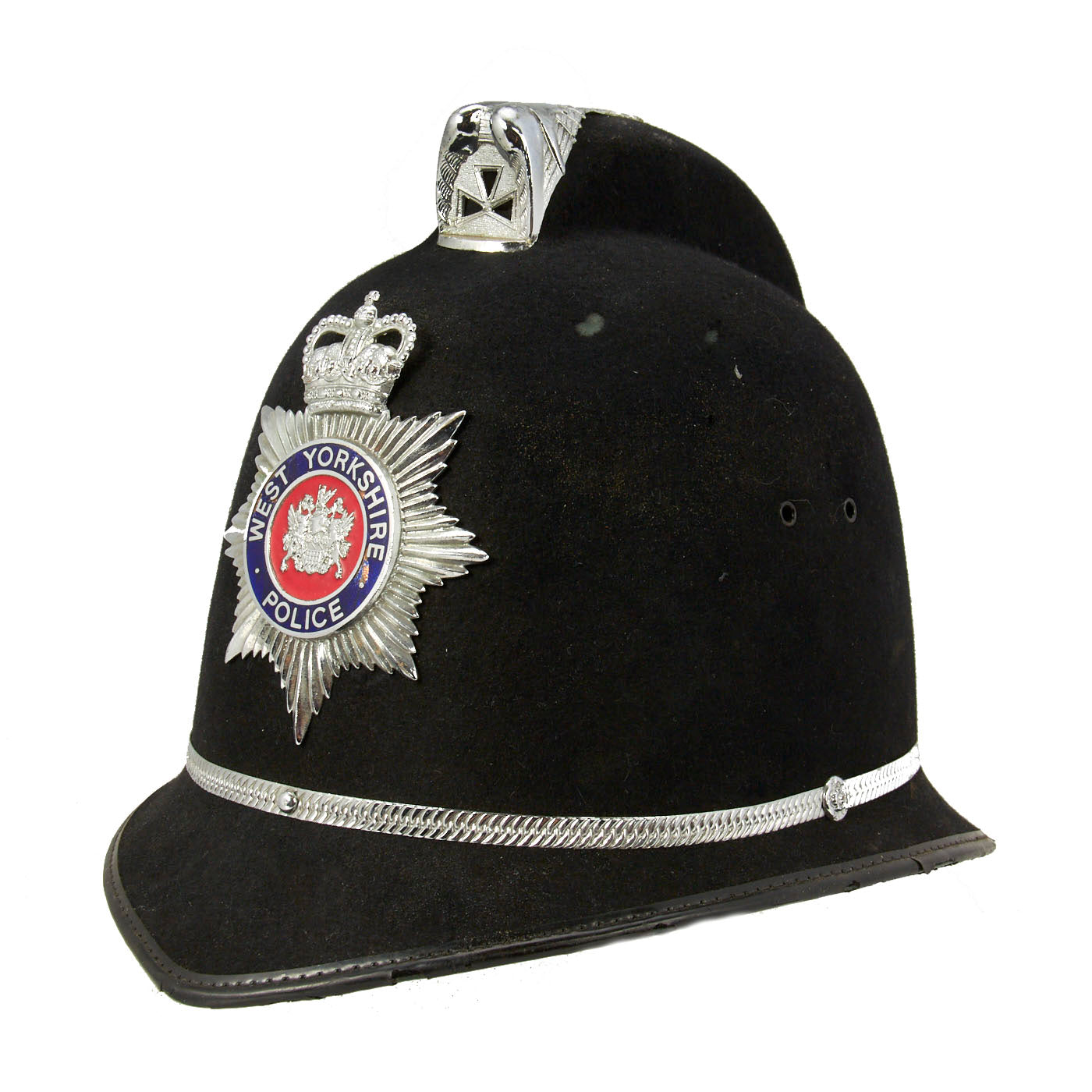The Traditional Bobby helmet was named after the creator of the British Police Force, SIR ROBERT PEEL, who became Prime Minister under Queen Victoria. This version, known as a "Comb Top", replaced the earlier "ball top" and "rose top" helmets used in many areas. The pattern features a pronounced ridge on the top of the helmet, which is capped off by a silvered fitting of some simple designs.