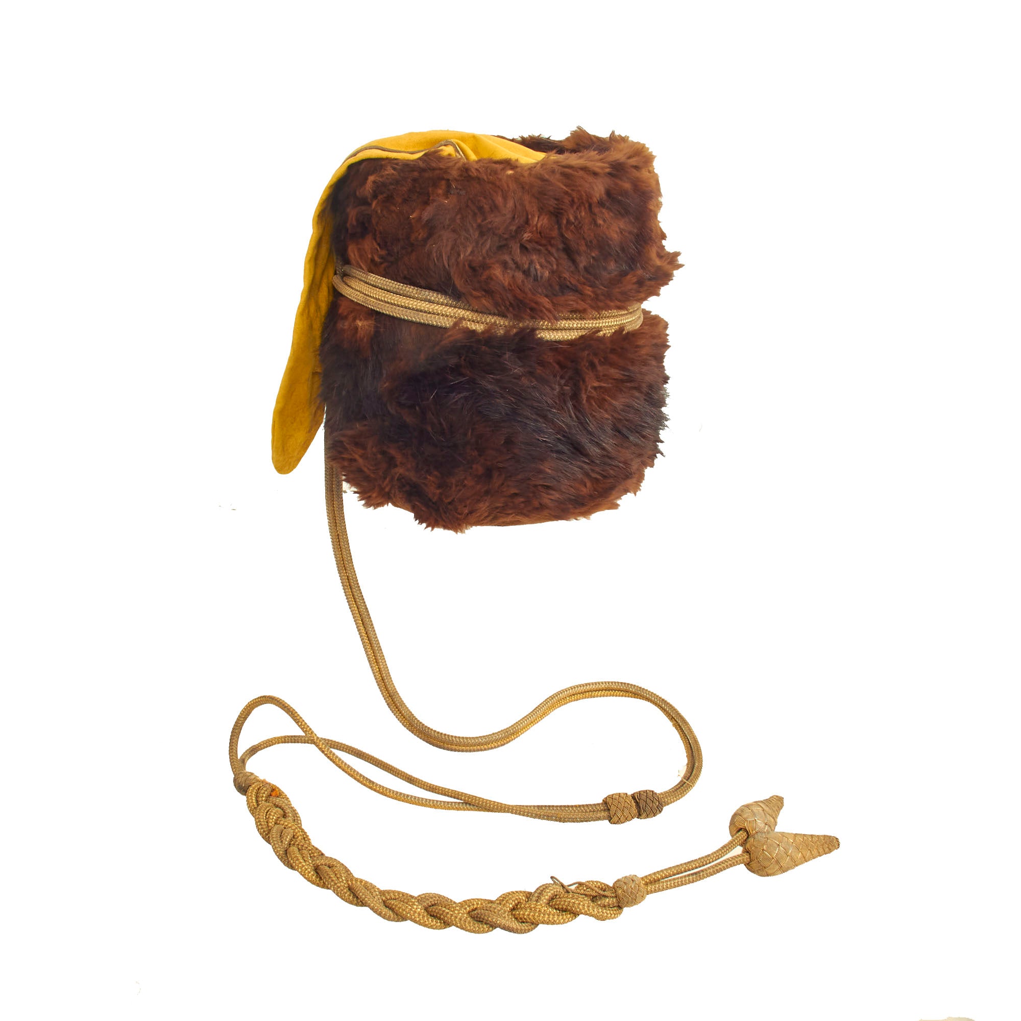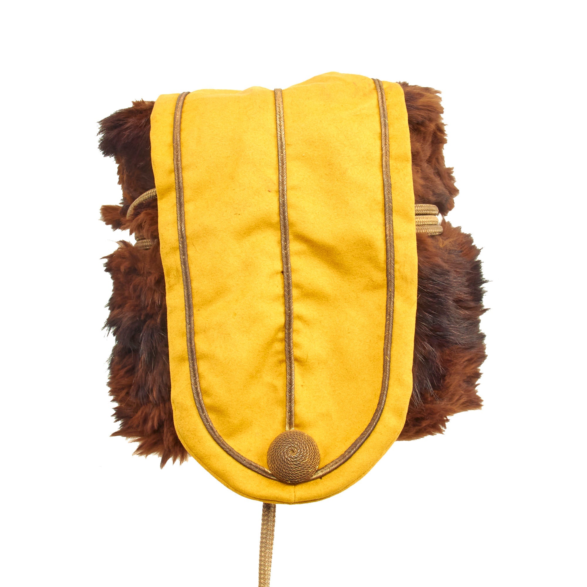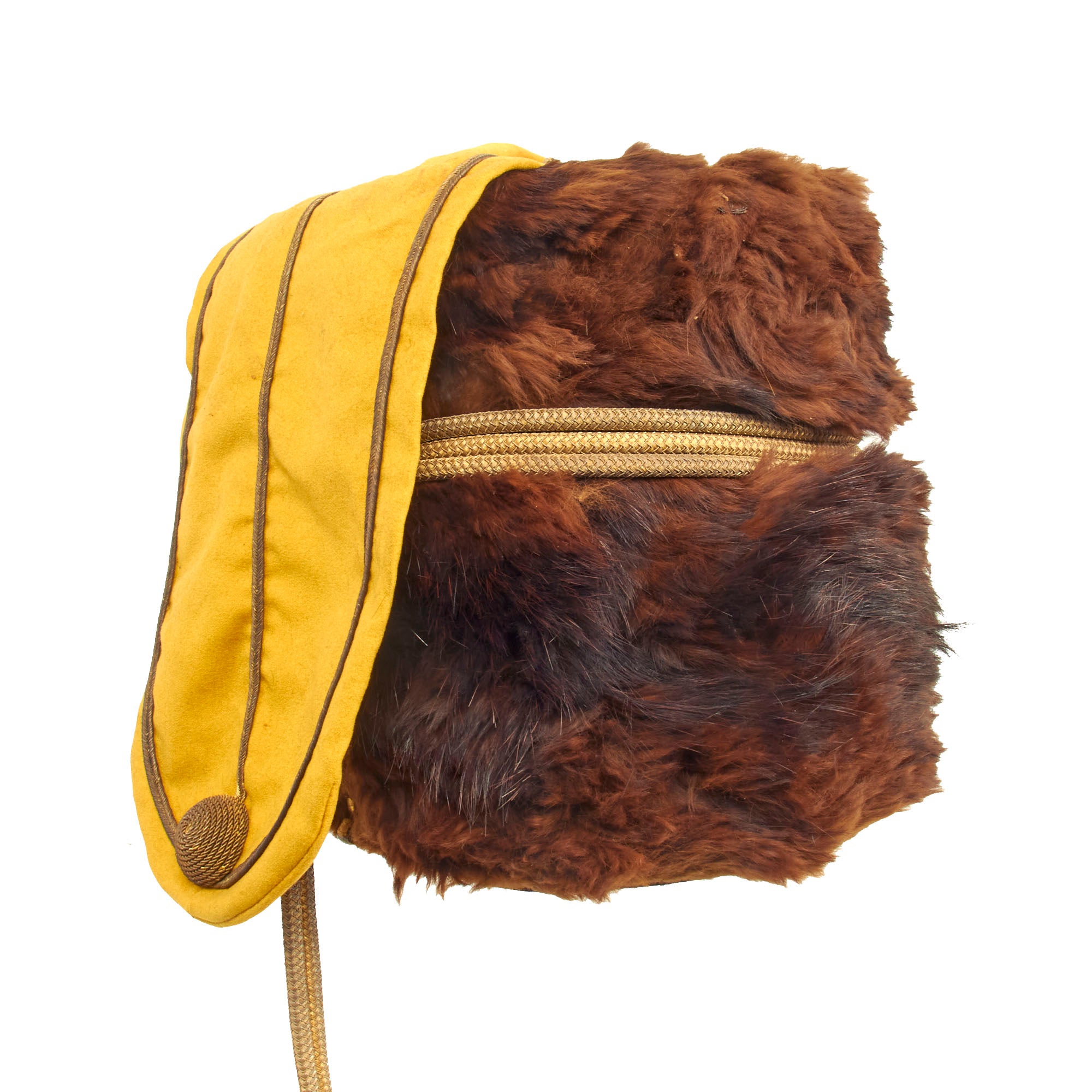 There were some variations in the materials of which cavalry busbies were made. Thus Russian Cossacks of the Imperial Guard used black sheepskin, Guard Hussars dark brown long-haired fur, and line Hussars black lambswool. All but one of the twenty Prussian Hussar regiments wore sealskin busbies dyed in black, while their officers favored dark brown otter-skin. The Brunswick Hussar Regiment No. 17 had the distinction of being issued busbies made of bearskin.