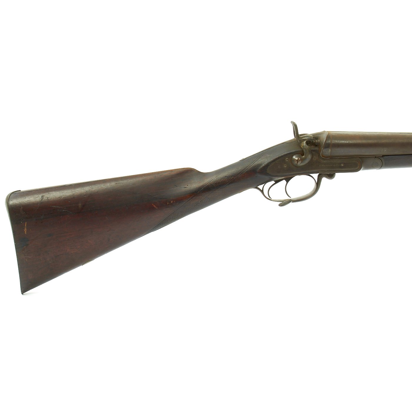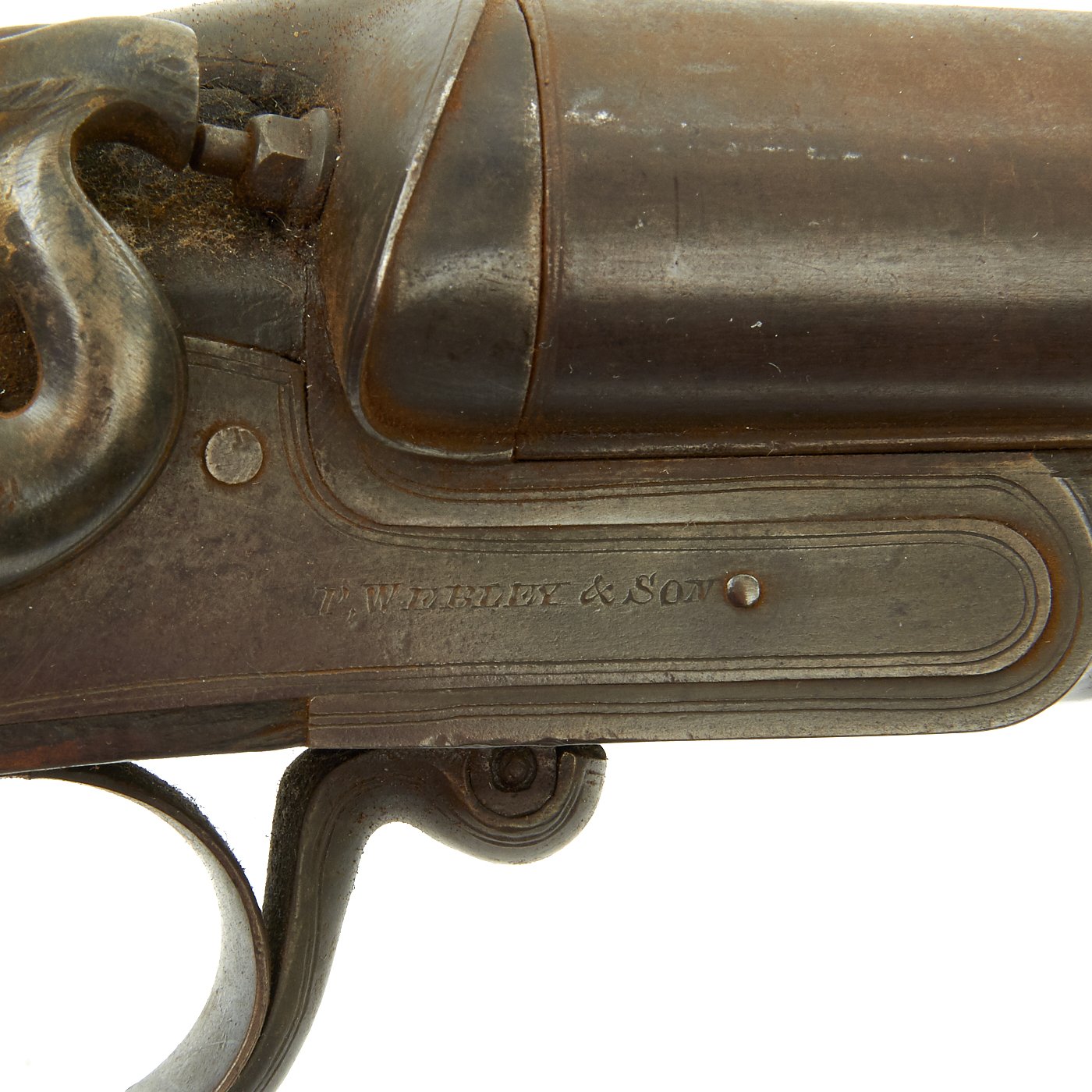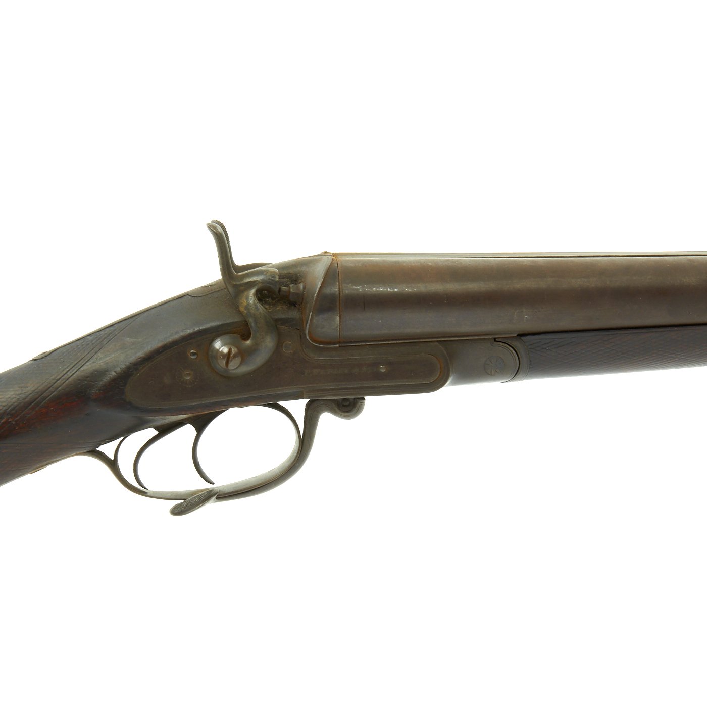 Original Item: Only One Available. Straight out of old barn storage! This fine double barreled shot gun was made in Birmingham, England and signed on the locks by P. WEBLEY & SON, a Company started by PHILIP WEBLEY in 1853 with a Patent for a percussion revolver. In 1866 the Company became known as PHILIP WEBLEY & SON and continued ass such until it merged with W.C. SCOTT & SON becoming the famous WEBLEY SCOTT REVOLVER & ARMS CO. LTD in 1897.