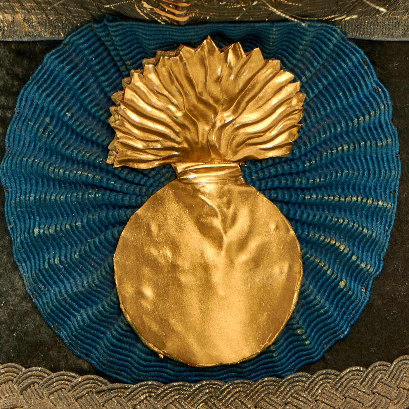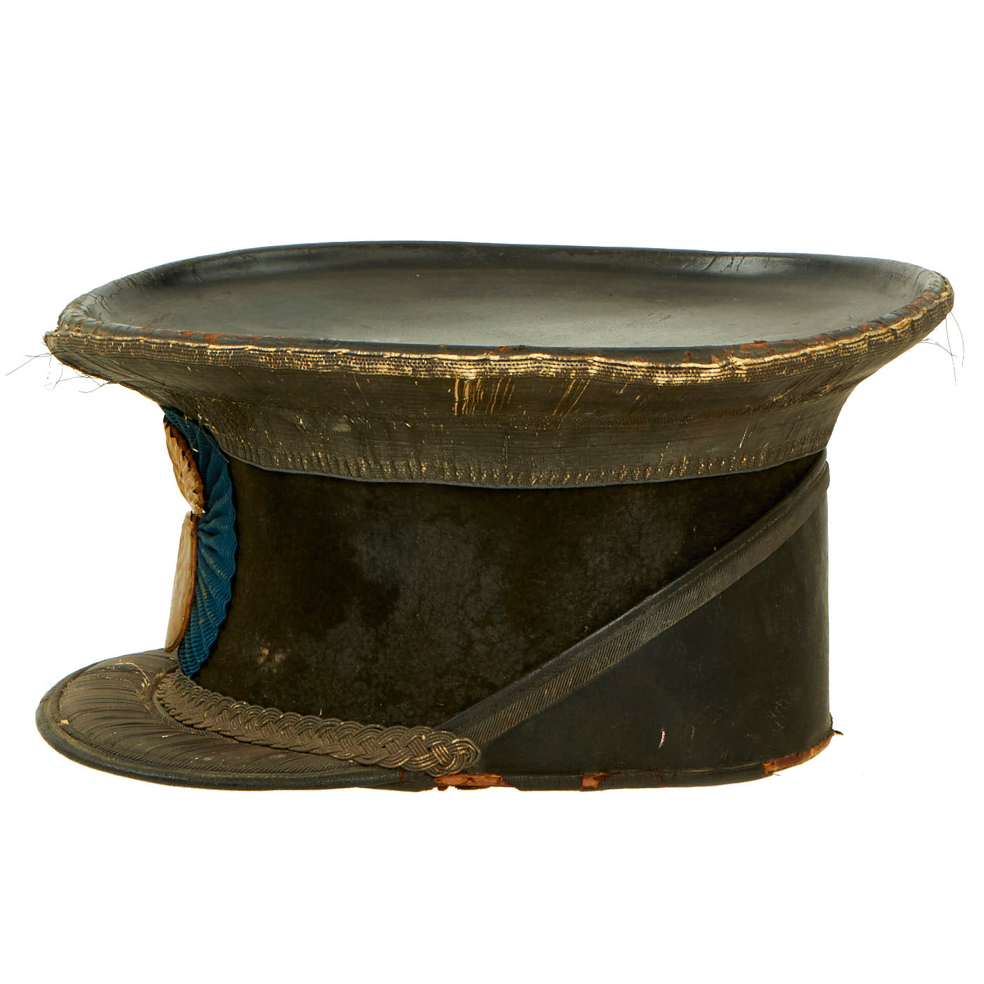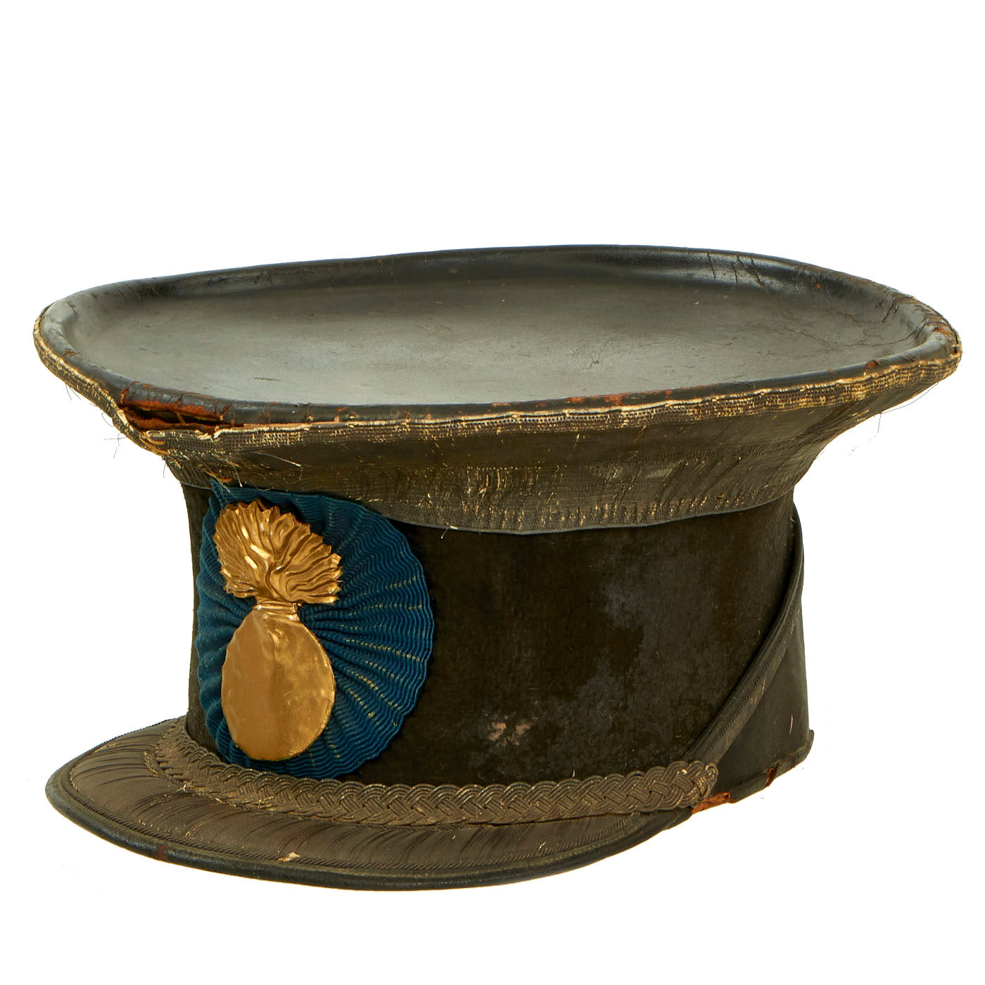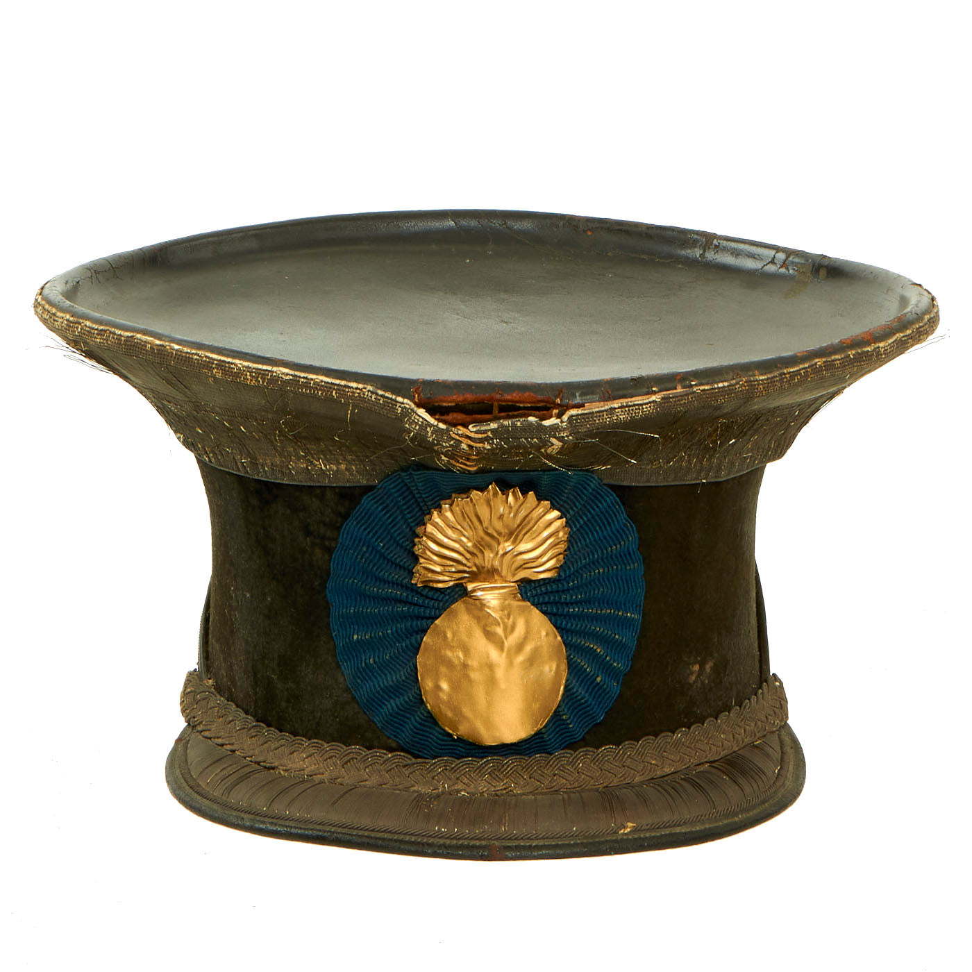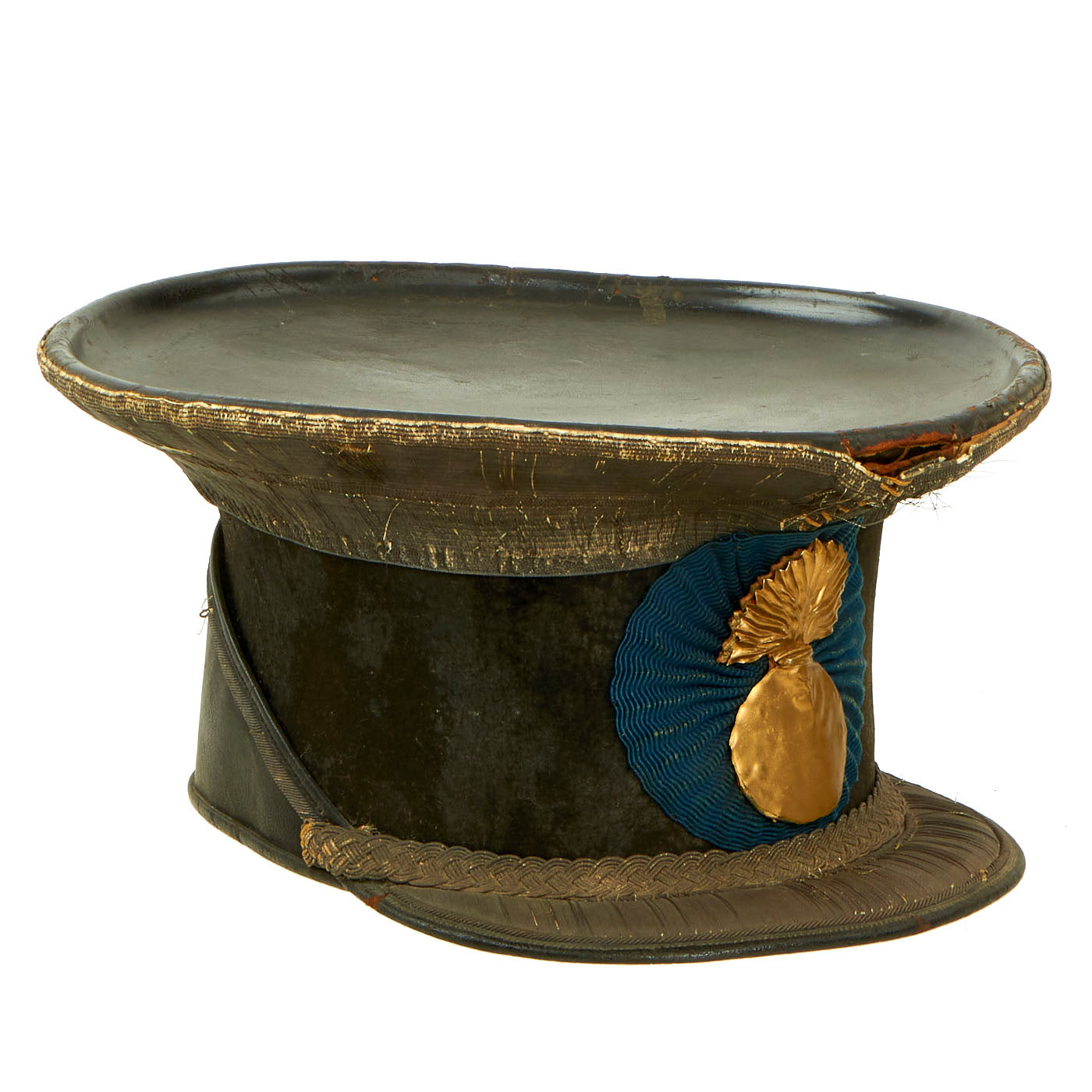 Original Item: Only One Available. A shako is a tall, cylindrical military cap, usually with a visor, and sometimes tapered at the top. It is usually adorned with an ornamental plate or badge on the front, metallic or otherwise; and often has a feather, plume (see hackle) or pom pom attached at the top.