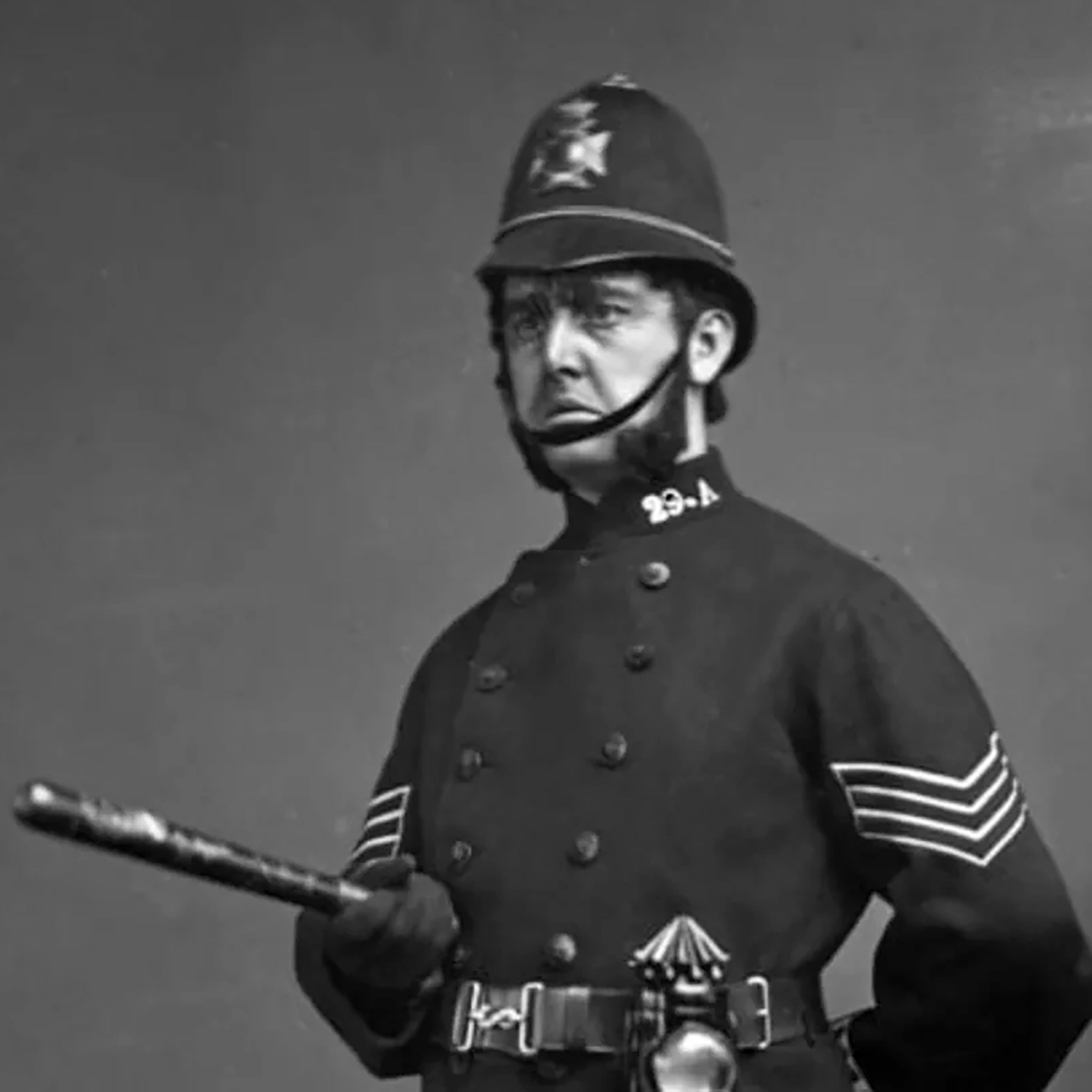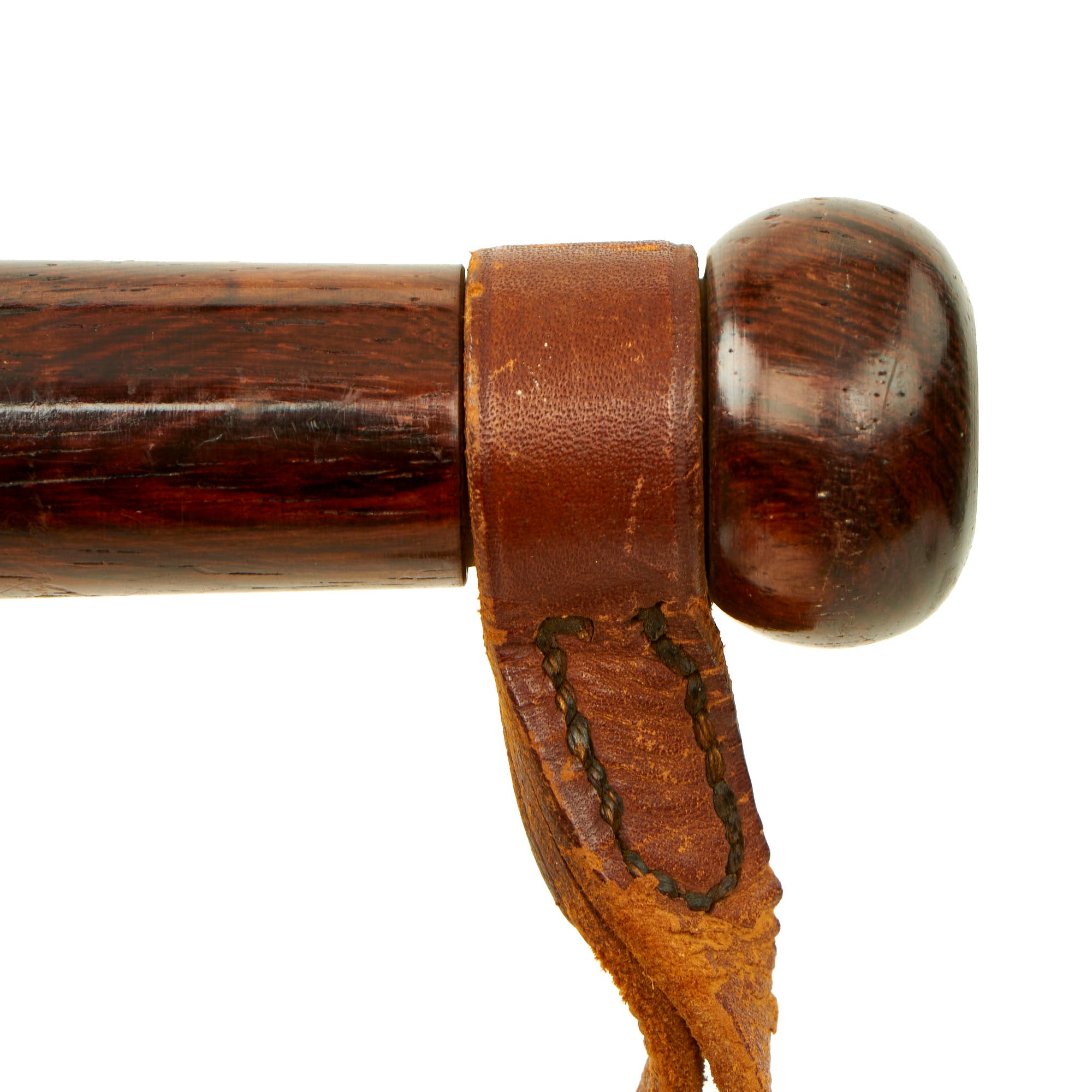 This is a fantastic example of a British Early 19th Century Police Club . Its length is approximately 13 inches and has a weight of 1 lbs. The base of the club has leather wrist strap or lanyard which is still present and is held in position with heavy stitching. As used by Police in England for over a century.