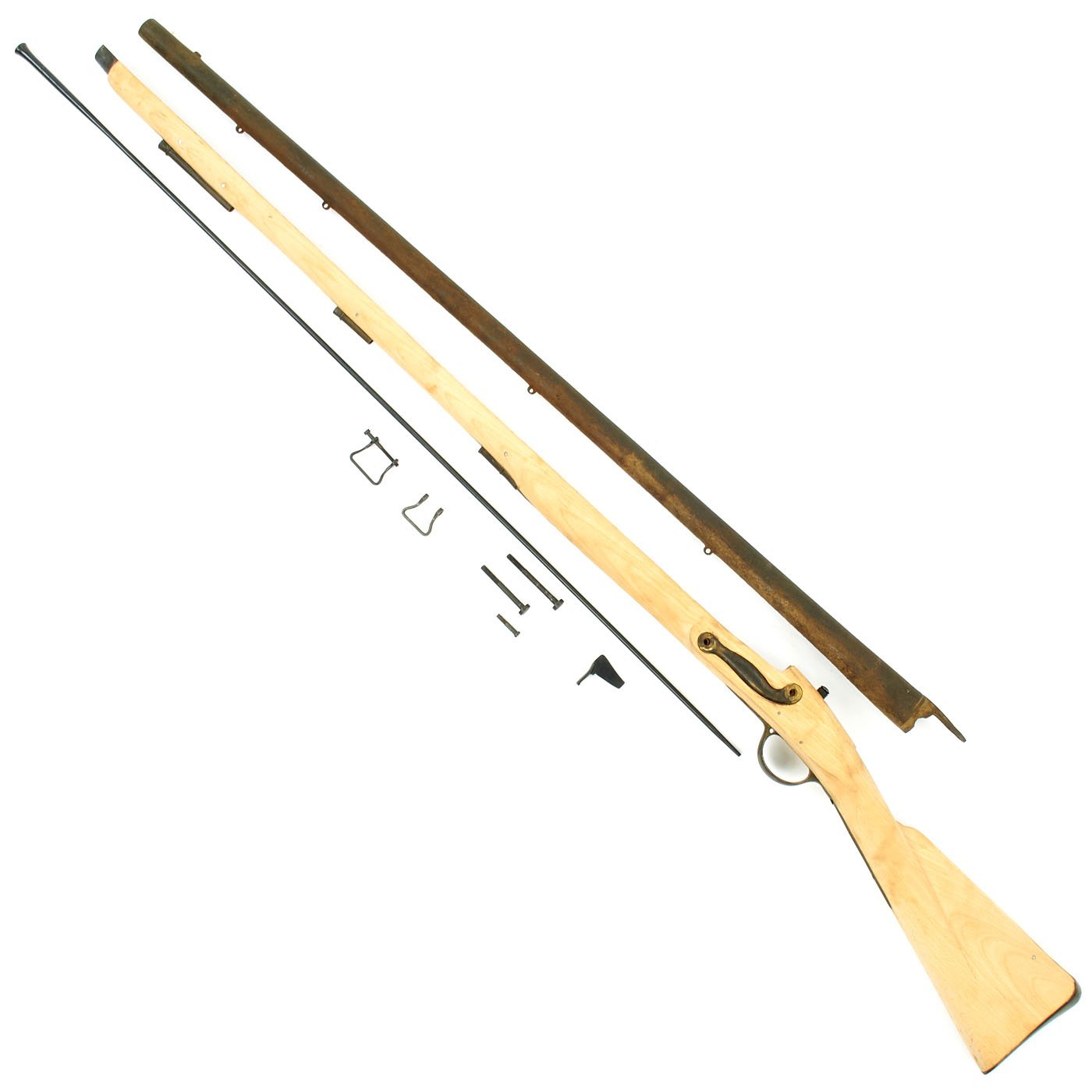 You will then need to clean and oil all the original parts, fit the barrel into the barrel slot, install the lock into the existing inletted aperture and then fit the new made screws. These screws will almost certainly need to be fitted to the lock, meaning rethreading of the lock plate may be required. The new made wood stocks are untreated so you can stain to suit your fancy. Basic skill is required to seat the barrel and lock assemblies, fit screws, and perhaps make a repair, so bear in mind fitting, cleaning, oiling of metal parts and minor engineering will be required. We do verify that every lock is in functional and in solid condition. So please review the photographs.
