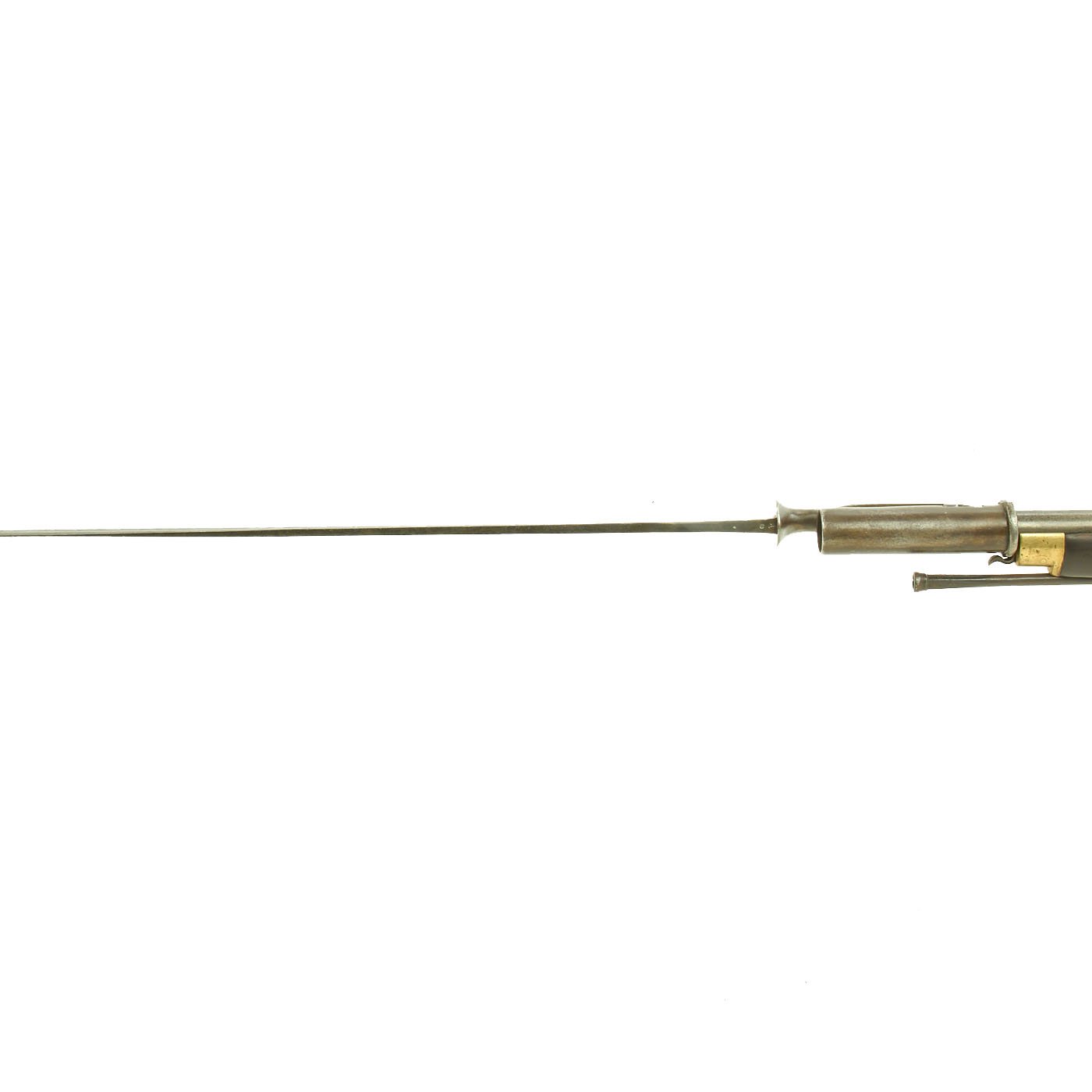 This musket comes with its original Sword Socket bayonet, with 22" sword blade, made for the "Hanovarian Pattern E" catch. There is a British proof mark on the right side of the blade, which looks to be a letter H over 4, but could also be a K or an R. The musket presents very well, and the lock functions correctly, holding at half cock and firing at full. It still retains both sling swivels and the correct cleaning rod.