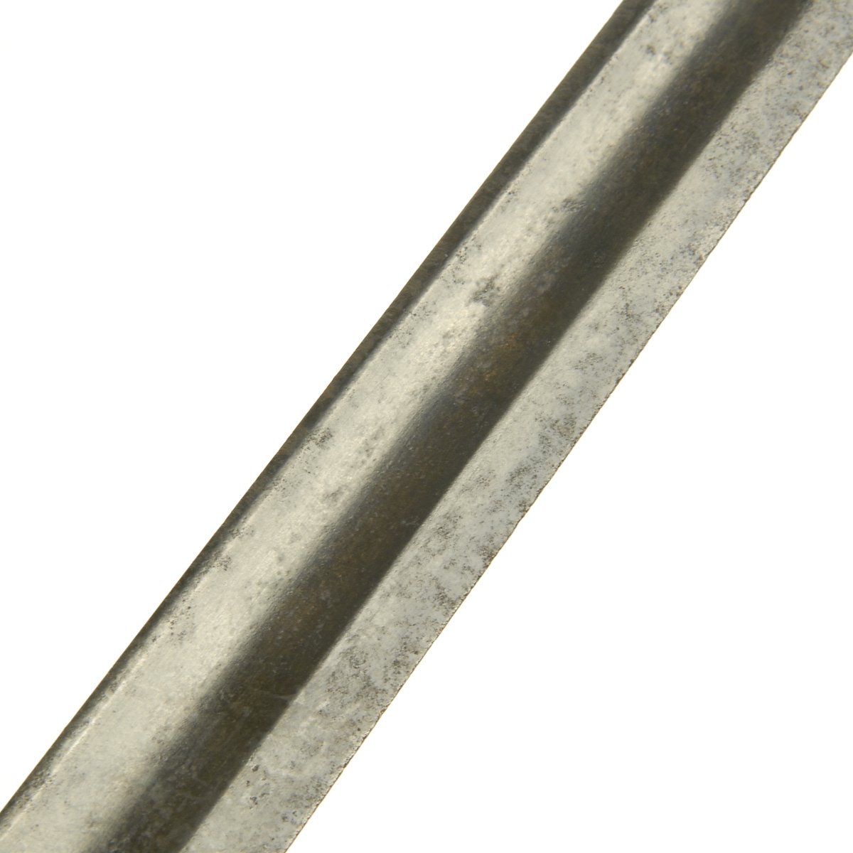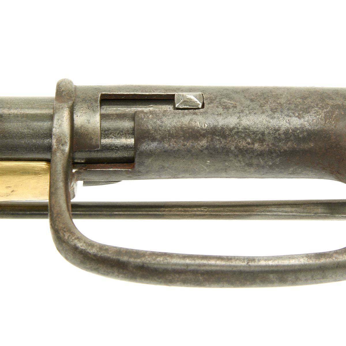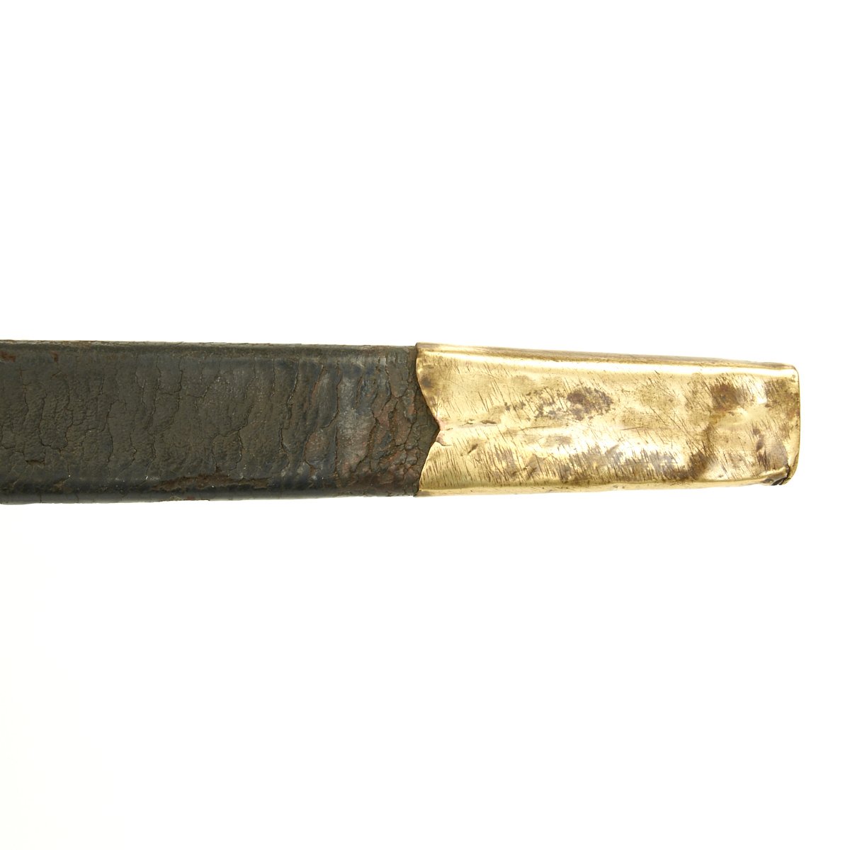 The musket is accompanied by its issue Sword Bayonet of the unique Sappers & Miners design. It is also marked DEAKIN on the back edge of the blade and comes complete with its ORIGINAL brass mounted leather scabbard, which are just about unheard of. Additionally, the blade is marked with a proof mark next to: