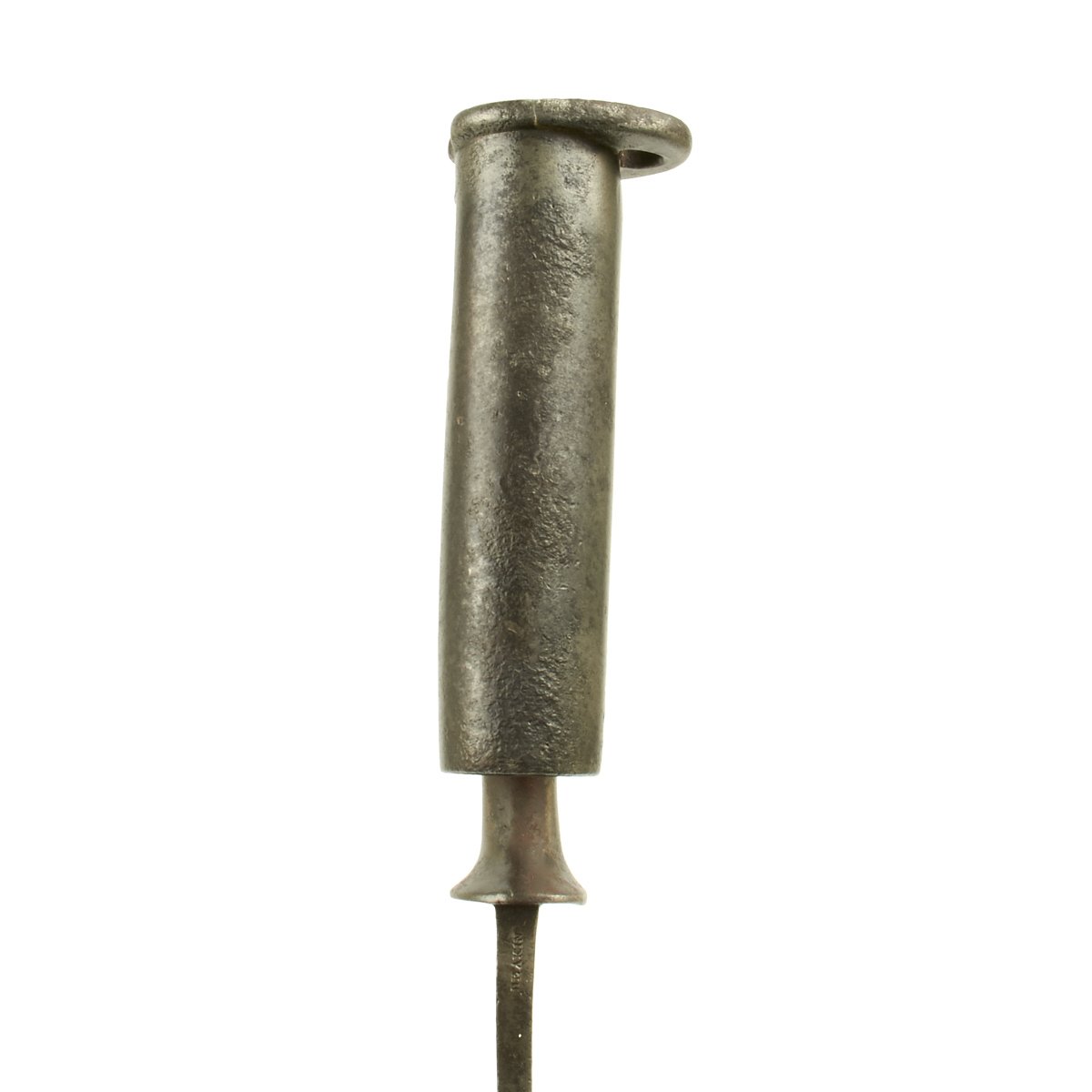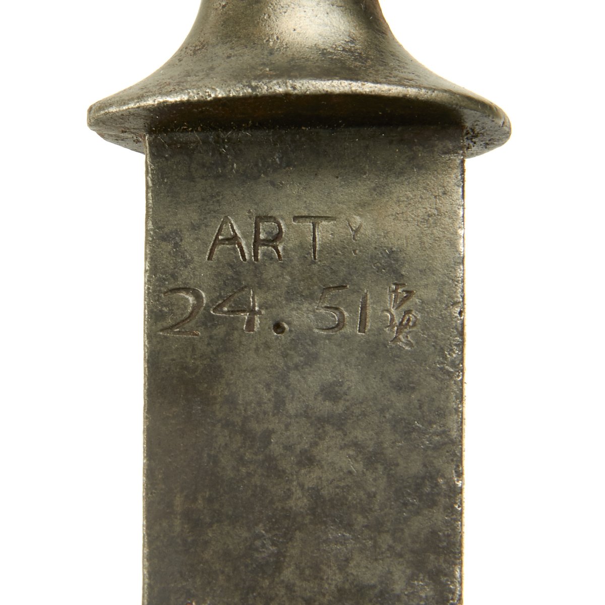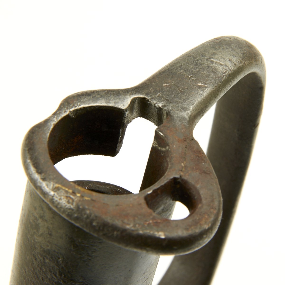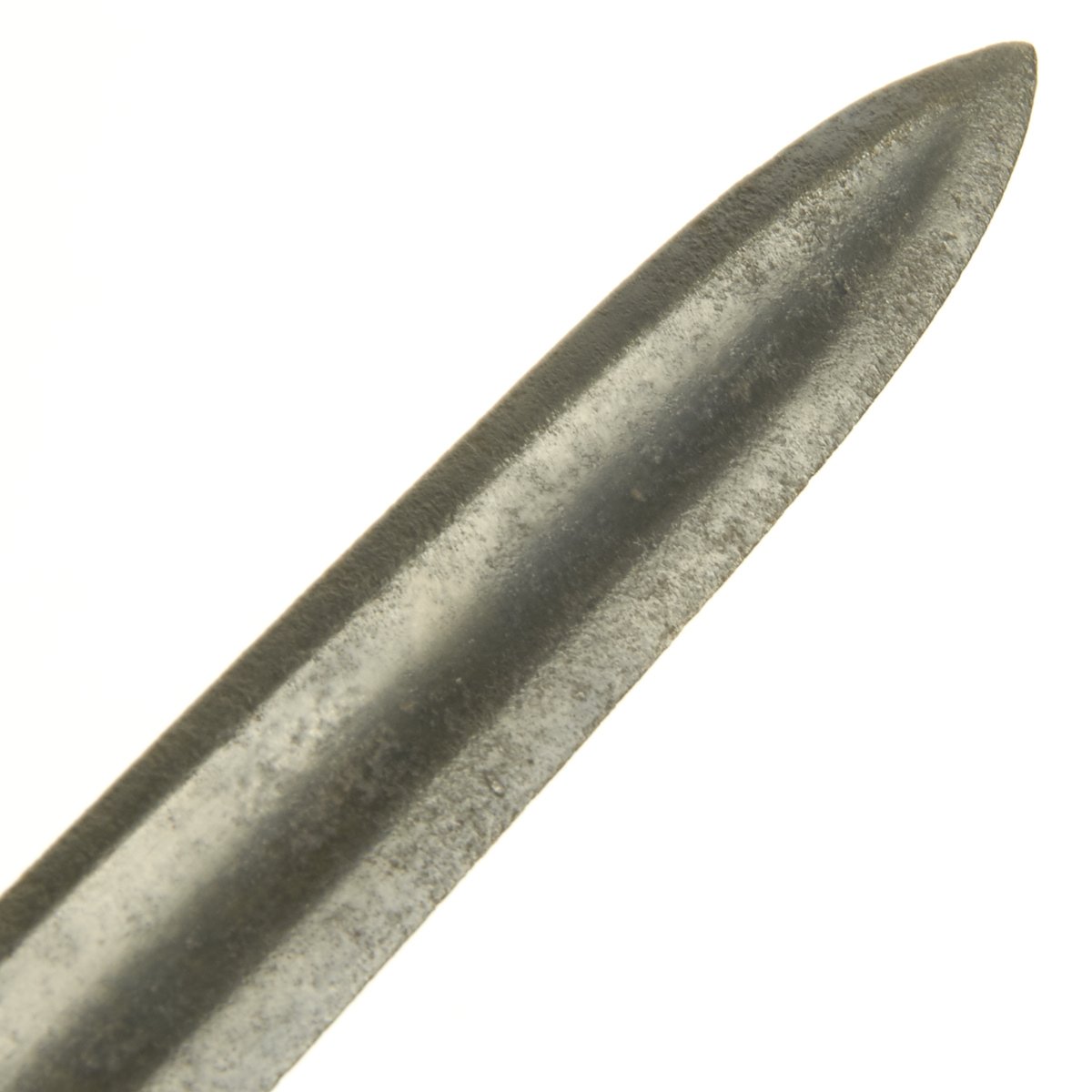 The musket is accompanied by its issue Sword Bayonet of the unique Sappers & Miners design. It is also marked DEAKIN on the back edge of the blade and comes complete with its ORIGINAL brass mounted leather scabbard, which are just about unheard of. Additionally, the blade is marked with a proof mark next to: