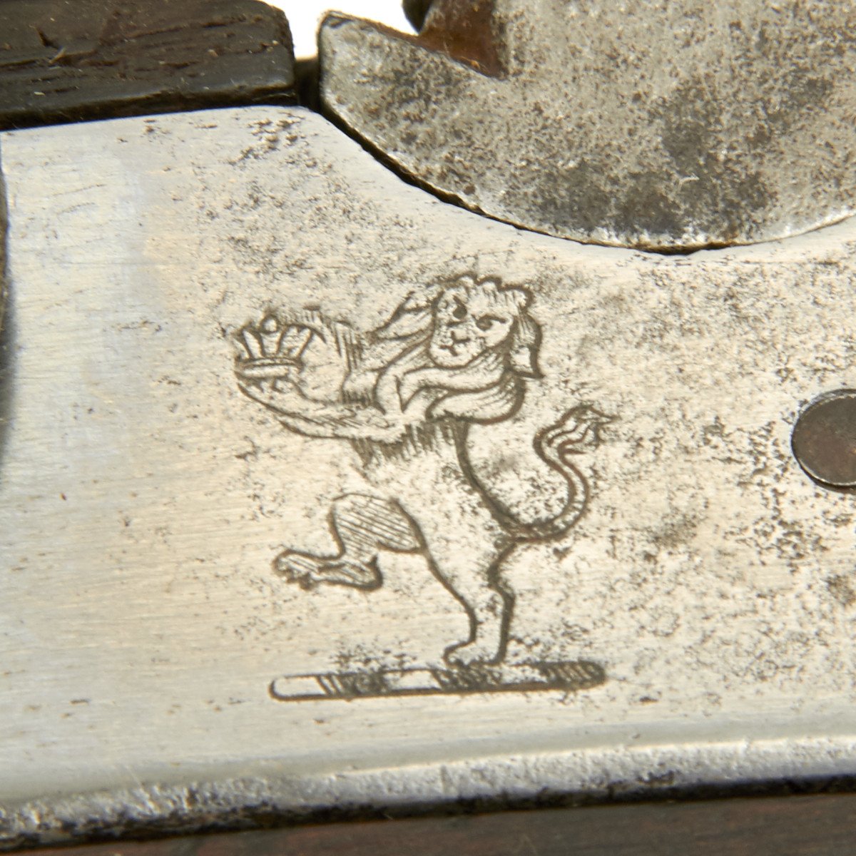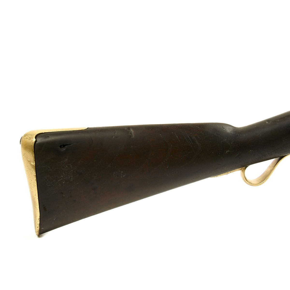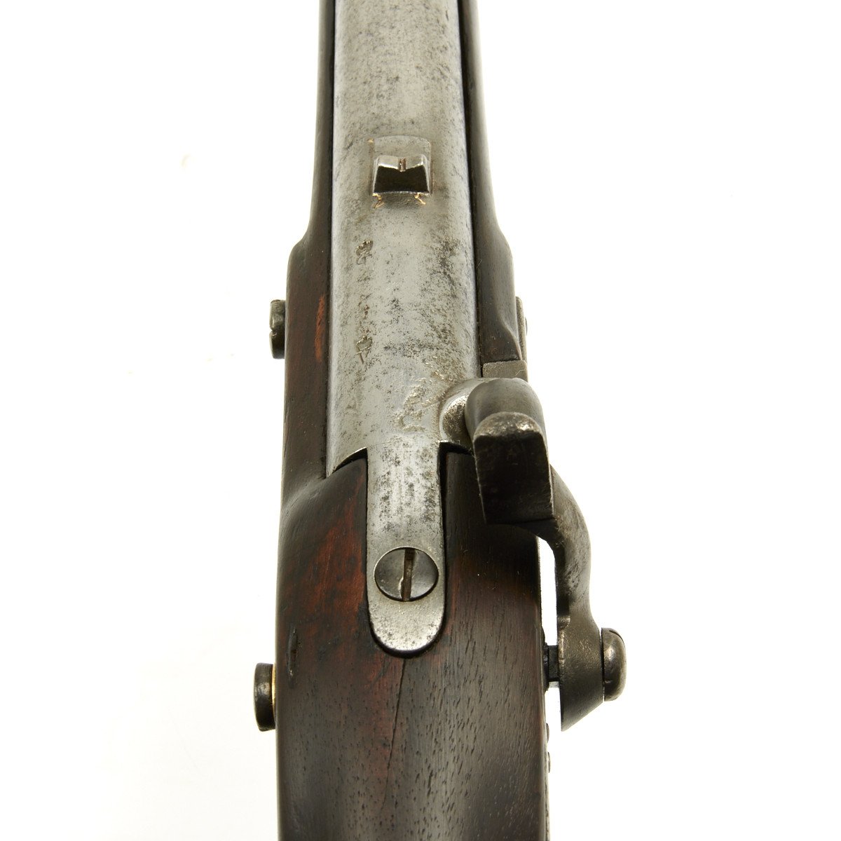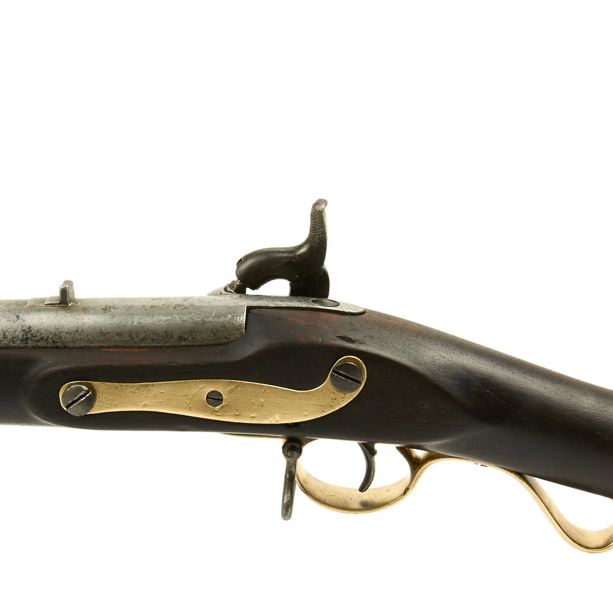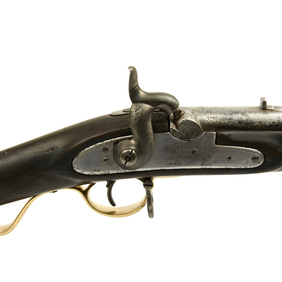 This example, offered in cleaned and complete condition, is either the first variant (Type 1 1840-41) due to its style of trigger guard, lack of a hanoverian bayonet catch, old series sidelock and other characteristics. It features a British proofed barrel and lock marked with the EIC Lion.