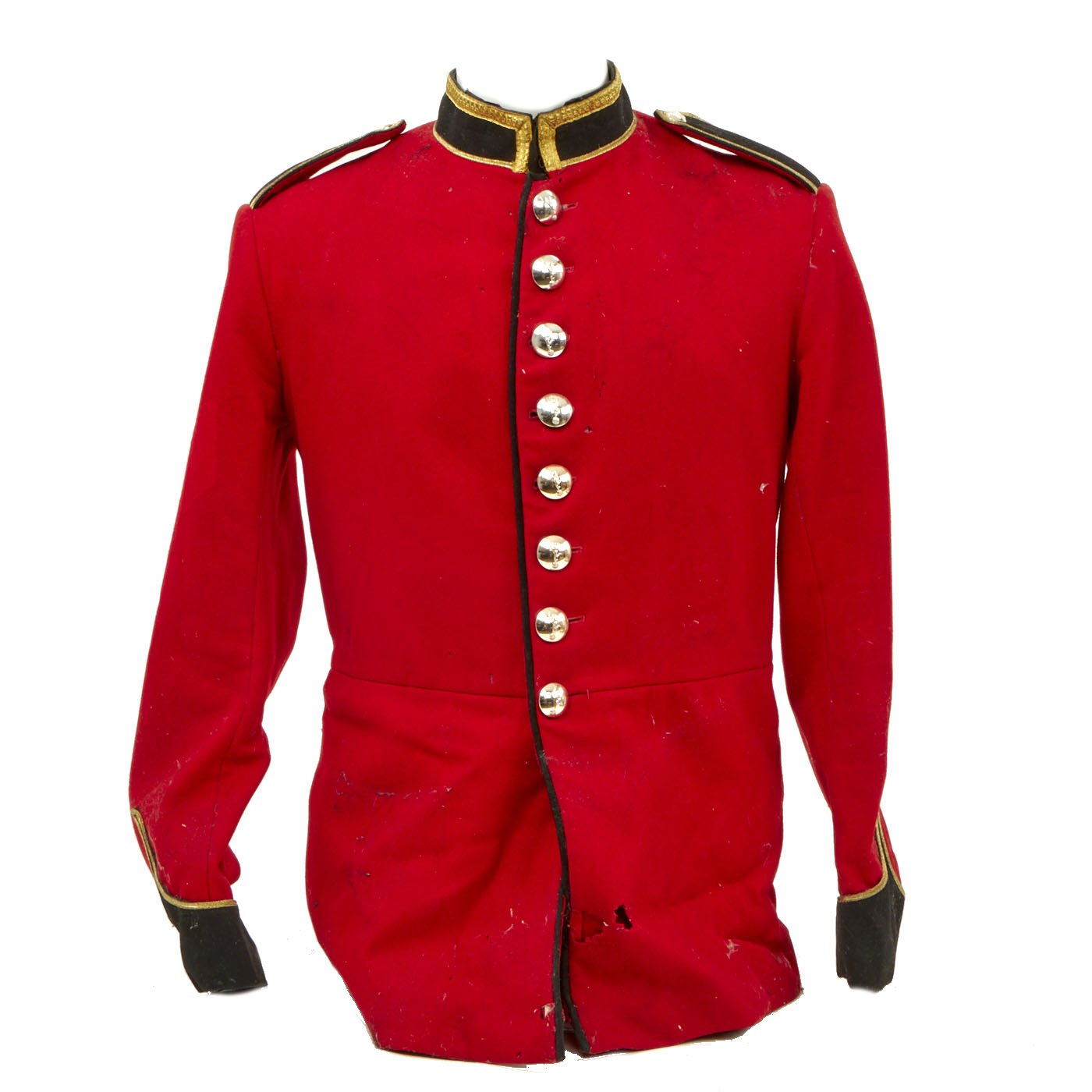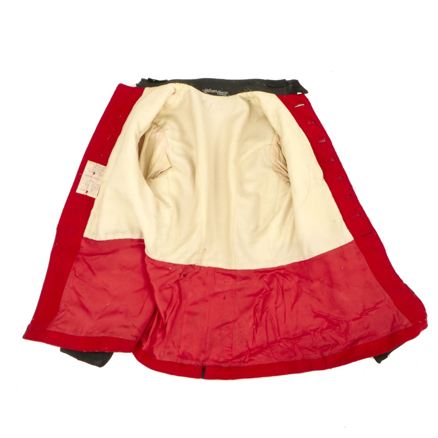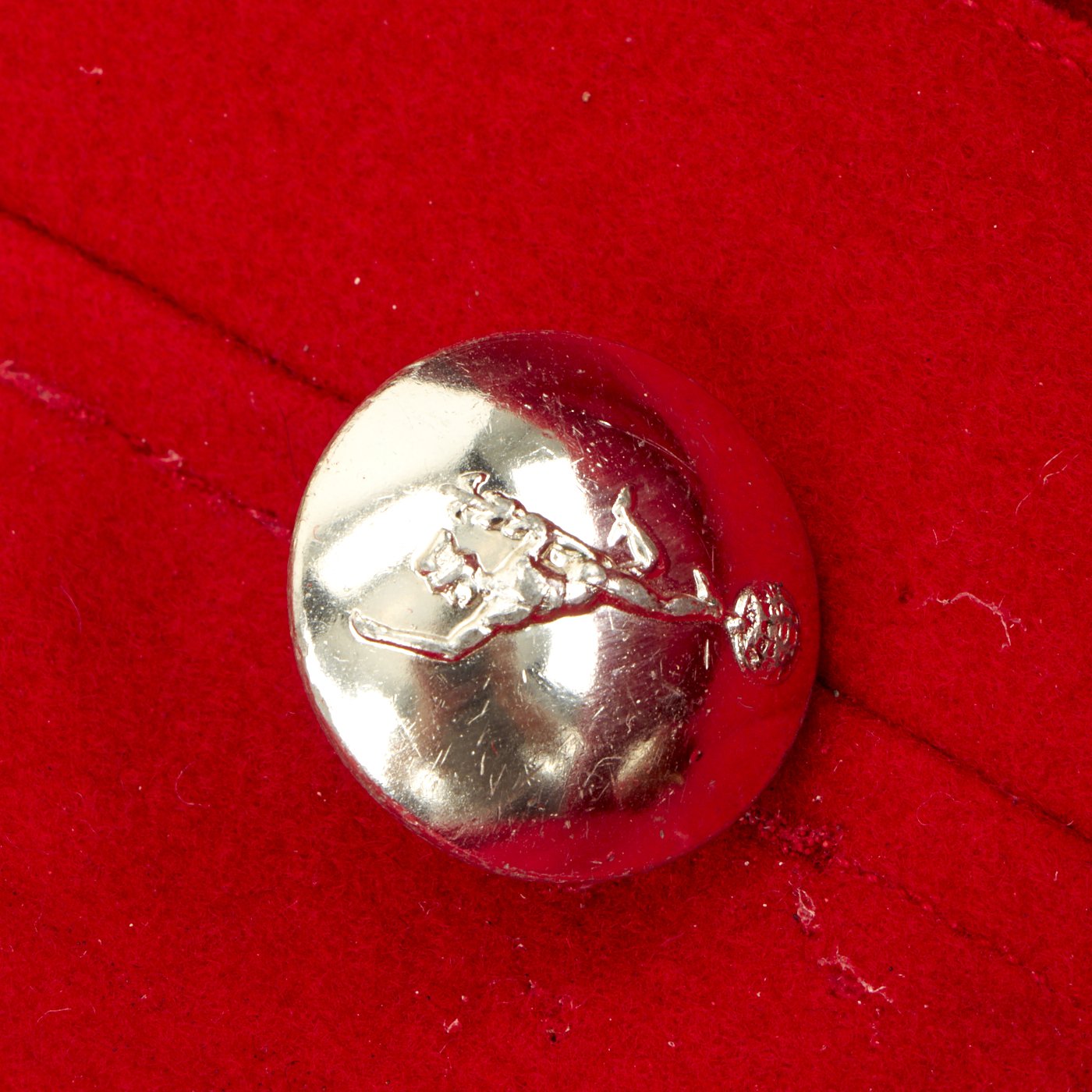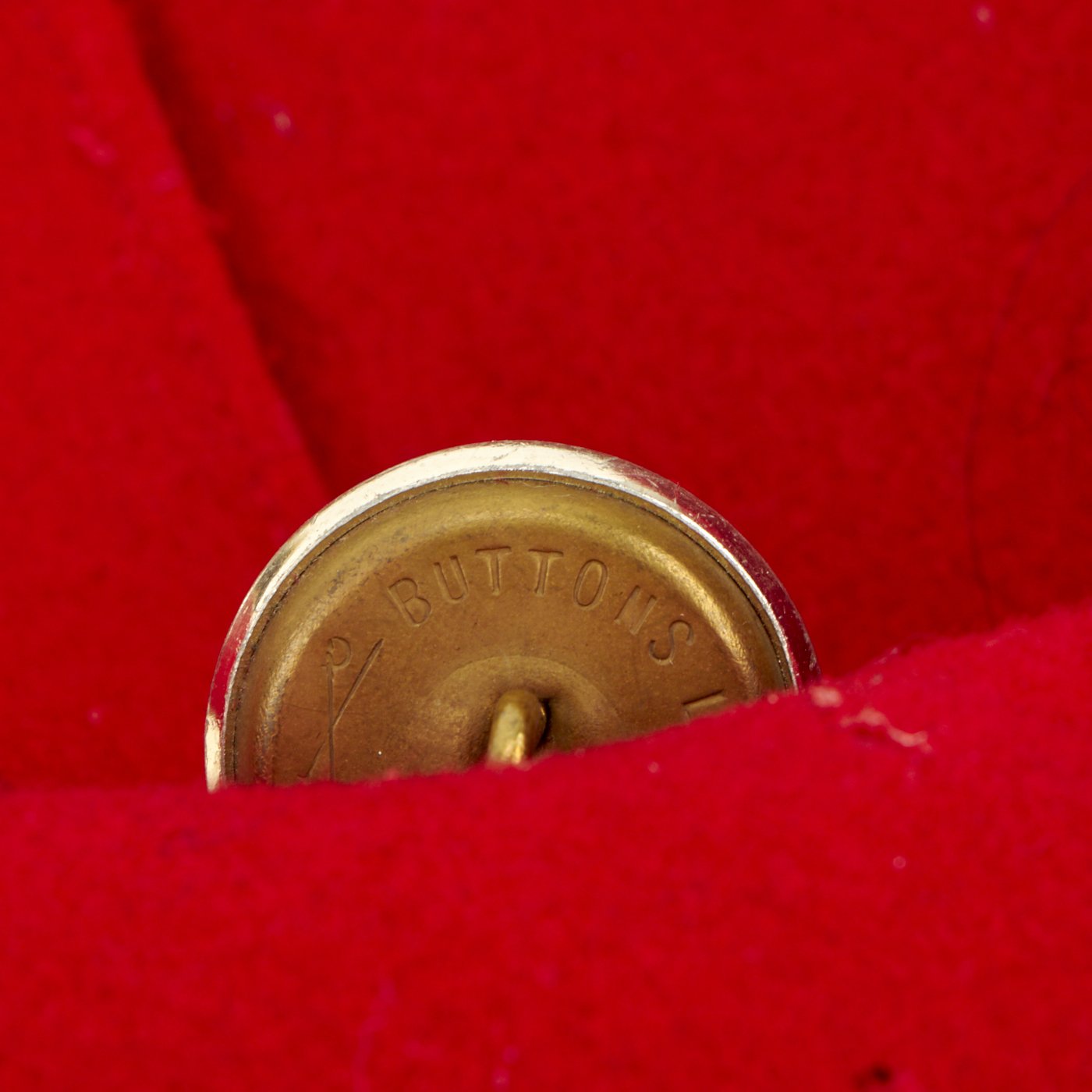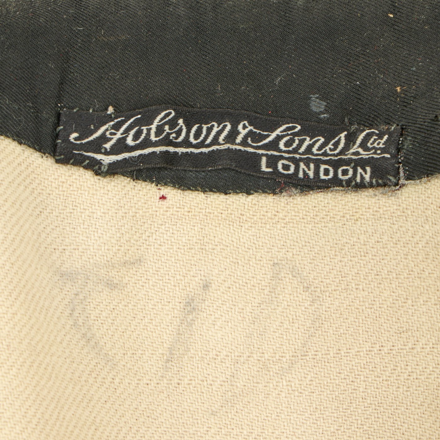 Lastly the lifeguard troopers red tunic, with blue collar and cuffs, made by Hobson & Sons Ltd of London, as indicated by the tag at the back of the neck. All matching stay bright buttons are present, together with a few scattered random moth holes to the fabric. There is gold braid around the collar and gold piping at the cuffs and around the epaulettes.