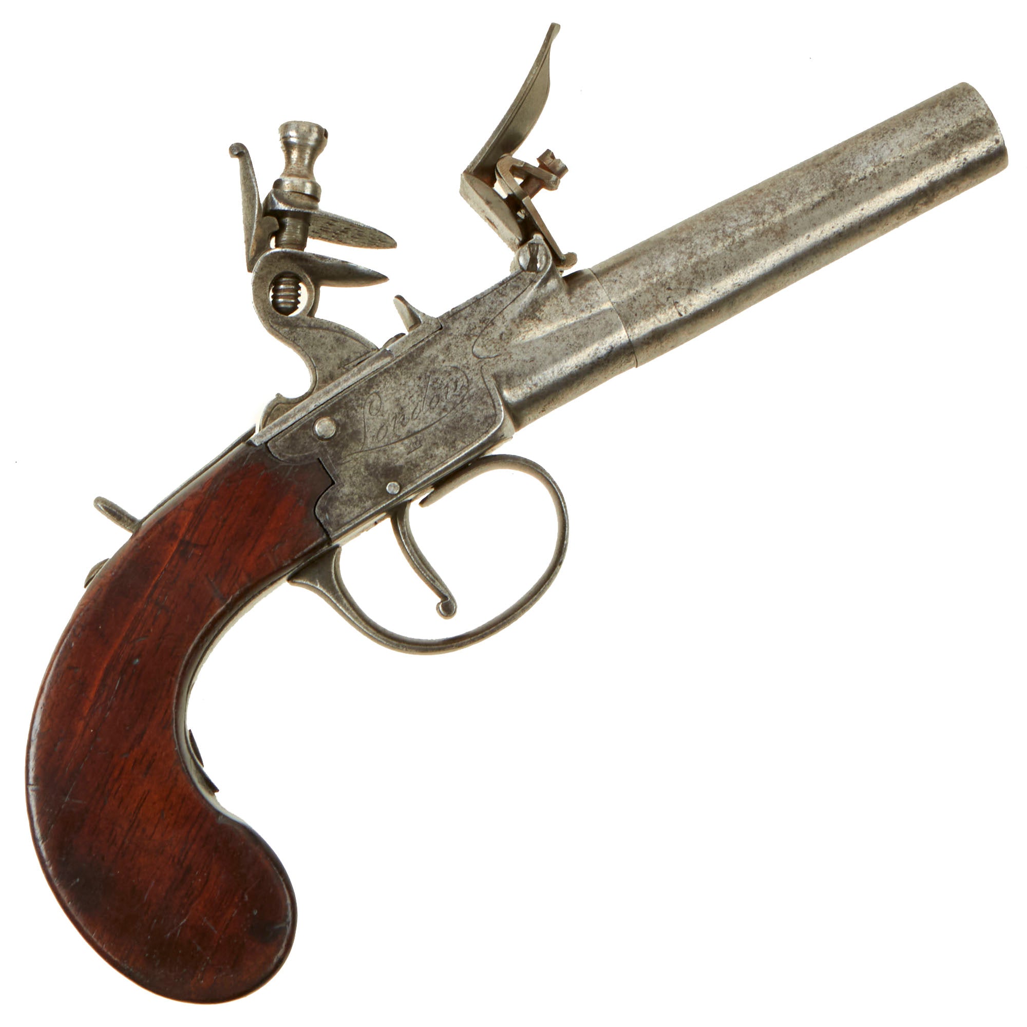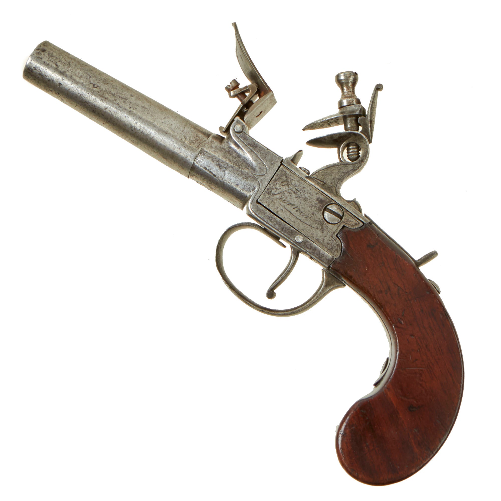 A great Flintlock pocket pistol, suitable for any Gentleman or Military Officer. Ready to display!