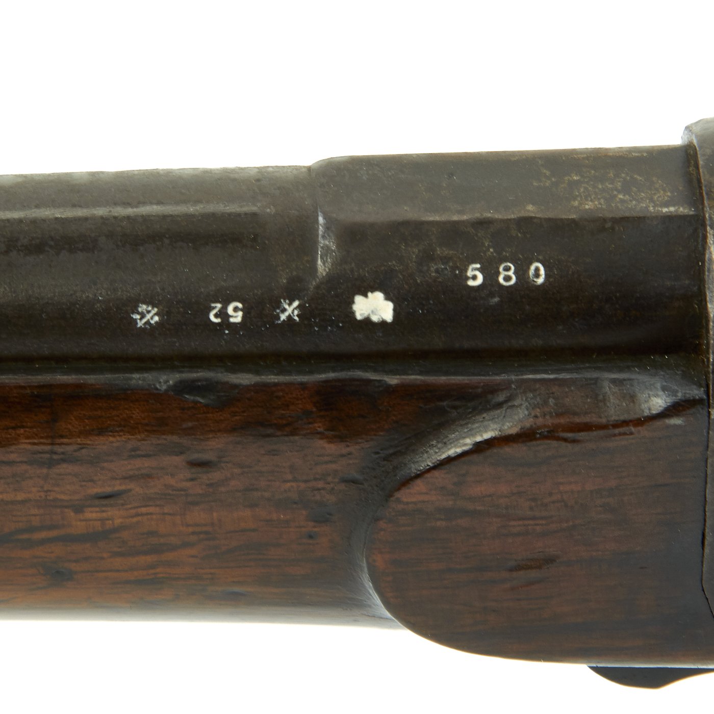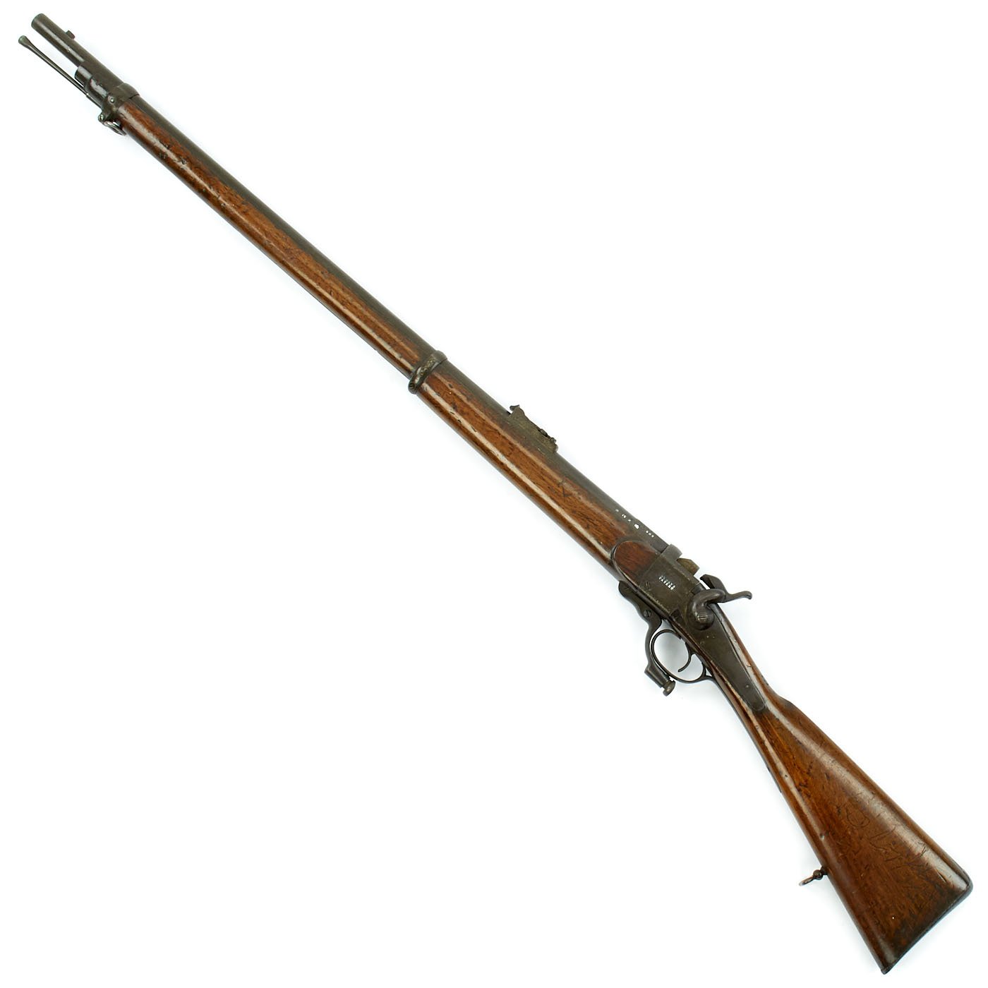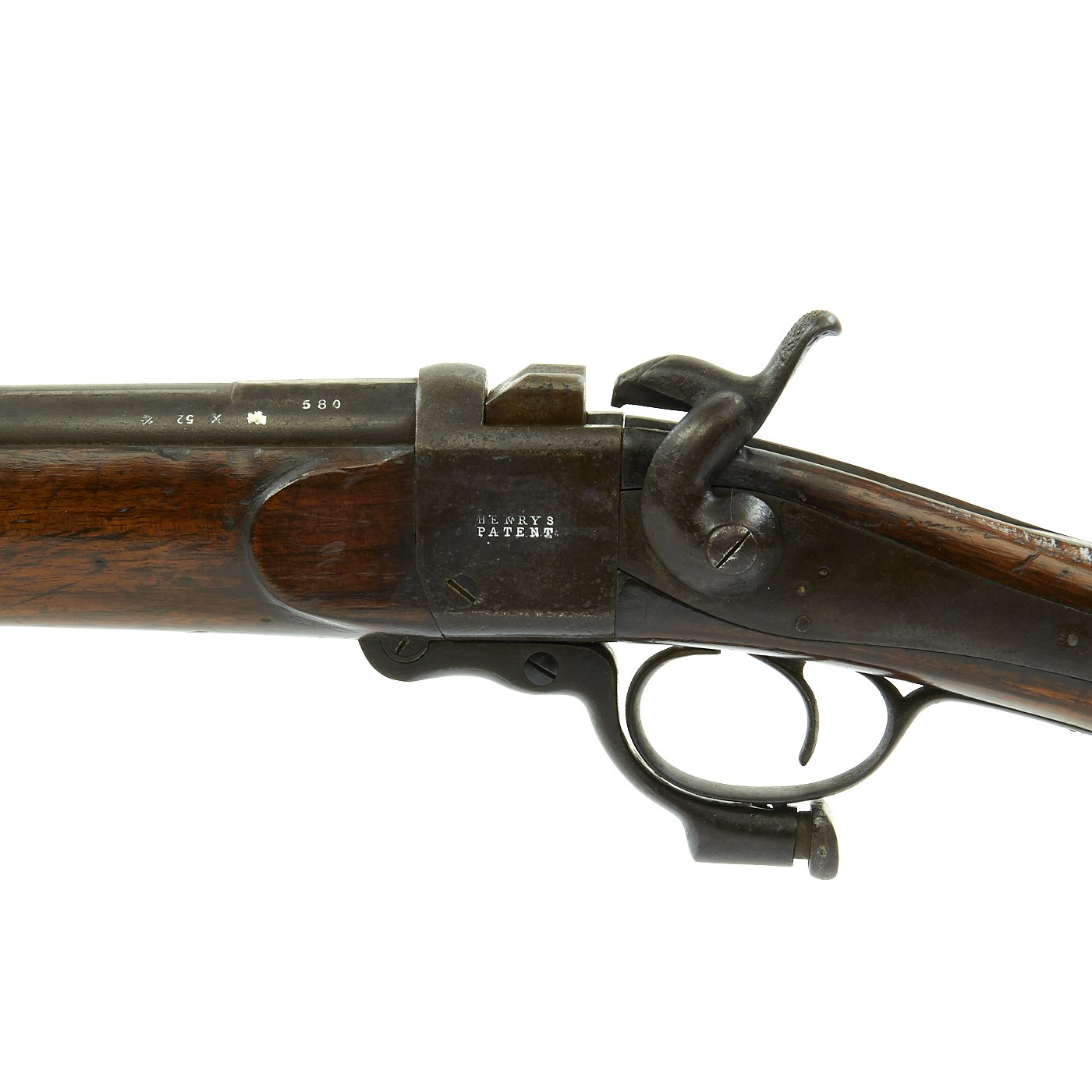 A splendid rifle in full military trim, showing the excellent Henry Rifling in the barrel in fine condition. There are British proof marks on the right side of the barrel, as well as serial number 580. A rare and very hard to find rifle today , this particular example not showing where it was used so may very well have remained in England for some reason or another.