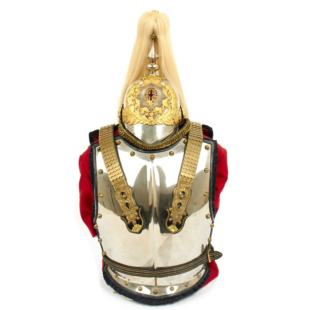 Officer's Uniforms are far more elaborate than for the standard trooper uniforms. The helmet plates and mounts are gilt and the cuirasses are lined in velvet. Officer’s uniforms are very expensive with no cost spared being in the direct service of the Monarch. This set, just received from an English collection, is in excellent condition and bears Lt. BARLOW's name on the inside of the breast and back plate. A magnificent set rarely encountered.