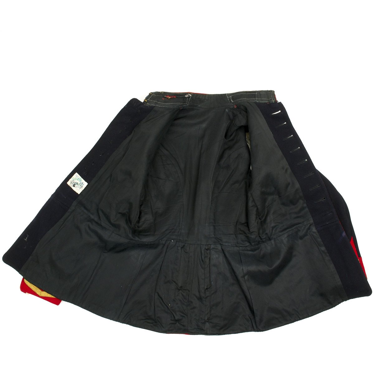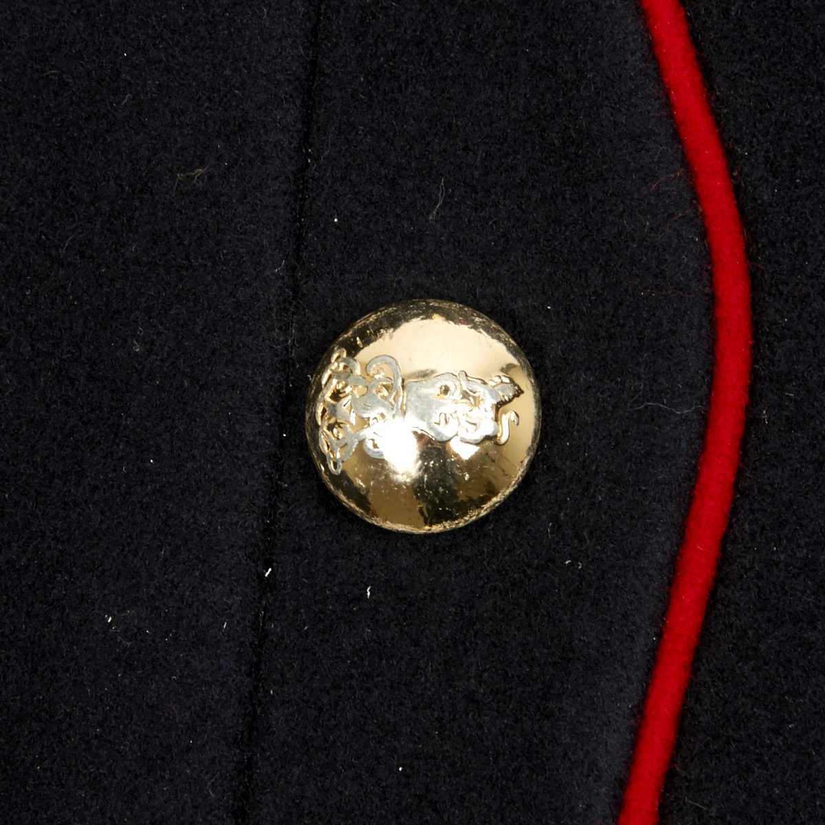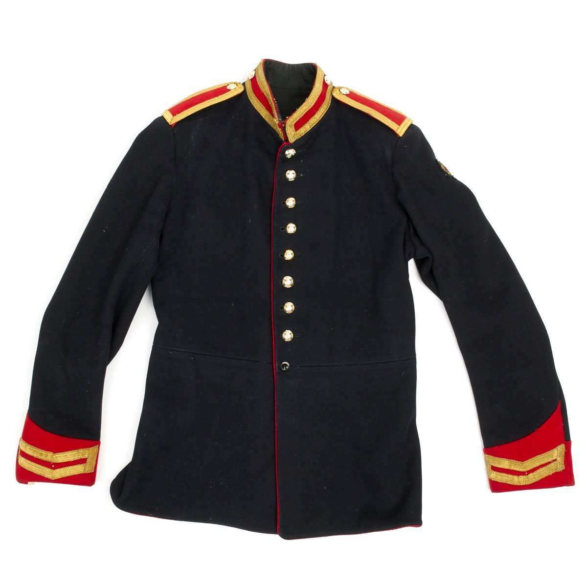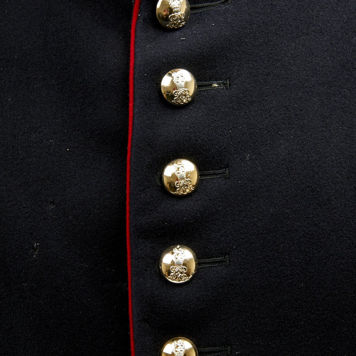 Blue Melton cloth tunic with red trim and regimental stay bright buttons, complete with gold roping Agliettes to each shoulder.