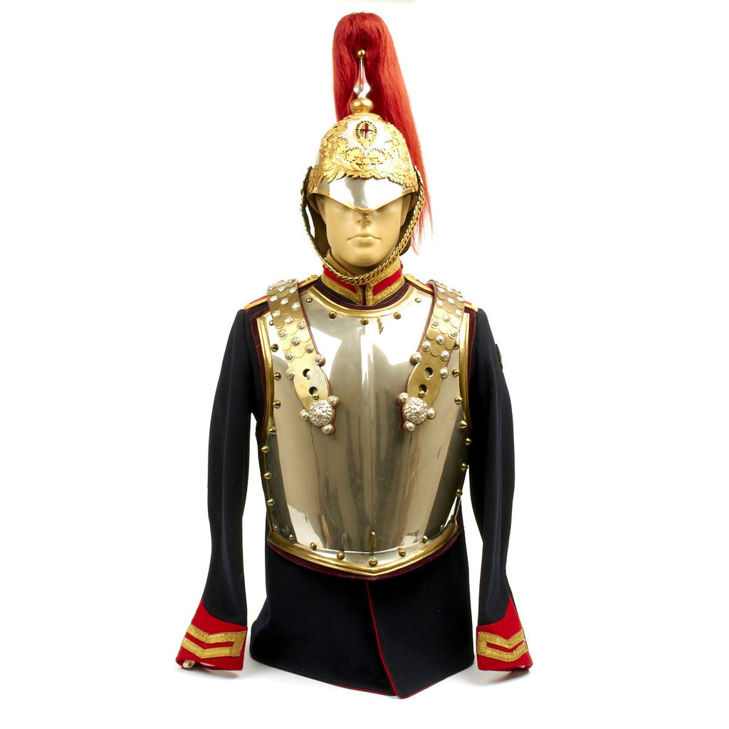 Original Items: Only One Set Available. The Royal Horse Guards, known as the Blues and Royals are, together with the Life Guards, better known as the Household Cavalry. In simple terms the Horse Guards wore blue tunics with red horsehair plumes on their helmets and the Life Guards wore red tunics with white horse hair plumes.