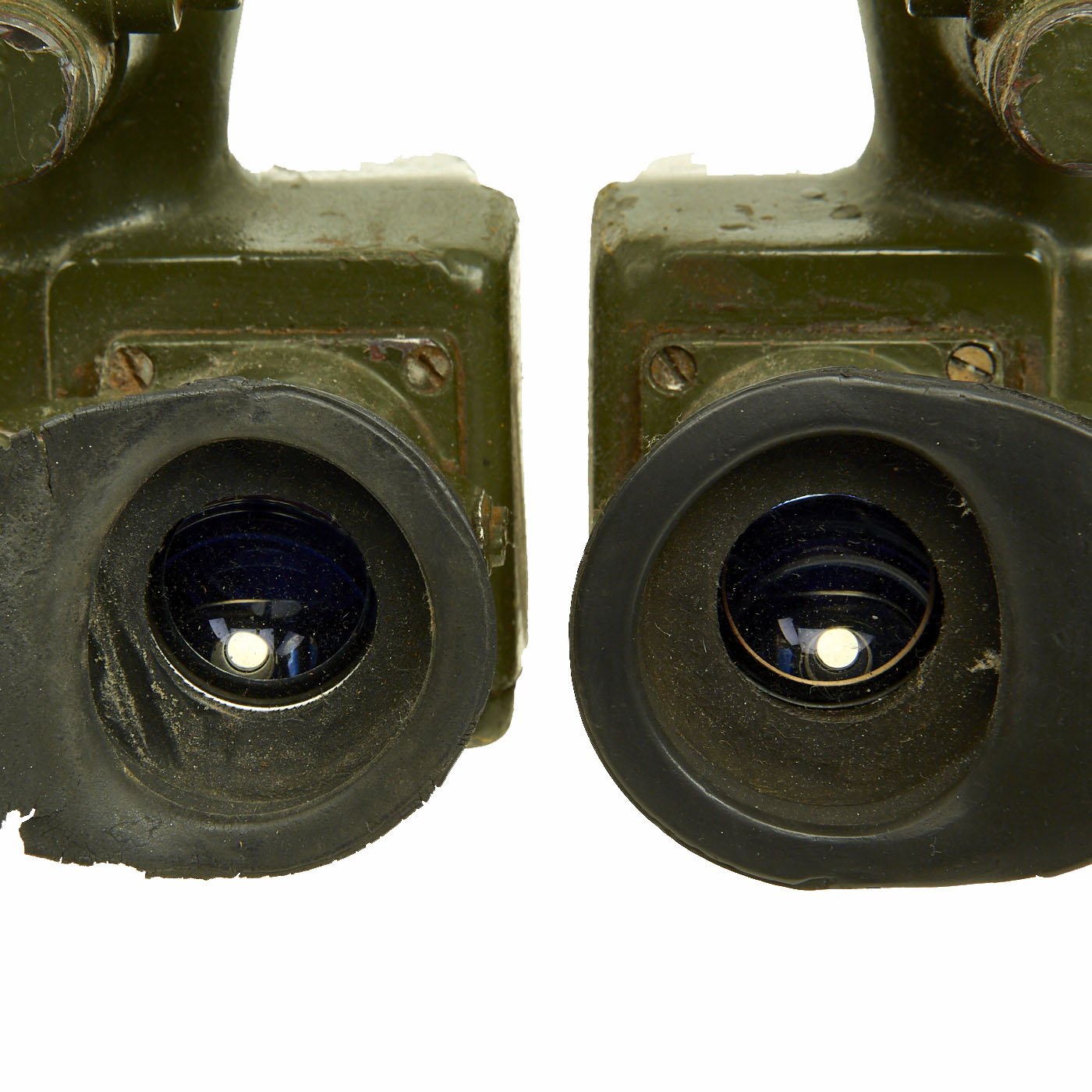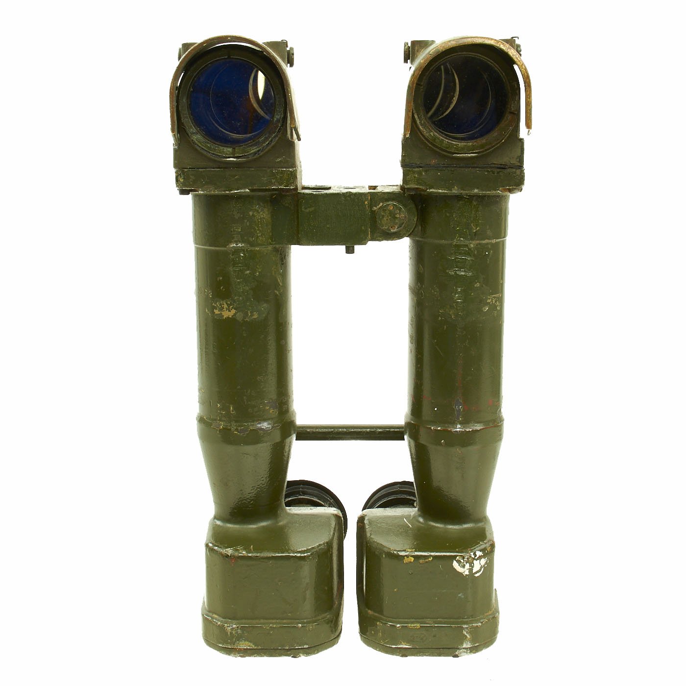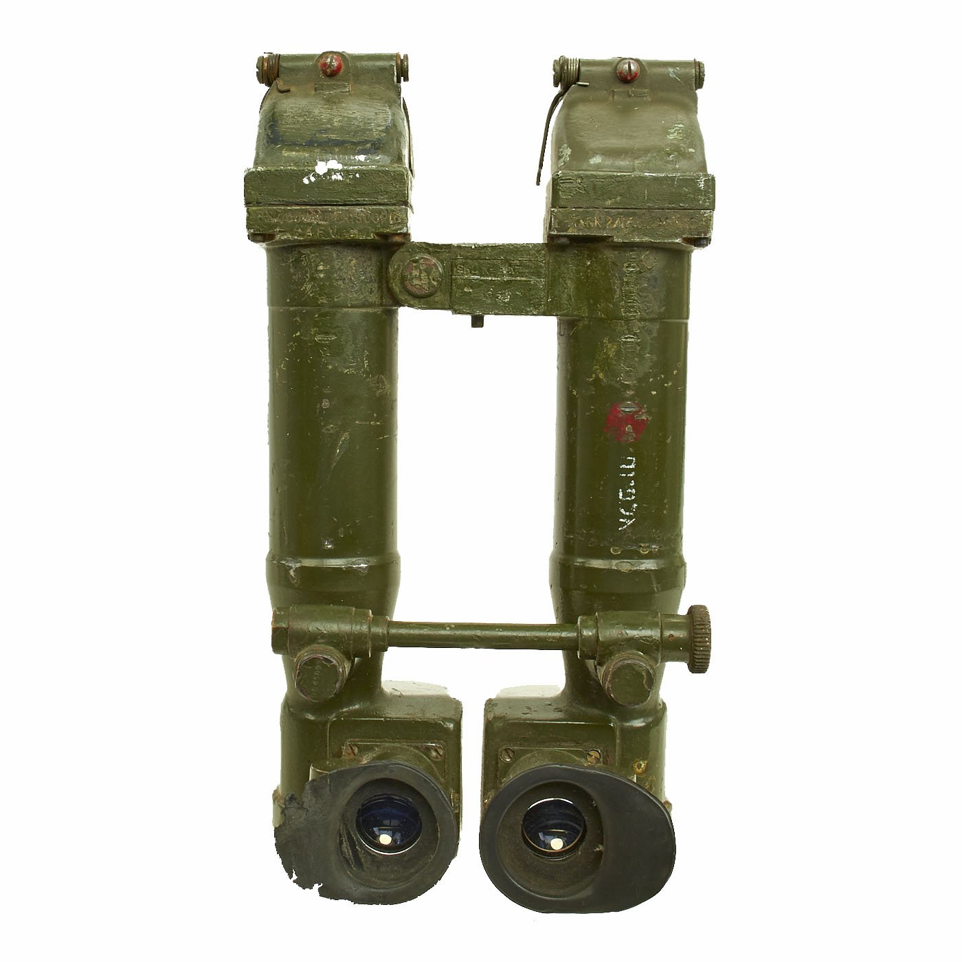 Original item: Only One Available. This is a very nice set of Cold War British Israeli-Made A.F.V. (Armored Fighting Vehicle) BINOCULARS, PERISCOPIC, in very good functional condition. This style of binoculars are often called "Rabbit Ears", or more recently "Tank Commander" binoculars. They allow someone to safely view distant objects without subjecting the viewer to oncoming fire. The right side has a very nice 3 sided range reticle.