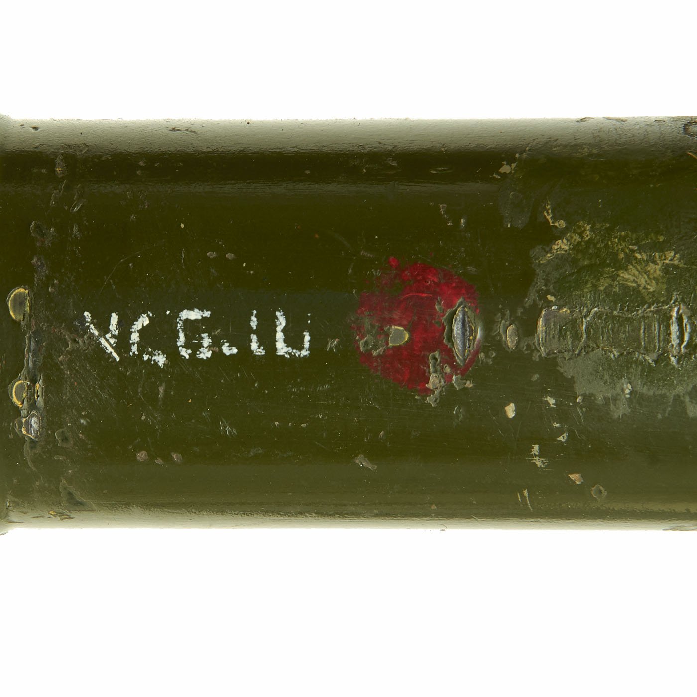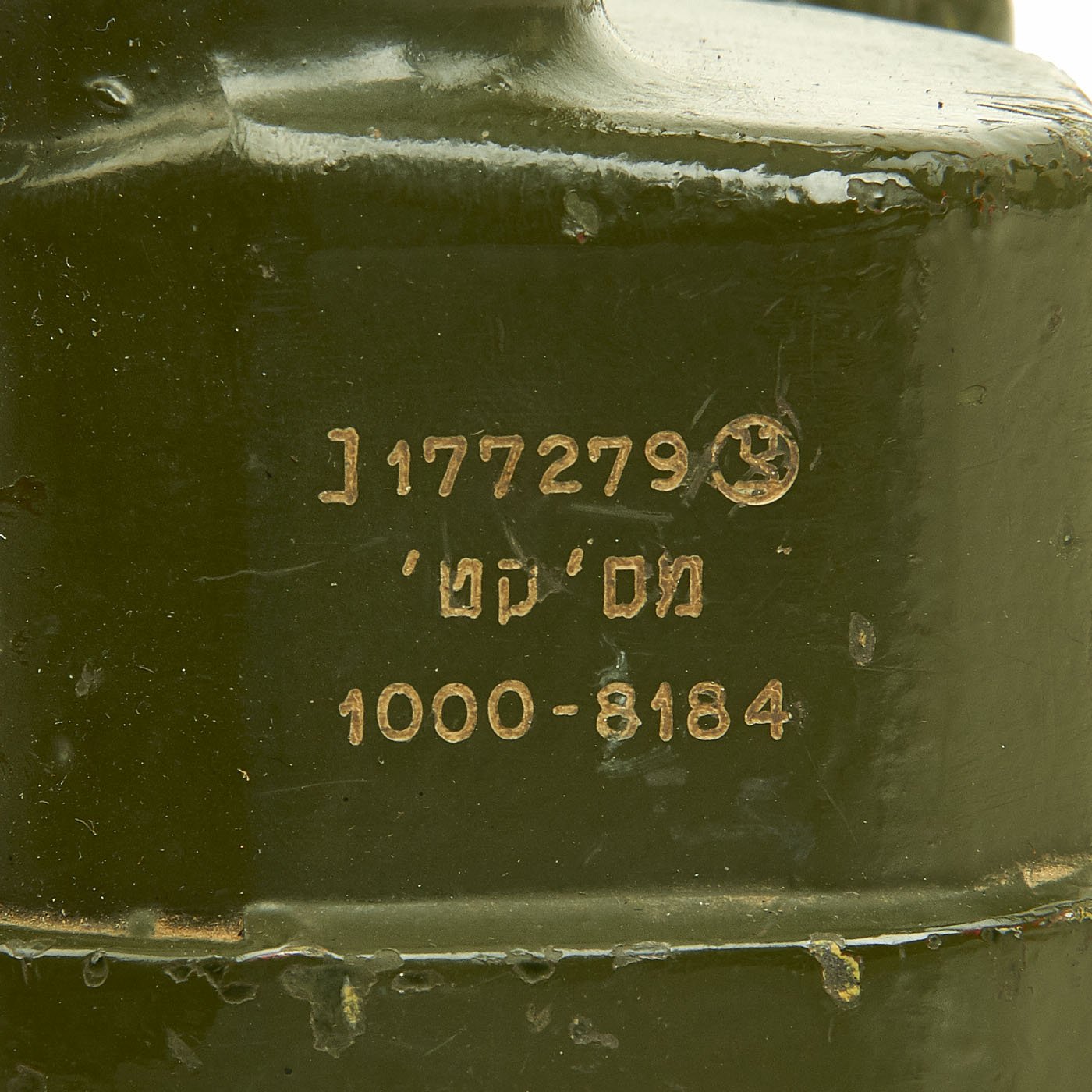 This set bears Israeli Markings on the lower right, and from what we have found, these were Israeli made, and used by British and Israeli forces during the cold war. There are markings at the top of the barrels on the right and left, as well as in the middle, which gives a serial number and the date of 1956. Unfortunately multiple layers of paint have made some of the markings hard to see, but we can still see the markings somewhat.