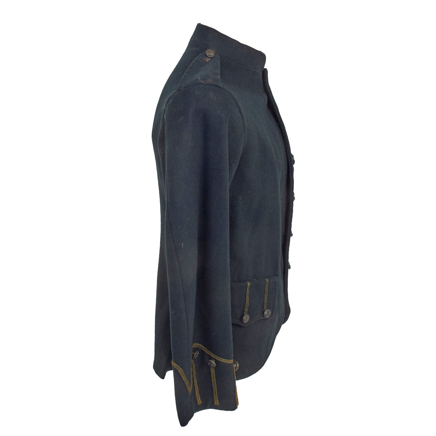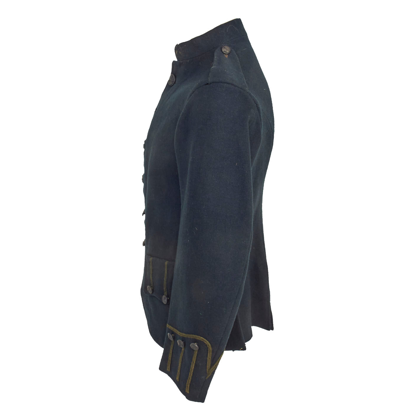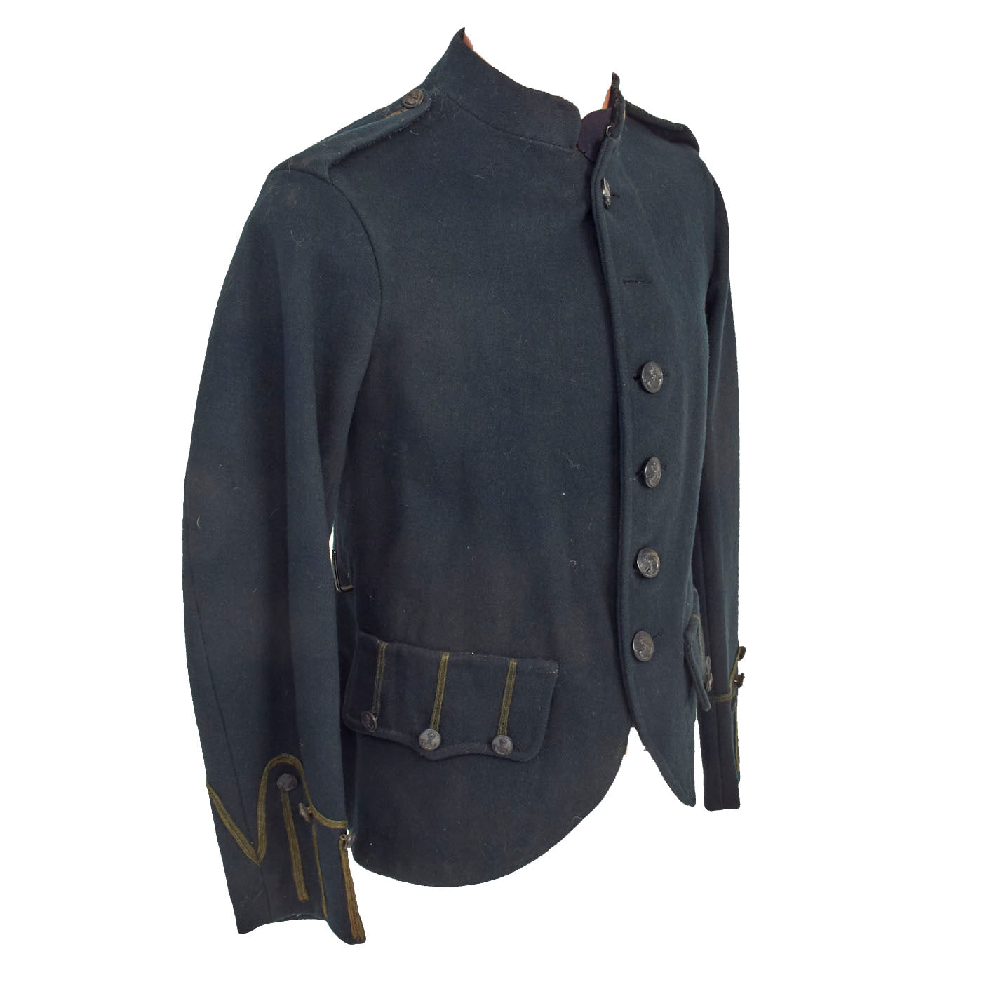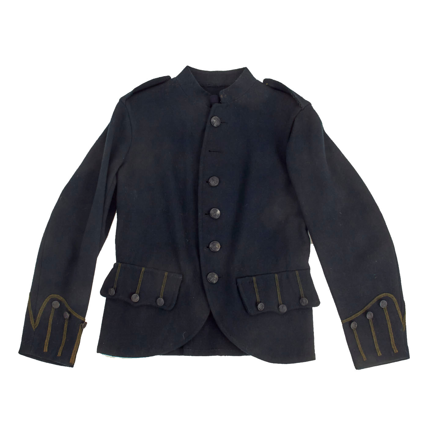 Original Items: Only One Set Available. This is, as stated from the King's Royal Rifle Corp as stated on the Maltese Cross Cap Badge together with the unit's Battle honors. The tunic, which is correctly known as a Scottish or Highland Doublet, is designed to be worn with a Kilt and still bears its original paper Label on the inside interior back stating that it was made by the ROYAL ARMY CLOTHING FACTORY, in JAN 1913. The label also gives the measurements of the doublet, and indicates that it is a Scottish style uniform for the King's Royal Rifles. The doublet bears the correct "Hunting Horn" buttons of the King's Royal Rifle Corps.
