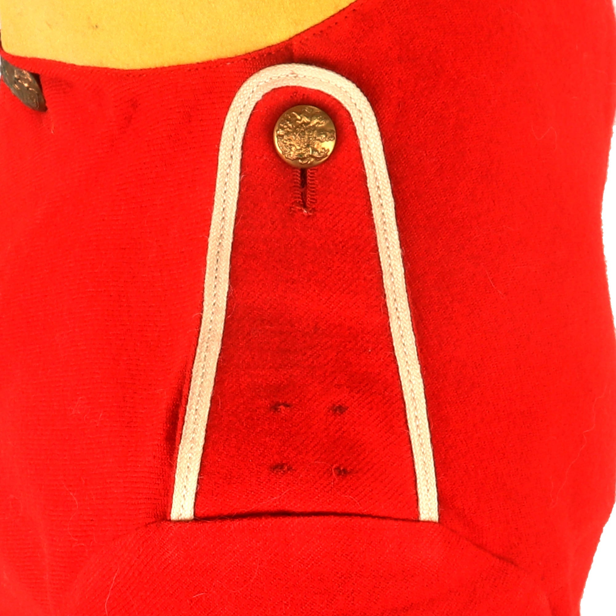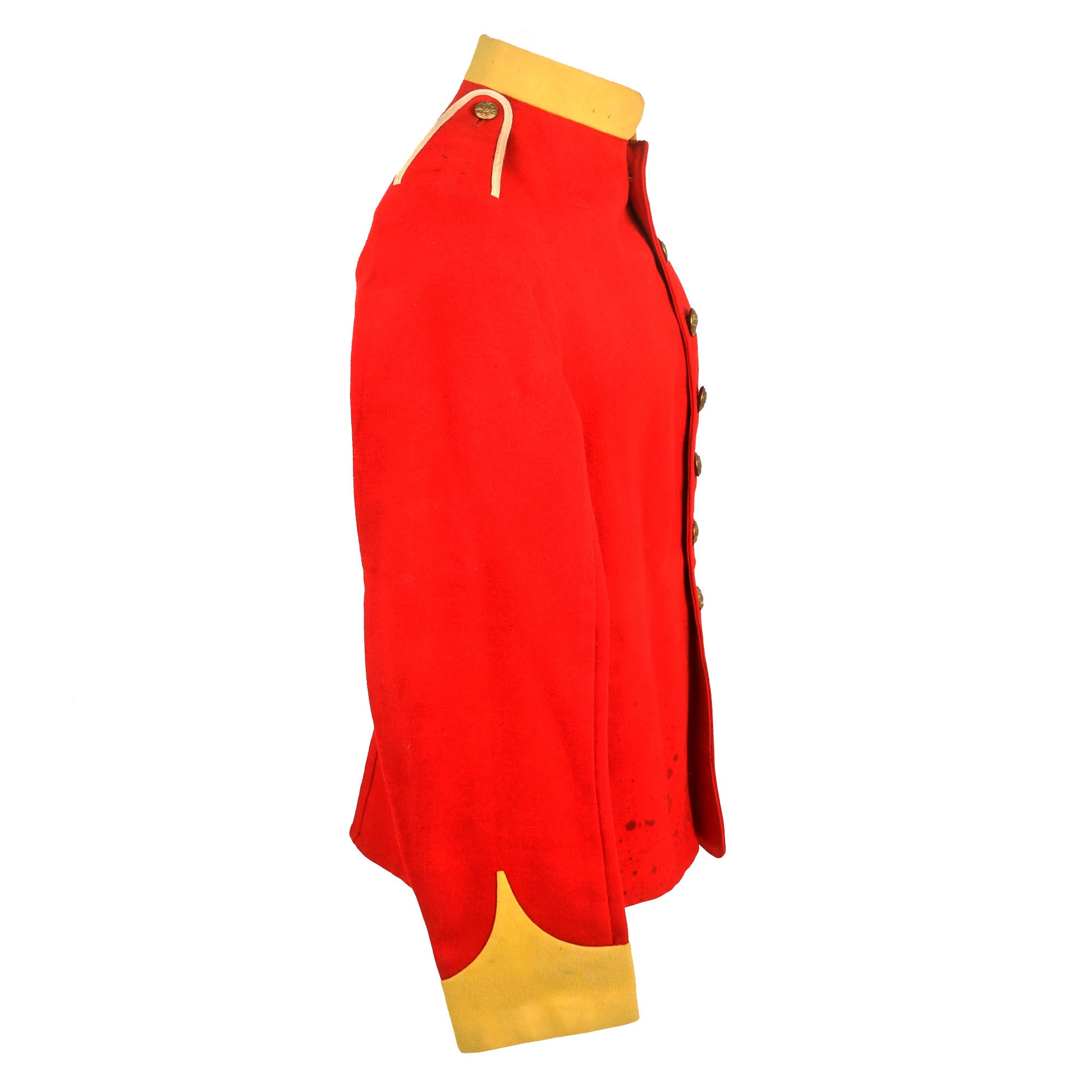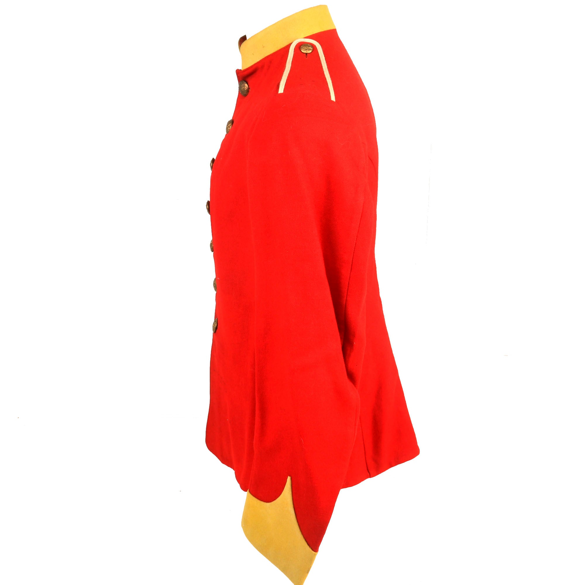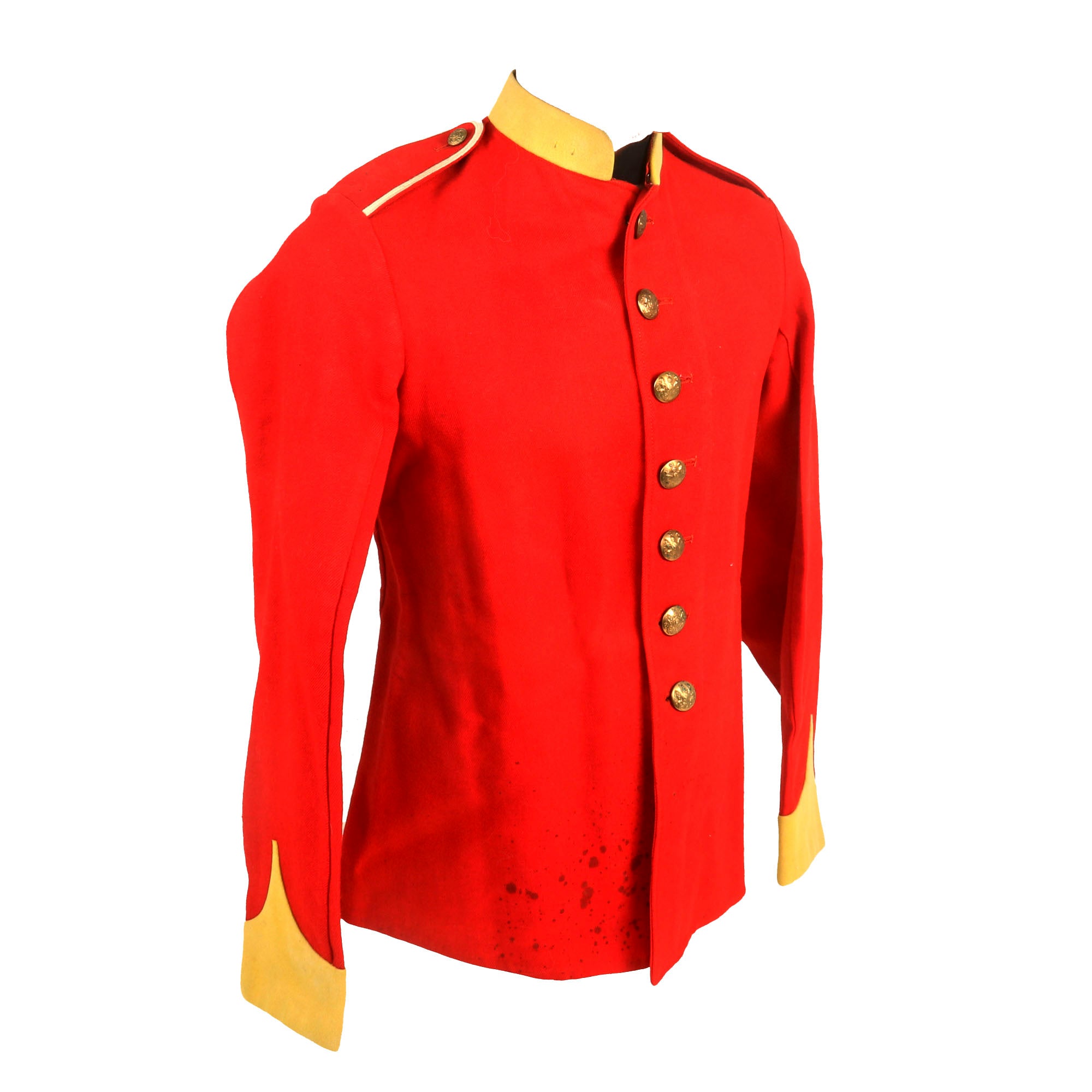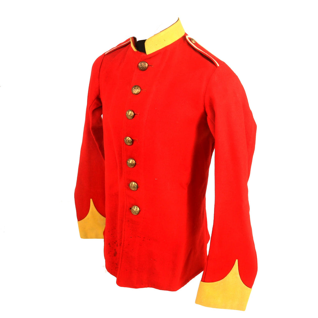 Original Item: Only One Available. Red coat or scarlet tunic was a military garment used widely, though not exclusively worn, by most regiments of the British Army, Royal Marines, and some colonial units within the British Empire, from the 17th to the 20th centuries. The scarlet tunic continues to be used into the 21st century, with several armed forces of the Commonwealth of Nations adopting them as their full dress and mess dress uniforms. The uniform and term "redcoat" may have originated in 16th century Tudor Ireland as a derogatory term for the British, as British soldiers in Lord Lieutenant of Ireland's army wore red coats, the first time English and Scottish soldiers under English command and later British collectively had a red uniform. The term was then brought to America and Europe by Irish emigrants.From the mid-17th century to the 19th century, the uniform of most British soldiers (apart from artillery, rifles and light cavalry) included a madder red coat or coatee. From 1873 onwards, the more vivid shade of scarlet was adopted for all ranks, having previously been worn only by officers, sergeants and all ranks of some cavalry regiments.The tunic is a fine example of an “Other Ranks” scarlet coat and is constructed of kersey wool without lining. The coat is secured by 7 General Service buttons with matching buttons on the shoulders.Comes more than ready for further research and display.