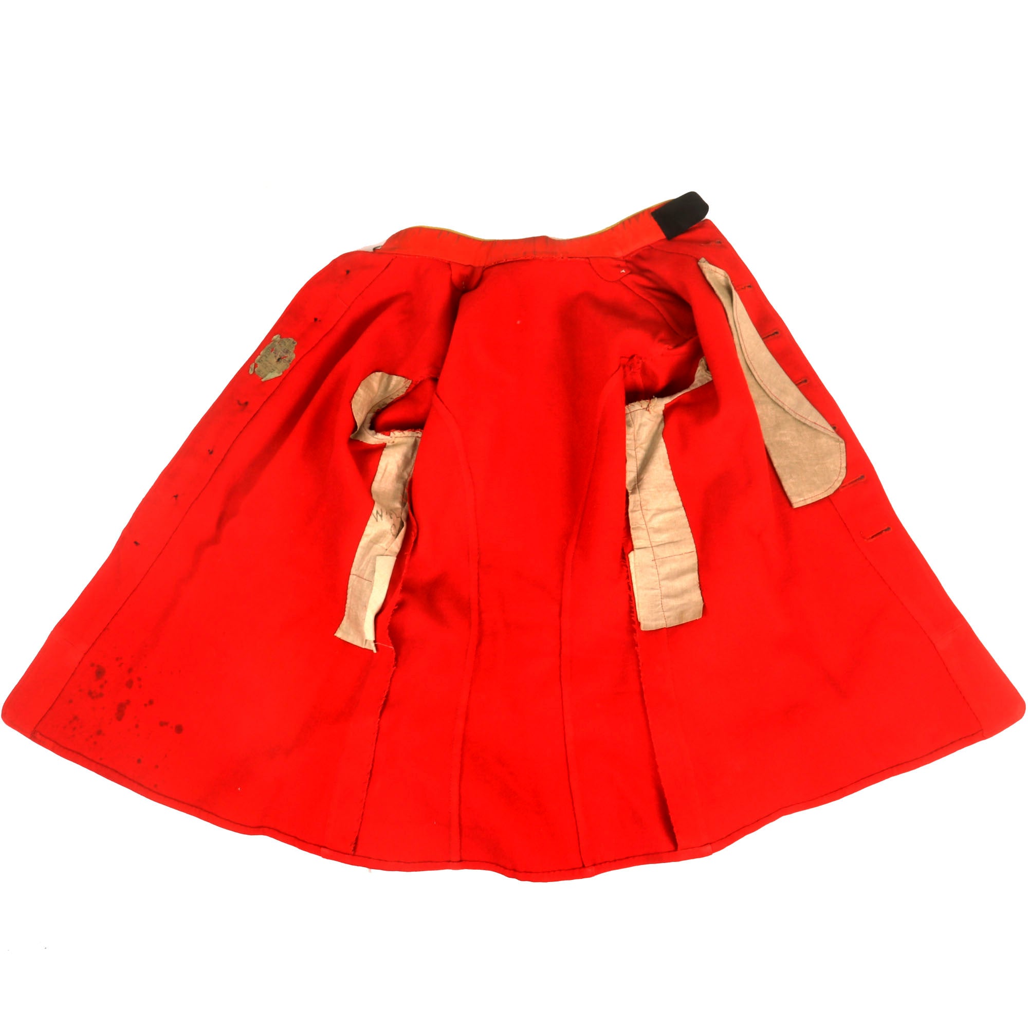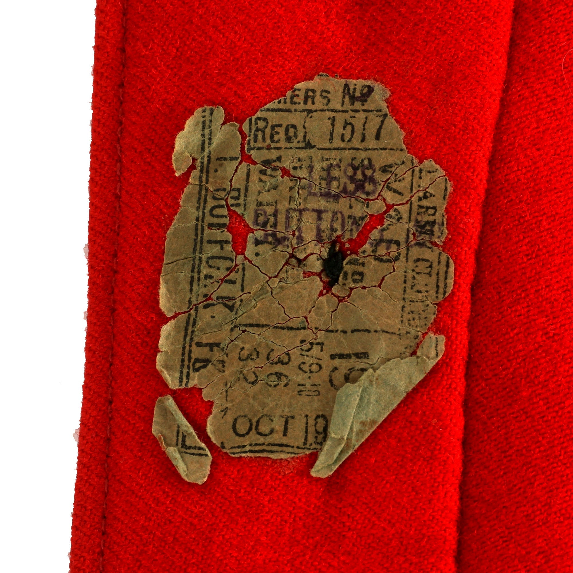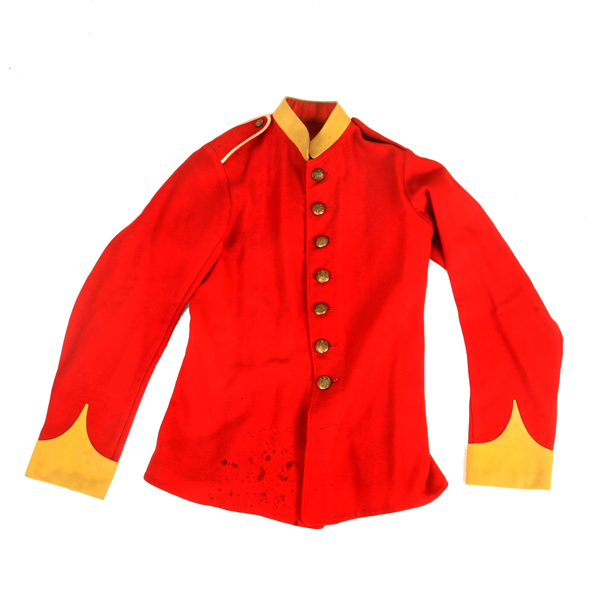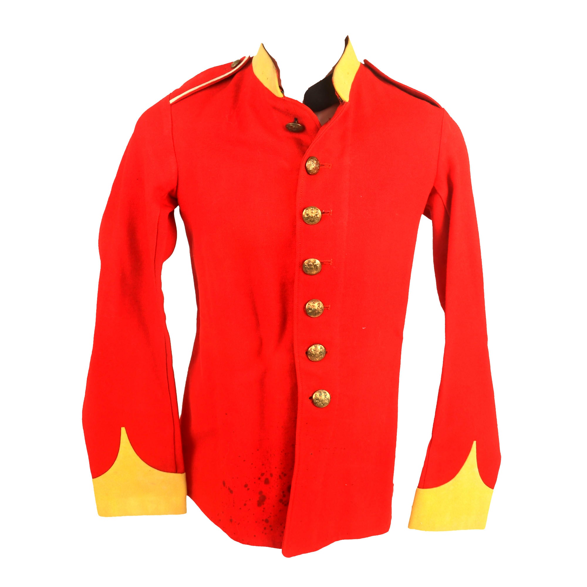 Original Item: Only One Available. Red coat or scarlet tunic was a military garment used widely, though not exclusively worn, by most regiments of the British Army, Royal Marines, and some colonial units within the British Empire, from the 17th to the 20th centuries. The scarlet tunic continues to be used into the 21st century, with several armed forces of the Commonwealth of Nations adopting them as their full dress and mess dress uniforms. The uniform and term "redcoat" may have originated in 16th century Tudor Ireland as a derogatory term for the British, as British soldiers in Lord Lieutenant of Ireland's army wore red coats, the first time English and Scottish soldiers under English command and later British collectively had a red uniform. The term was then brought to America and Europe by Irish emigrants.From the mid-17th century to the 19th century, the uniform of most British soldiers (apart from artillery, rifles and light cavalry) included a madder red coat or coatee. From 1873 onwards, the more vivid shade of scarlet was adopted for all ranks, having previously been worn only by officers, sergeants and all ranks of some cavalry regiments.The tunic is a fine example of an “Other Ranks” scarlet coat and is constructed of kersey wool without lining. The coat is secured by 7 General Service buttons with matching buttons on the shoulders.Comes more than ready for further research and display.