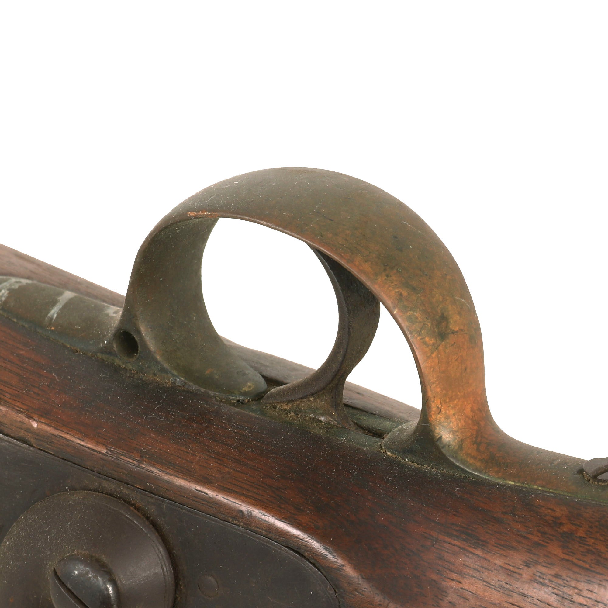 This musket saw heavy use, with a great deal of powder burn on the barrel nocks form and in the bore. The ram rod is still intact, but requires some force to take out. The condition is fair overall without any serious issues.