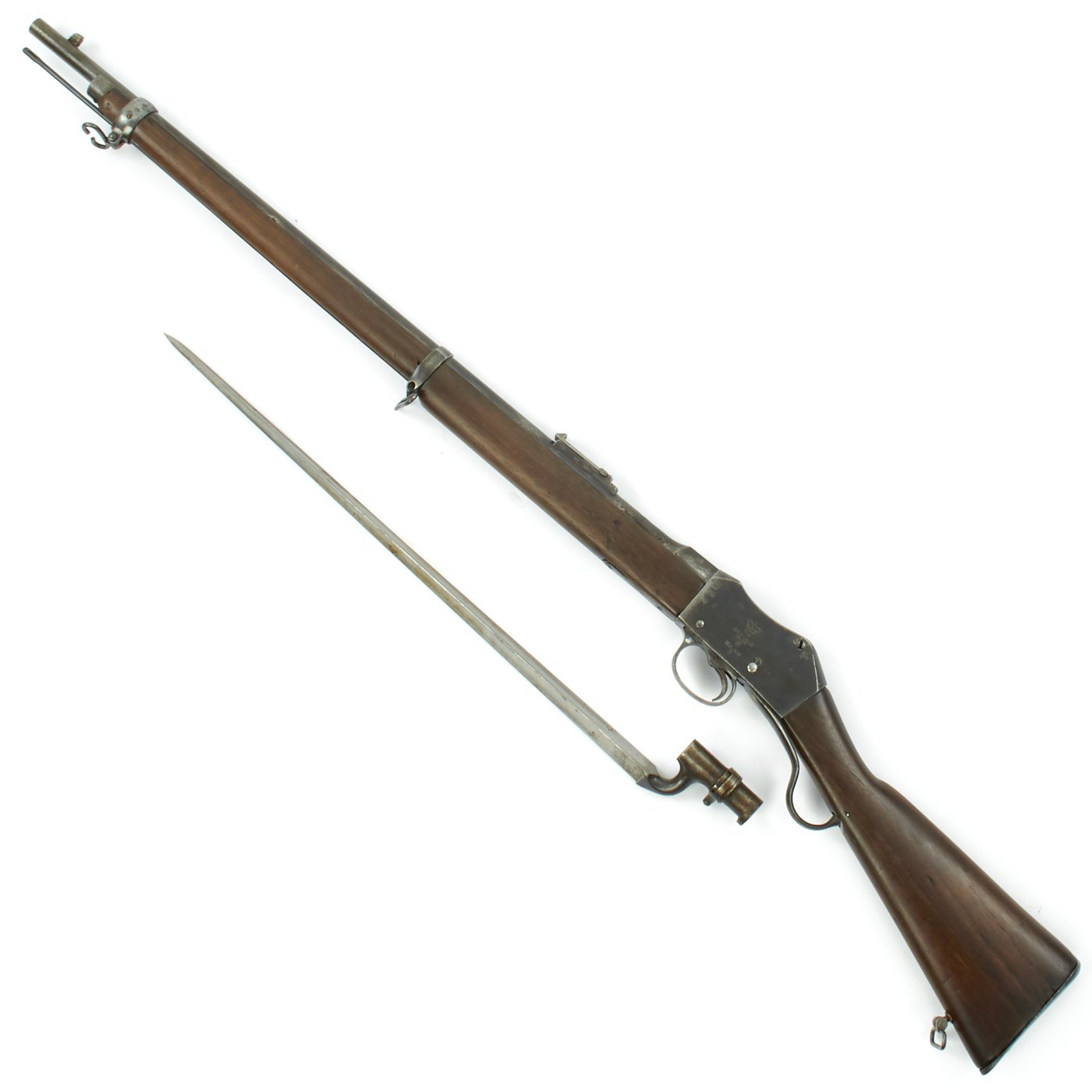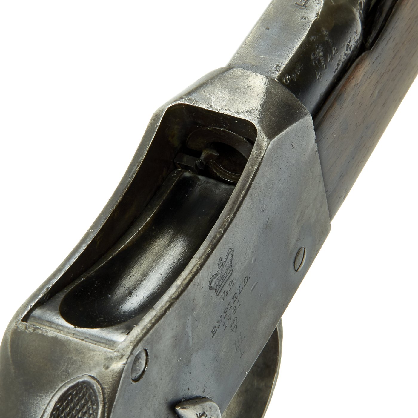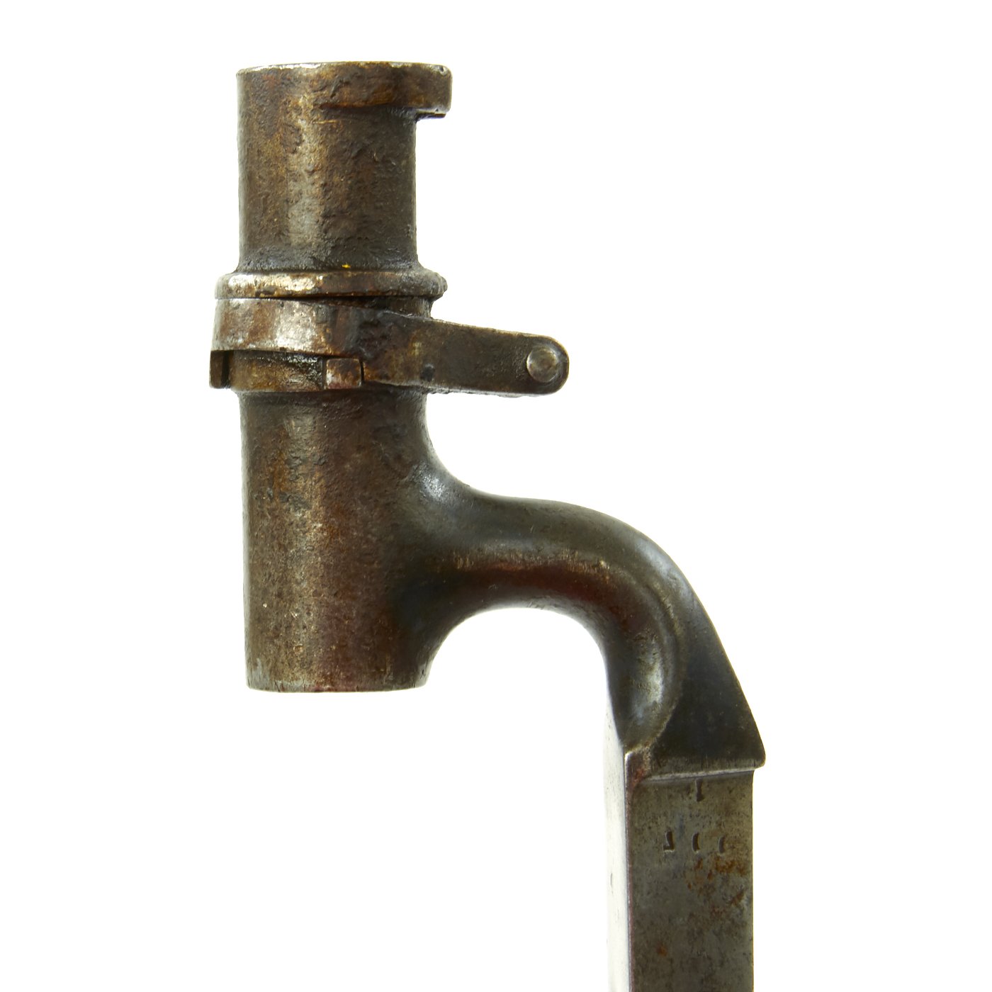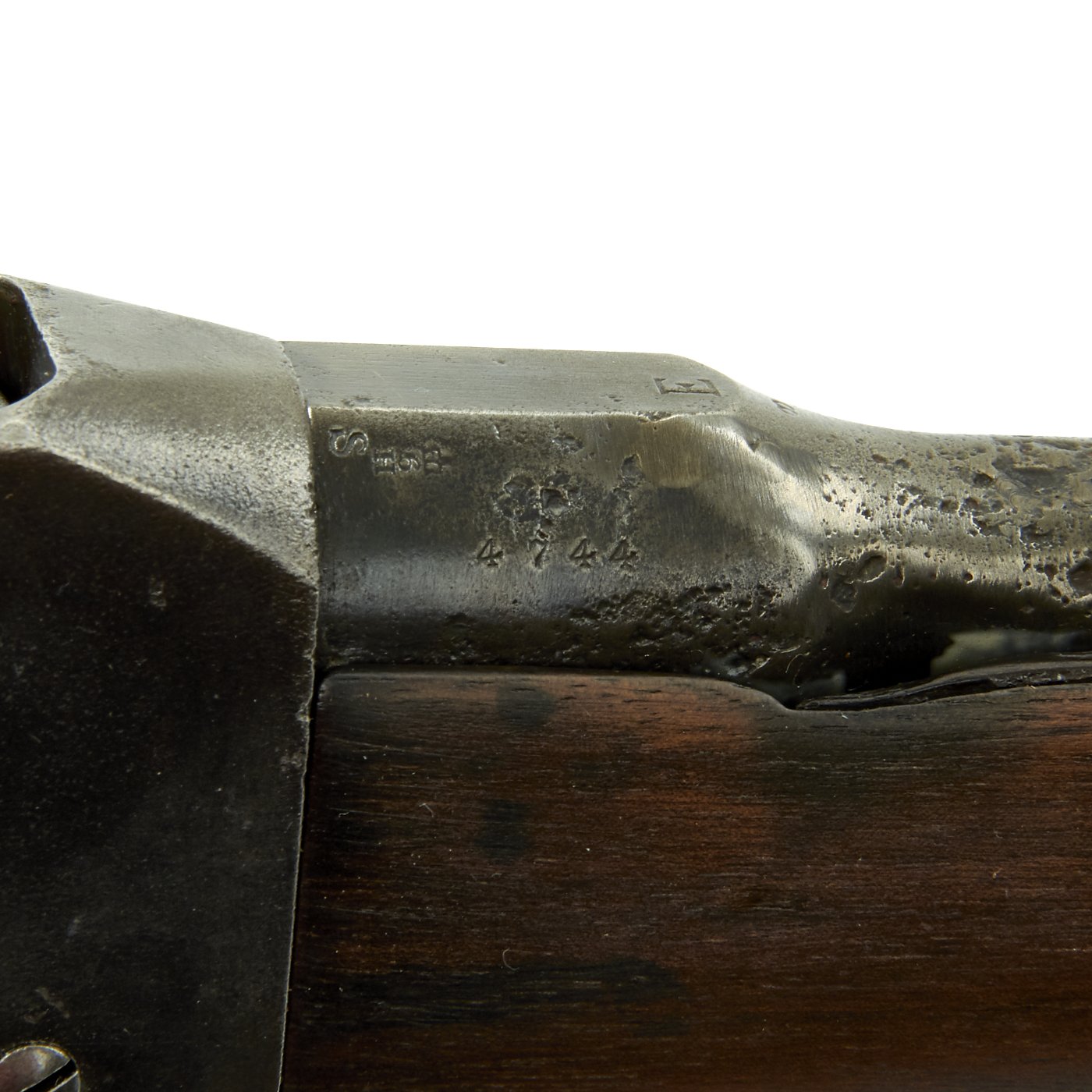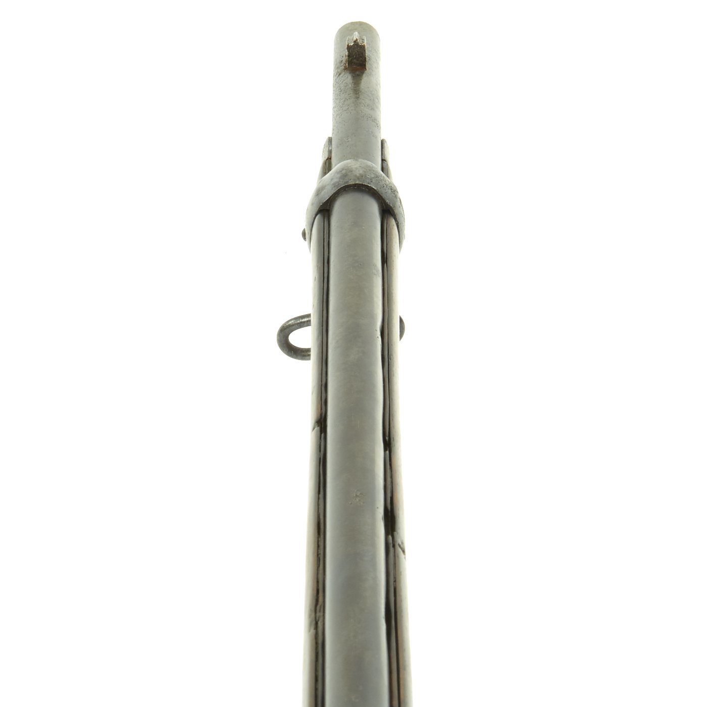 In very good condition the exterior of the barrel shows some deep scattered pits behind the rear sight but otherwise in a splendid display condition. Rifle comes complete with an original LONG Martini P-1876 Socket Bayonet officially converted to fit the new .303 caliber barrel. A very hard setup to find today with both sets of markings intact and a converted P-1876/P-1895 long Socket Bayonet.