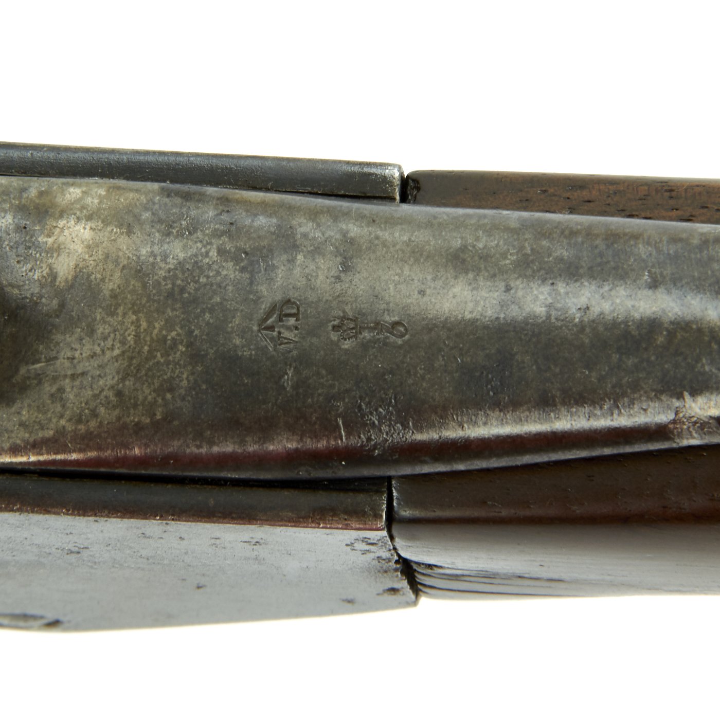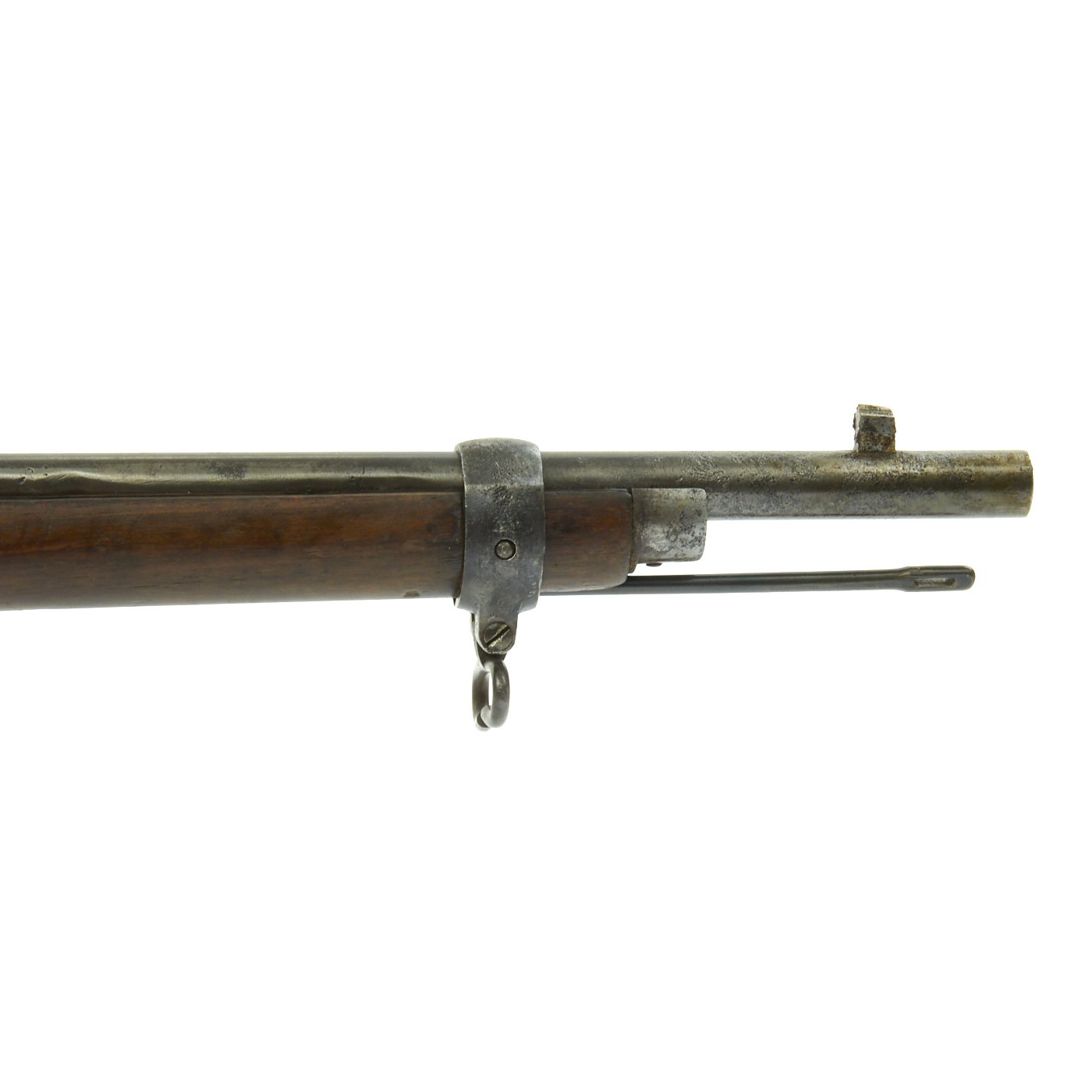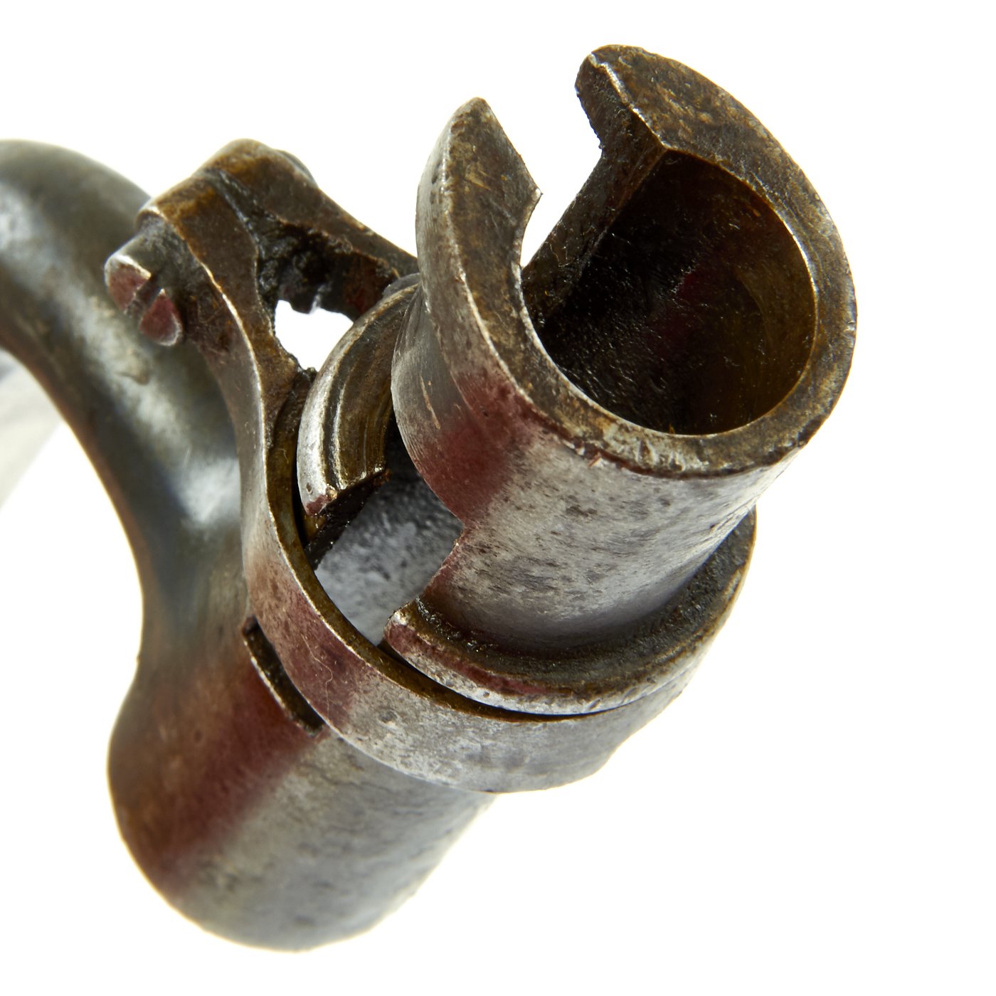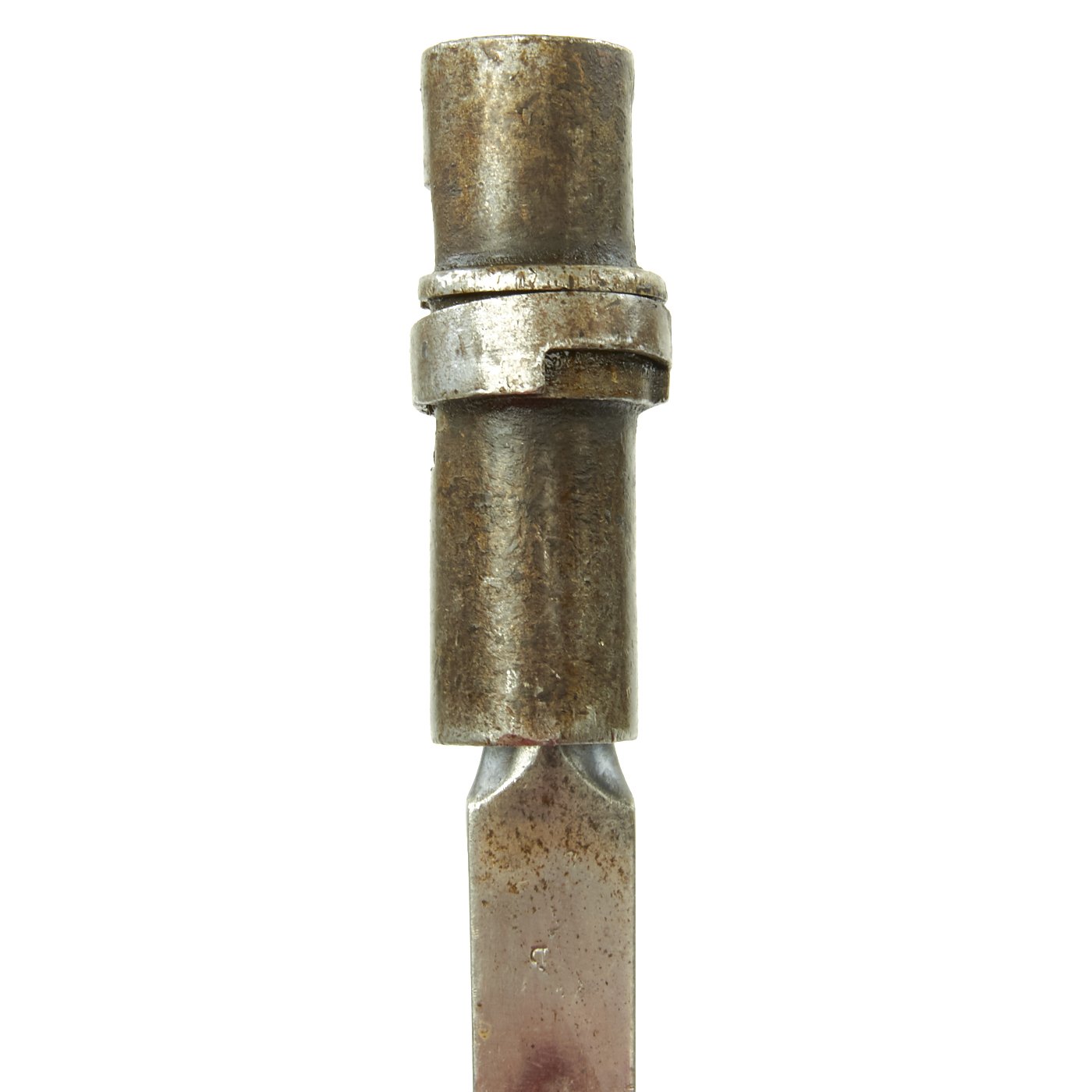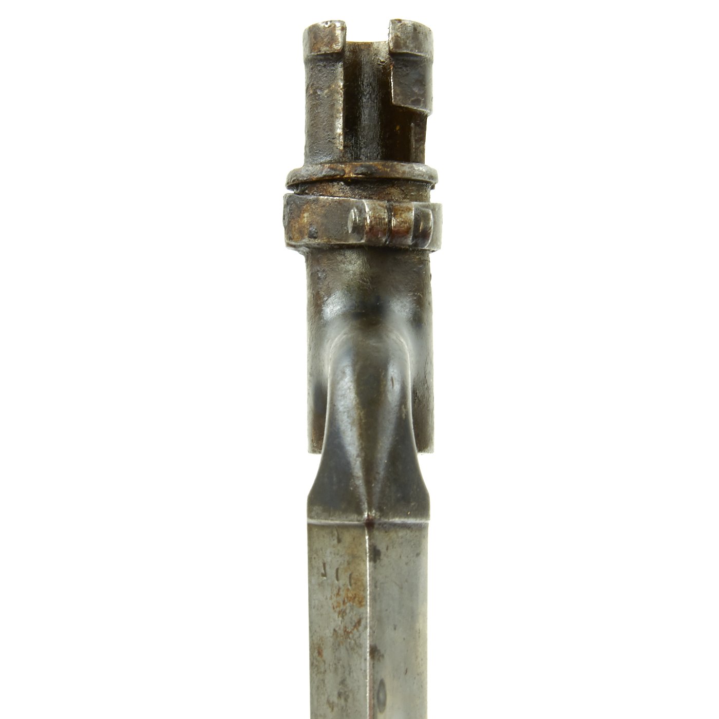 In very good condition the exterior of the barrel shows some deep scattered pits behind the rear sight but otherwise in a splendid display condition. Rifle comes complete with an original LONG Martini P-1876 Socket Bayonet officially converted to fit the new .303 caliber barrel. A very hard setup to find today with both sets of markings intact and a converted P-1876/P-1895 long Socket Bayonet.