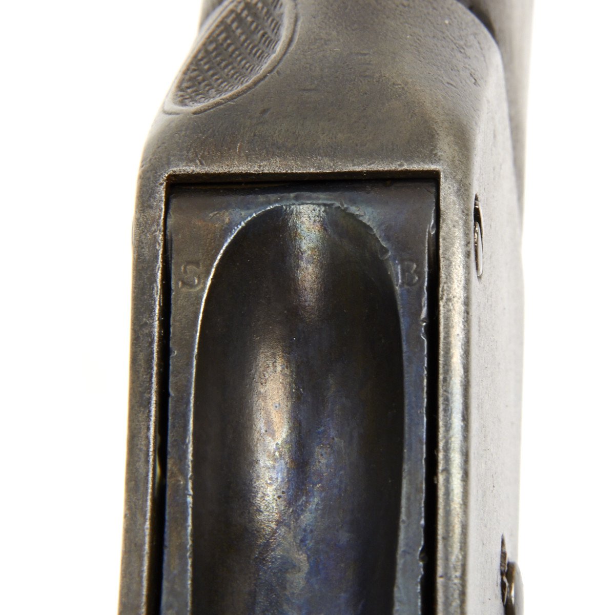 Before final approval and general issue, several features of the MK1 2nd pattern rifle were altered: The sling swivel on the stock was abolished March 1875. It was however retained by Rifle Regiments. The Mk1 breech- block was previously held in place by a bronze axis pin that frequently fell out, the new modal had a new split sprung cotter pin fitted in its place. The recess left by the adjacent locking screw had a small crescent shaped panel installed and this was filled and blued to match the action. The new rifle was now ready for general issue to the troops, on July 7th 1874 the service pattern was sealed.