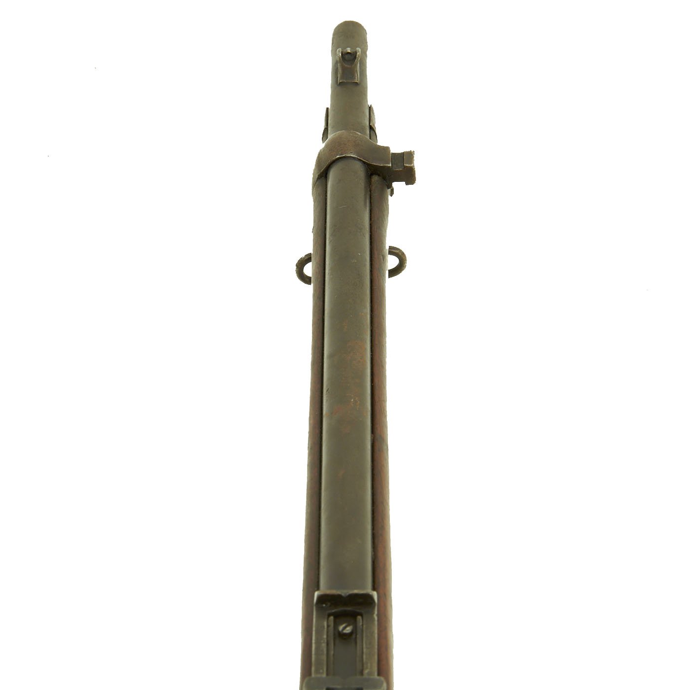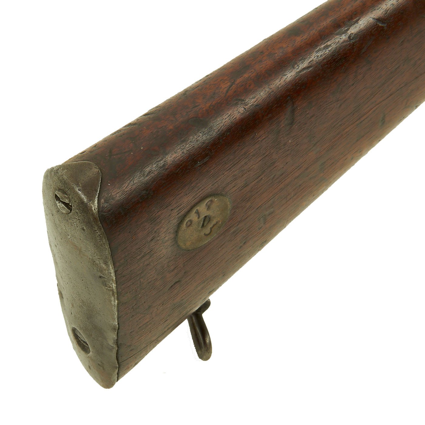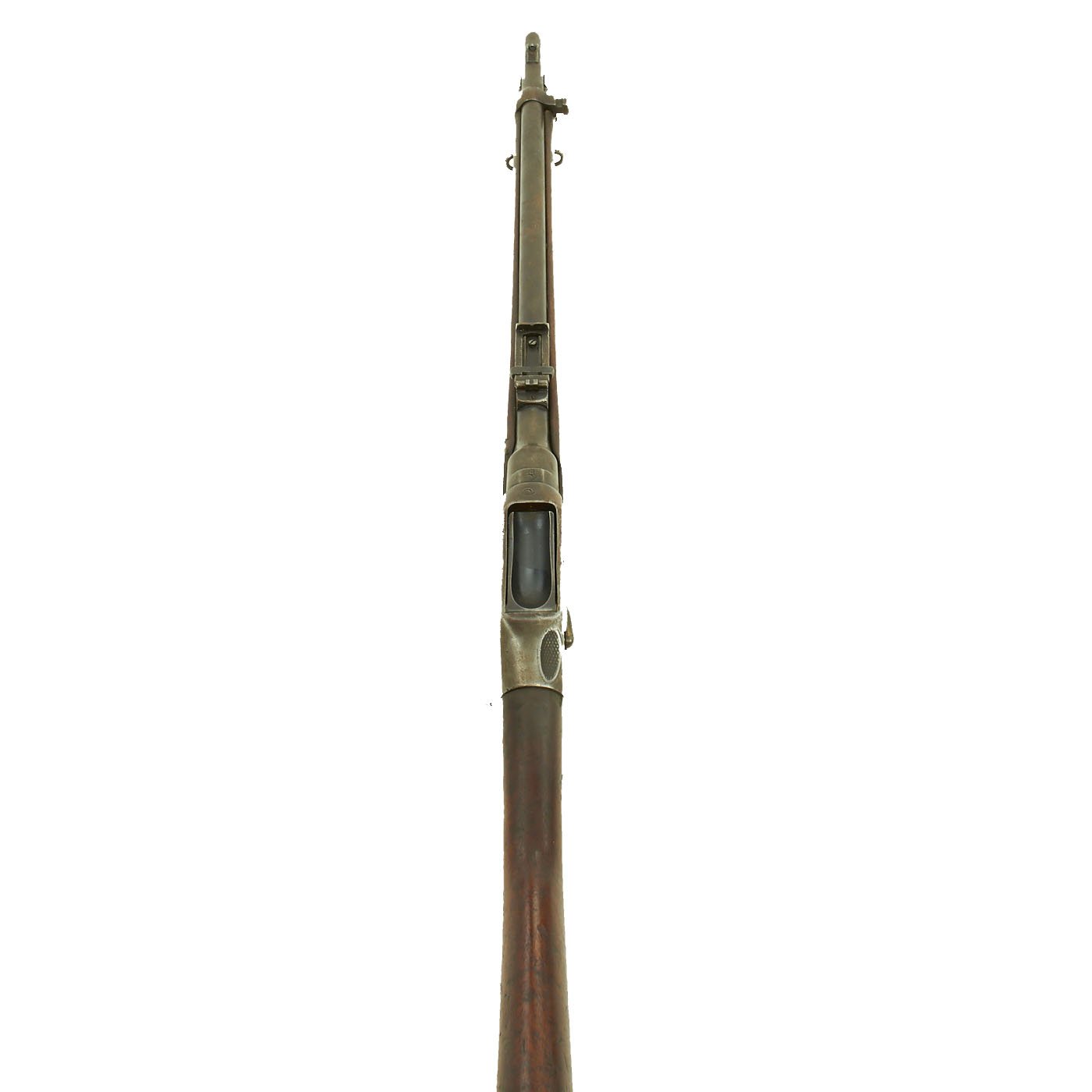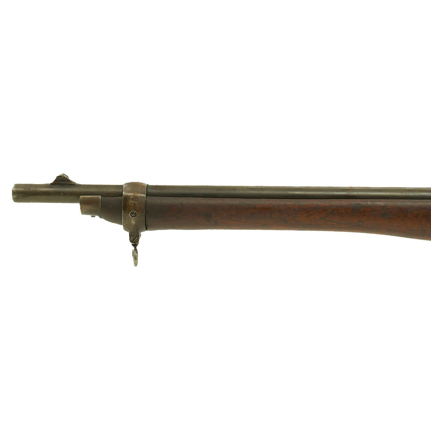 The Martini action, adopted by the British in 1871 was one of the strongest ever developed, and saw military service in England and the Empire, in one form or another for almost seventy years. Its most famous action being the defense of Rorke's Drift in Natal, South Africa in the 1879 Zulu War. The bore shows clear rifling with a bright finish, and just a bit of wear on the lands. The exterior is also in nice shape, with lovely wood, that shows the usual wear from age and service.