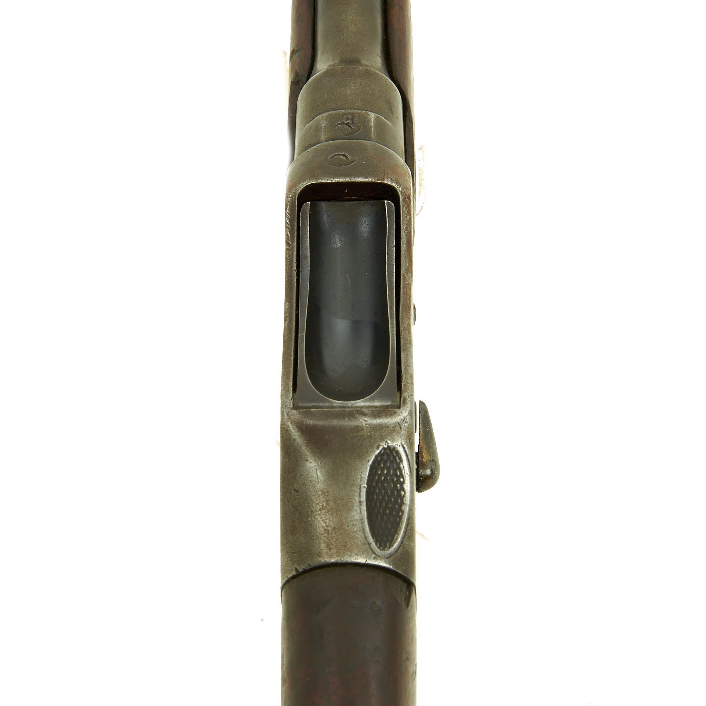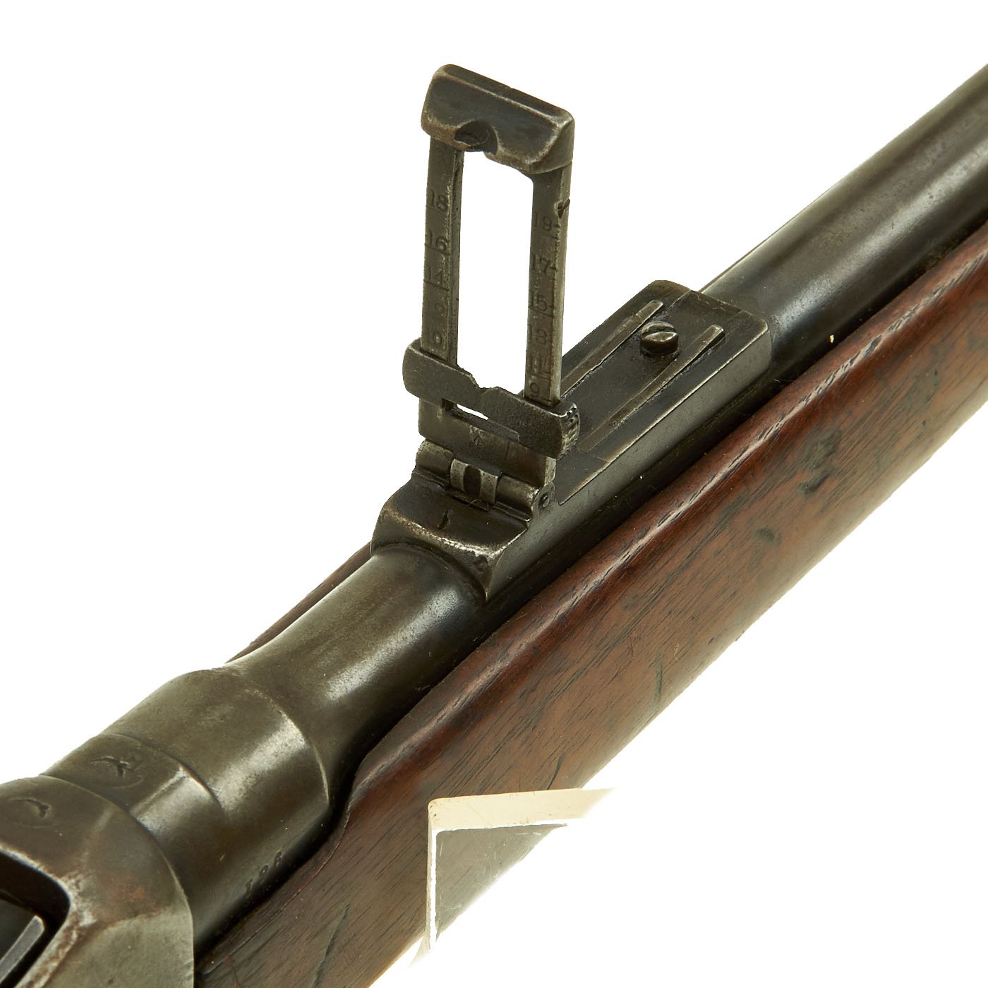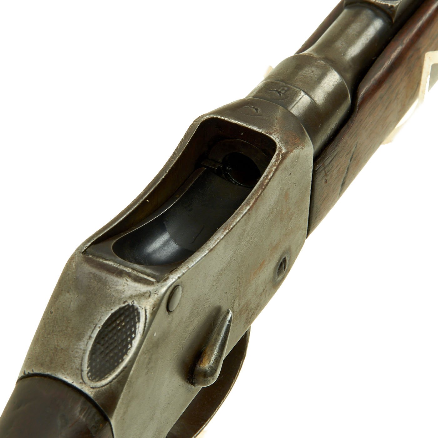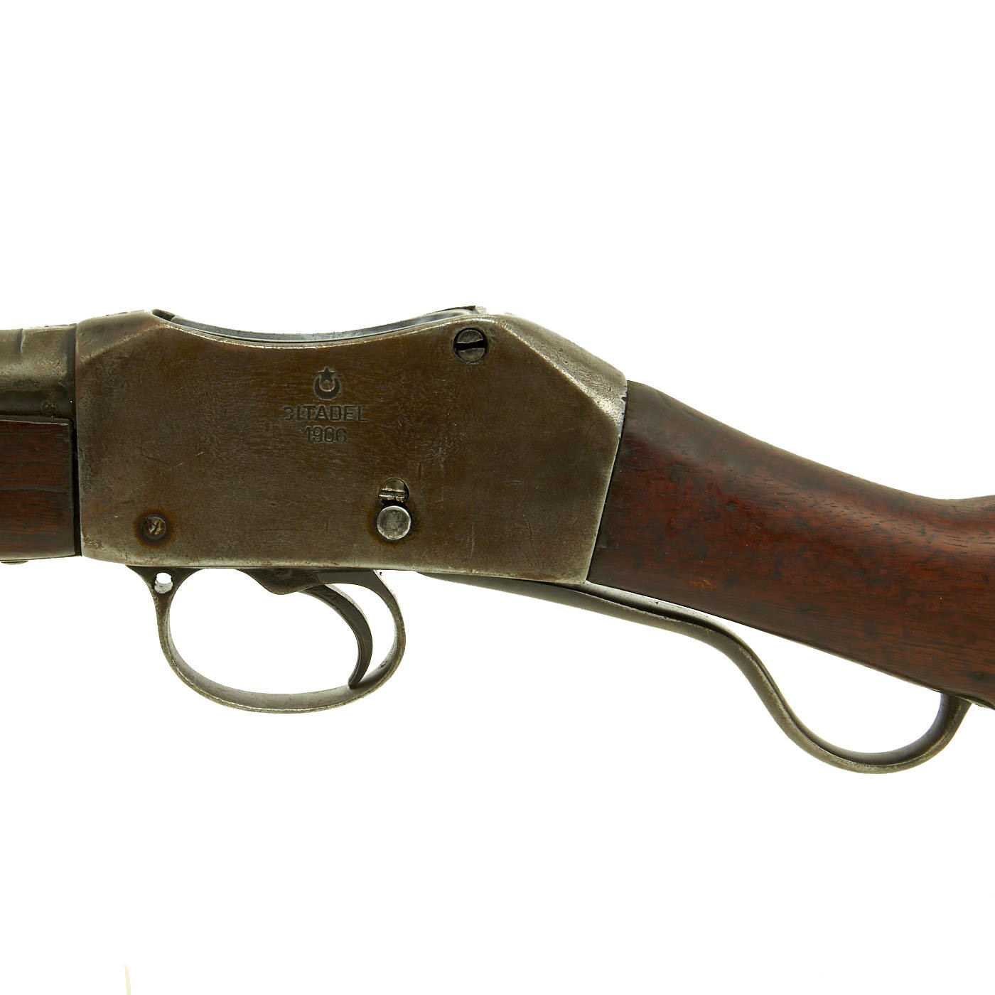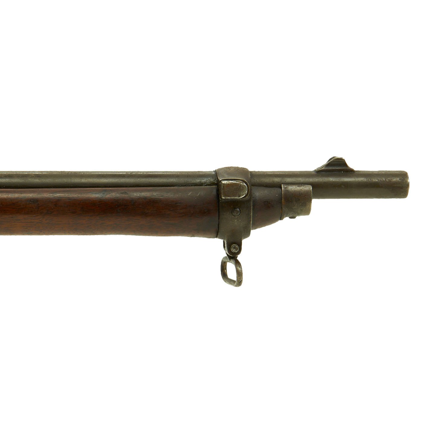 The Martini action, adopted by the British in 1871 was one of the strongest ever developed, and saw military service in England and the Empire, in one form or another for almost seventy years. Its most famous action being the defense of Rorke's Drift in Natal, South Africa in the 1879 Zulu War. The bore shows clear rifling with a bright finish, and just a bit of wear on the lands. The exterior is also in nice shape, with lovely wood, that shows the usual wear from age and service.