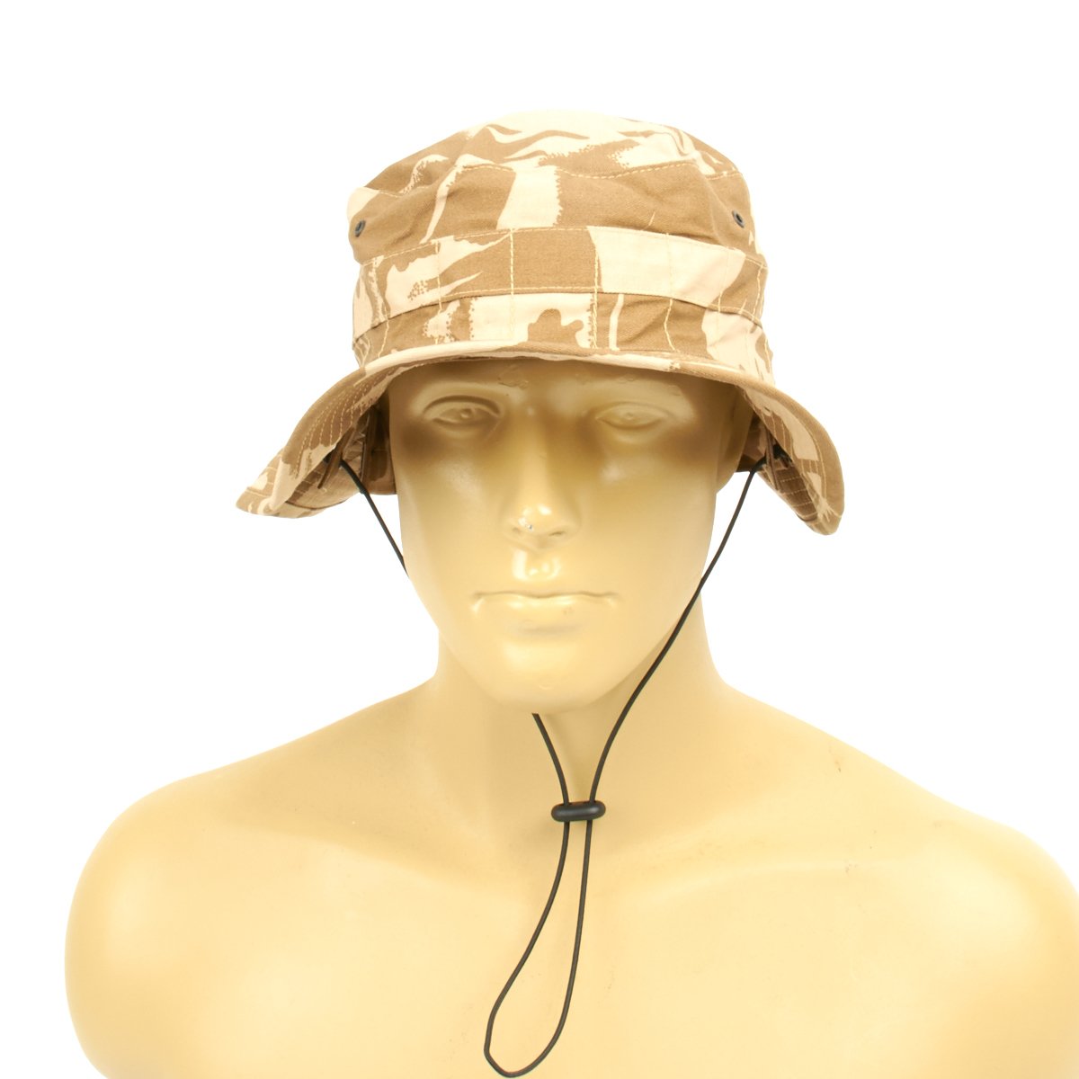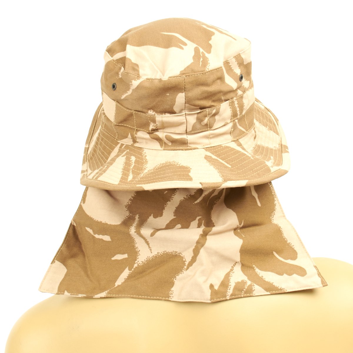 Quality canvas brimmed hats (Booney Hat Style) with detachable (Velcro) Neck protectors reminiscent of the French Foreign Legion. Four ventilation vents in crown and adjustable cord chin strap.