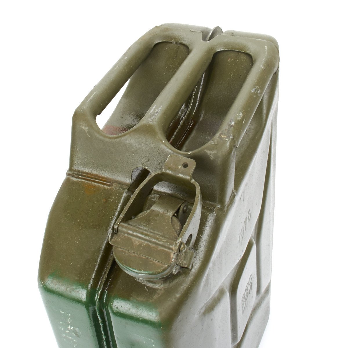 Original Item: These are the REAL thing, Broad Arrow marked and dated (1970s). These are not German, French, Bolivian or "AFTER MARKET" which we see so often offered. These are genuine British Government Surplus. Modeled on the German WW2 Jerry Can; these are of strong steel construction painted olive drab and have a five (5) Imperial gallon capacity.