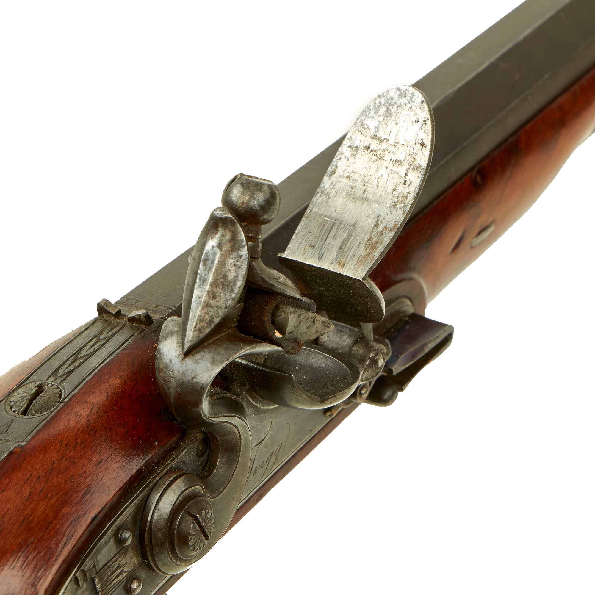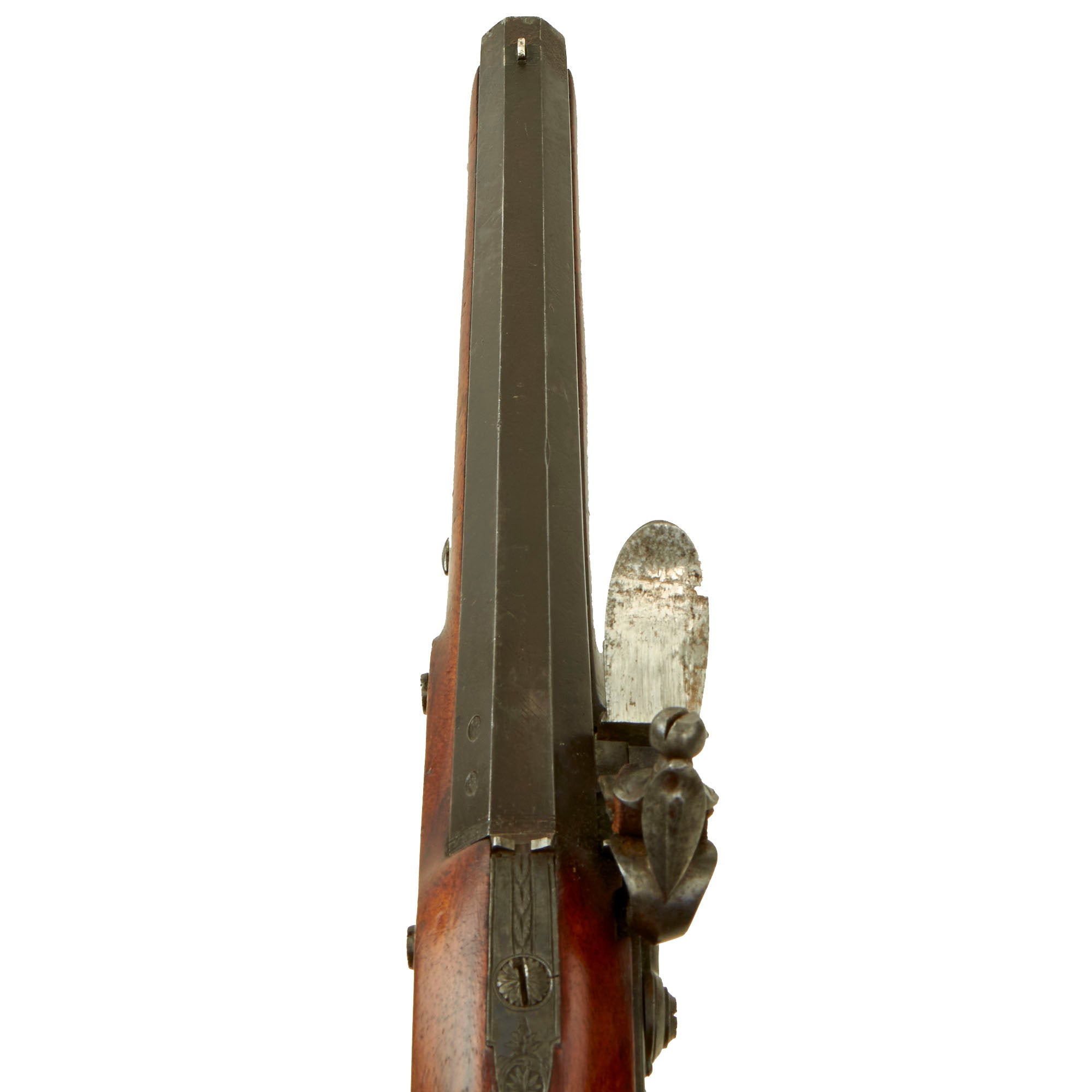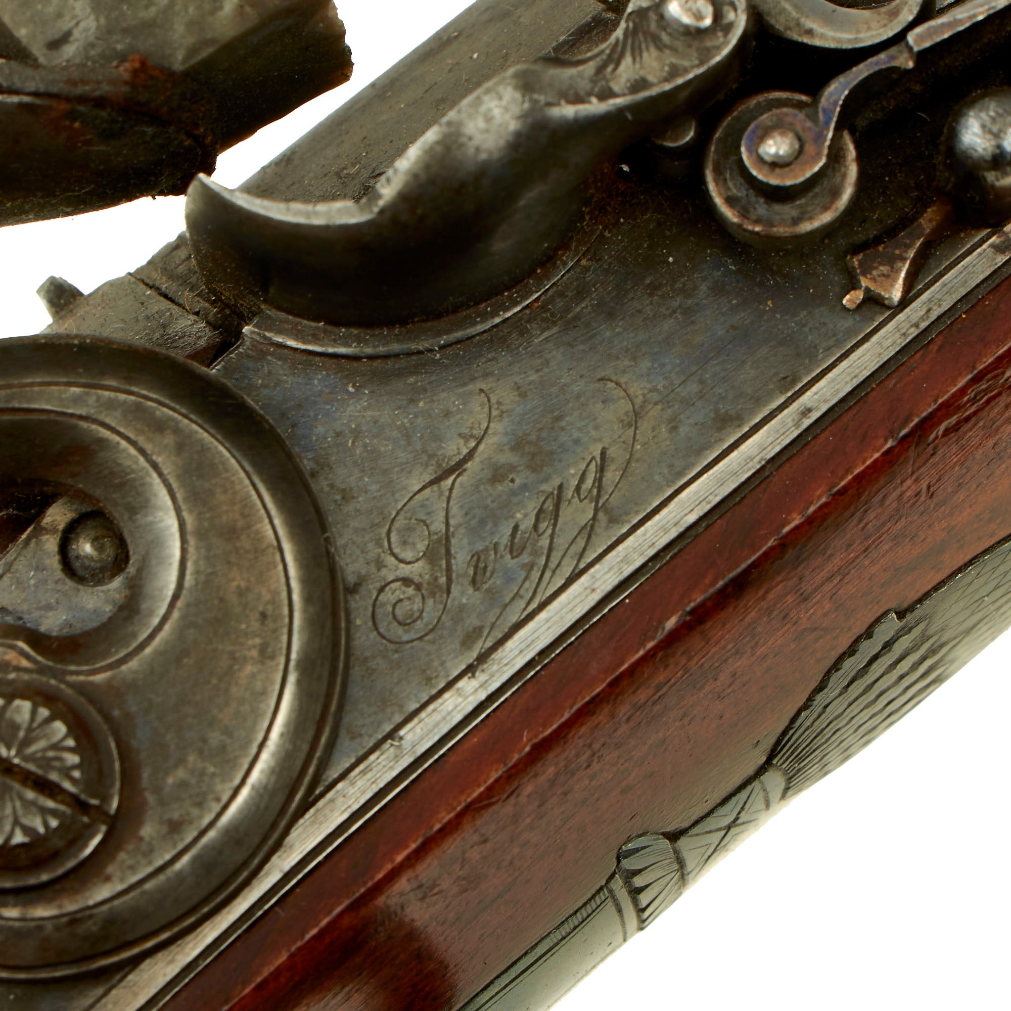 In their two-volume history, The Mantons: Gunmakers, Keith Neal and David Back credit Twigg with originating several practices and features which influenced, first, John Manton, and through him, his brother Joseph, then James Purdey, Thomas Boss, Charles Lancaster, and finally the entire London gun trade. This elegant pistol represents a lovely example of the typical later style used by Twigg, later seen throughout London. In spite of this, John Twigg is generally not as well known as he really should be.