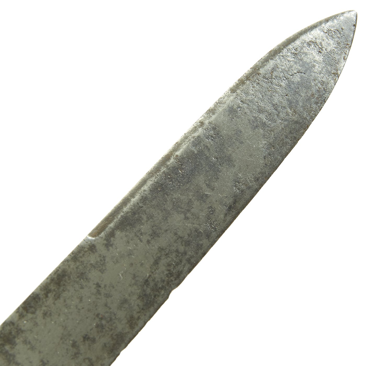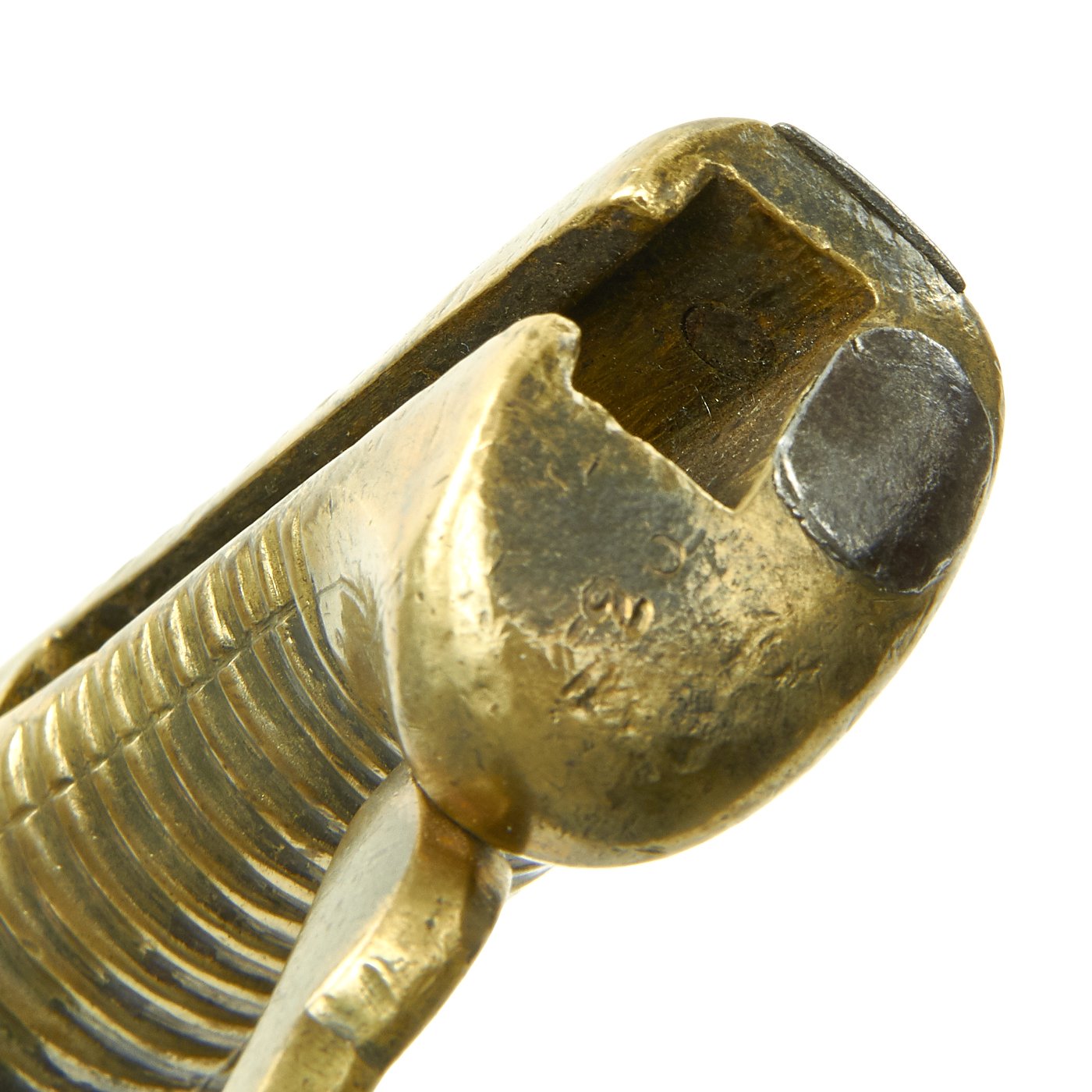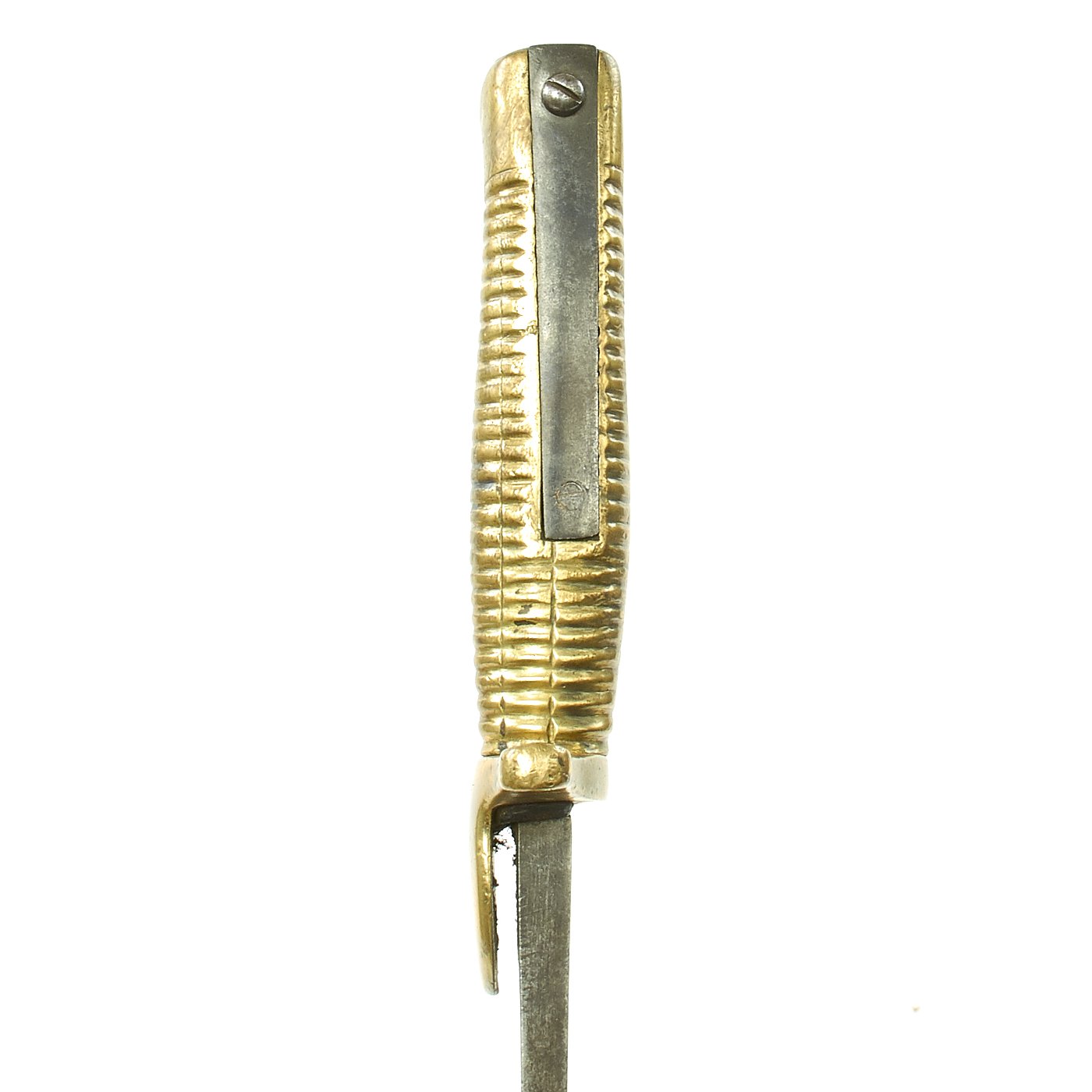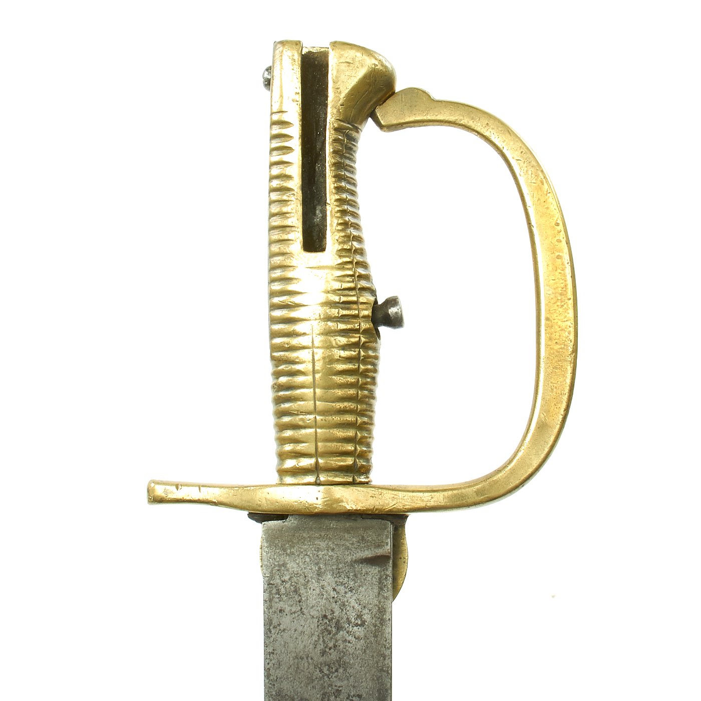 As stated this is the most appealing and best condition true Baker Rifle we have ever seen. It also comes with its original pattern brass hilted Sword Bayonet with groves in the grip and an un-fullered blade of 22 1/2" in length. There is an H / 4 Proof mark just above the cross guard scallop. The bayonet makers, name often found on the top of the blade in capital letters directly in front of the brass cross guard, has largely worn away but remnants of the upper case letters are evident at the edge of the blade. There are also traces of a regimental designation on the scallop, but they are all but worn away.