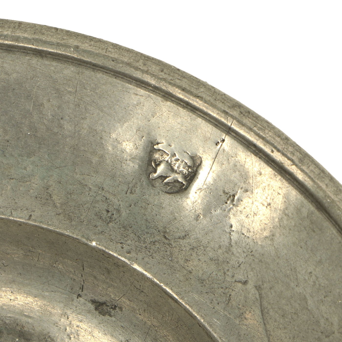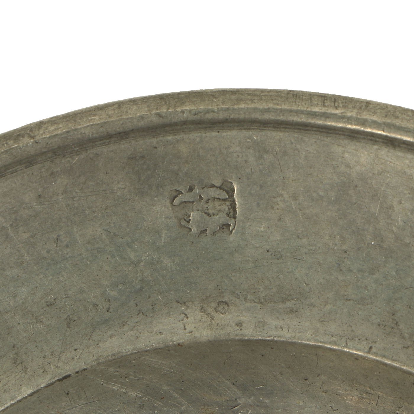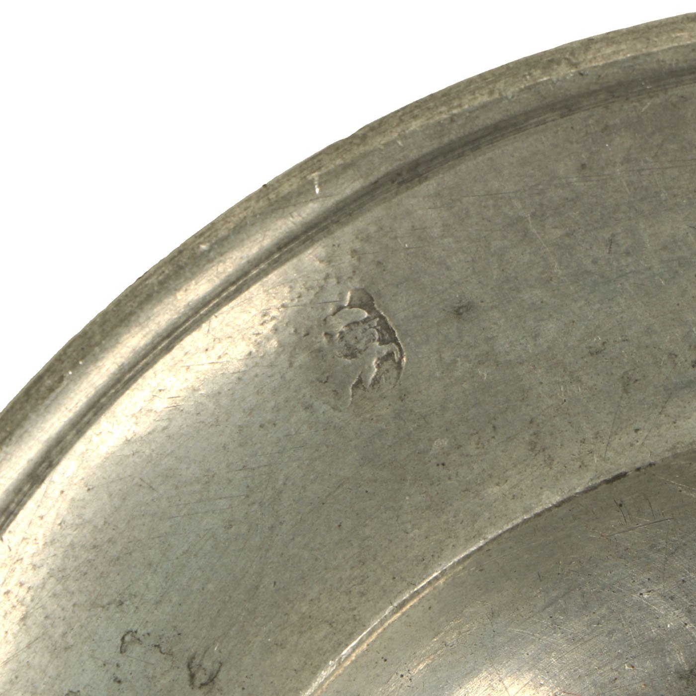 The top of the dish is also marked with three identical Pewter Hallmarks, which may be makers marks. Unfortunately the system for the marks on pewter is much more complex than those on silver. We searched but were unable to identify the maker.