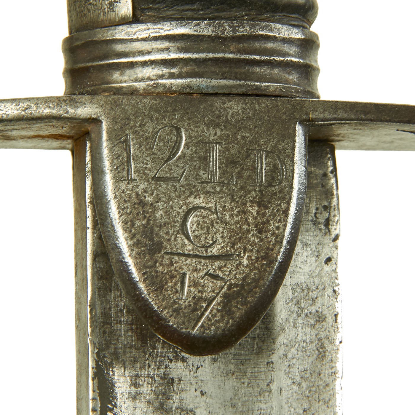 The C / 17 marking can be seen on the top of the scabbard as well. This indicates that the Trooper was in "C" Company and was the seventeenth man. In generally great condition the scabbard has small rust pits overall, the whole in very collectible condition.