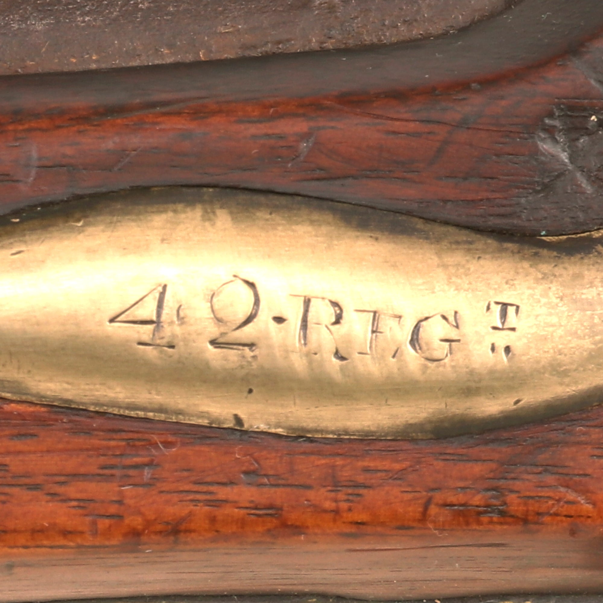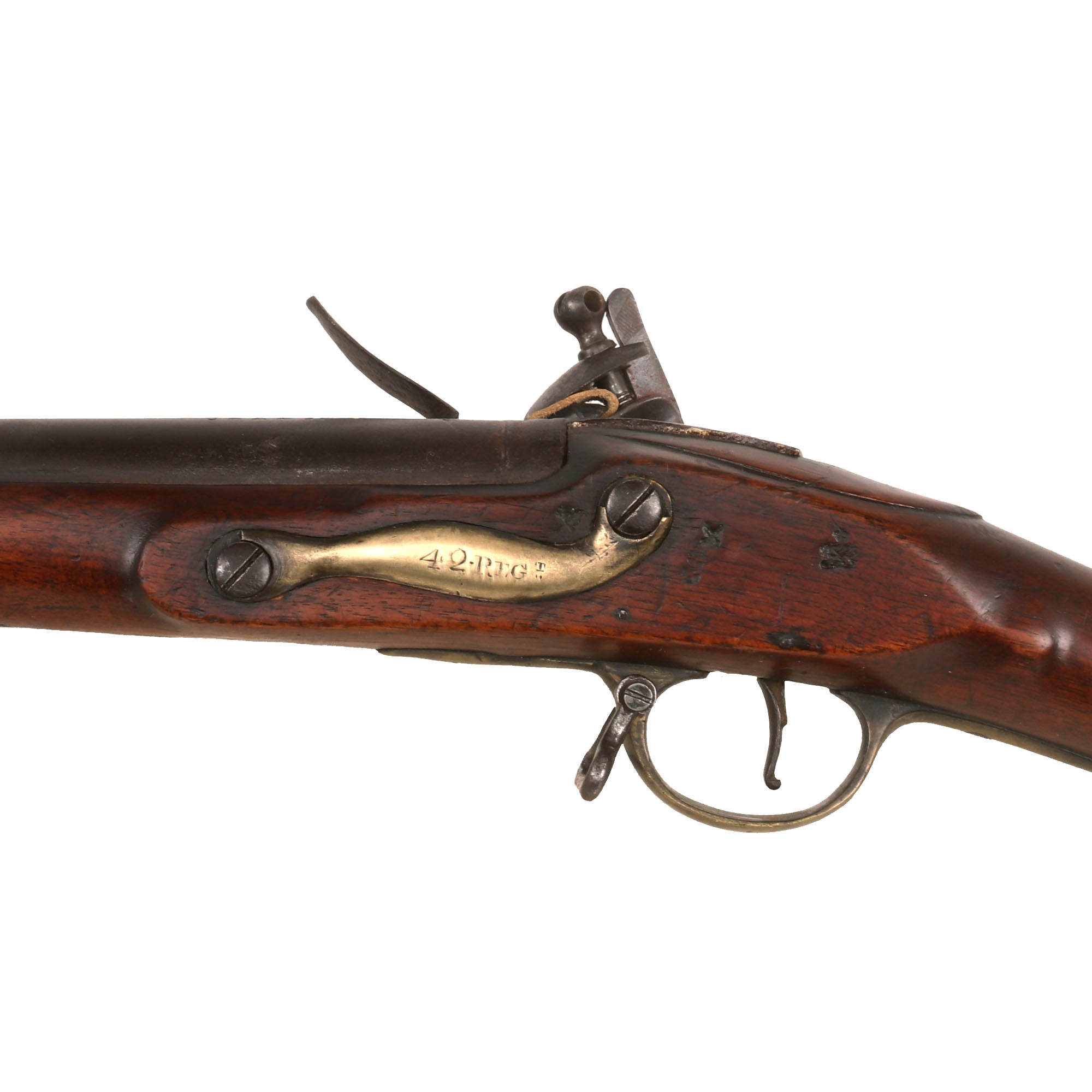 The 42nd (Royal Highland) Regiment of Foot saw extensive service during the Napoleonic wars, having fought during many barrels, including the final Battle of Waterloo. This musket is the correct style, and definitely could have been there! The stock has additional markings, such as the "Crown" / B O / "Broad Arrow" marking from the Board of Ordnance on the left side of the butt stock. There are other smaller markings which could be additional avenues of further research.
