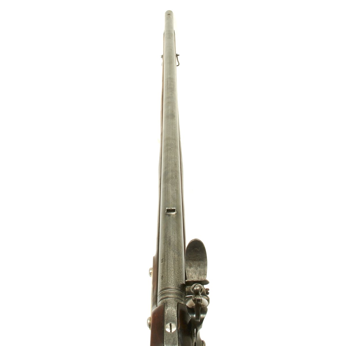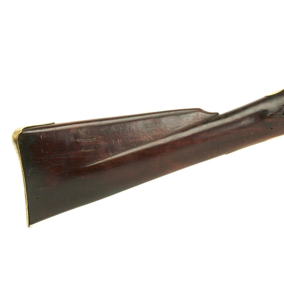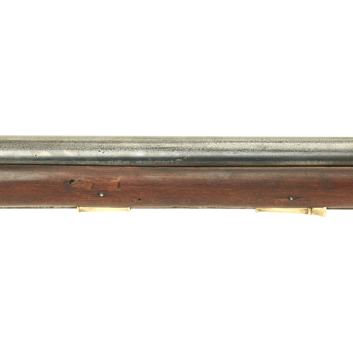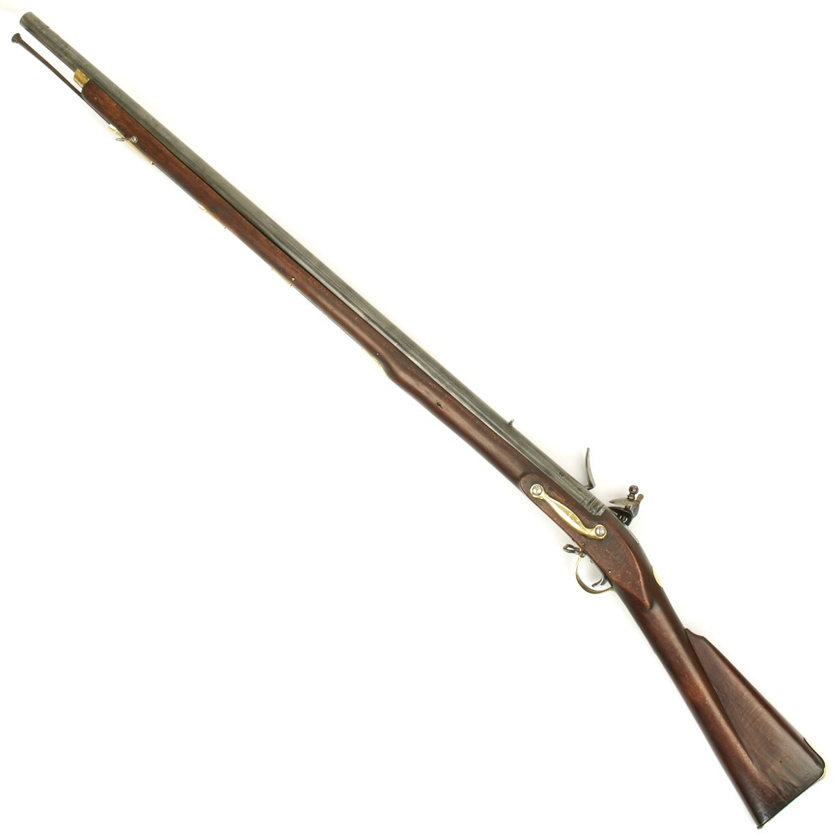The musket is in overall terrific condition and was found here in the U.S., fully cleaned and ready to display. Stock is in excellent shape, and the only detracting feature is the missing front sight, which appears to have been replaced once before.