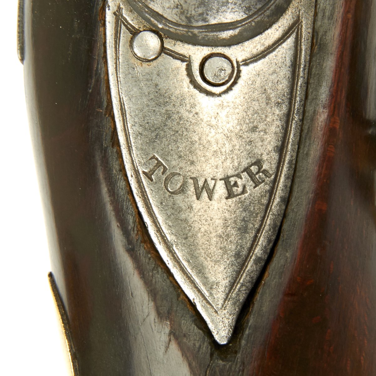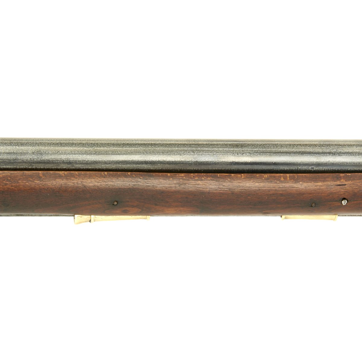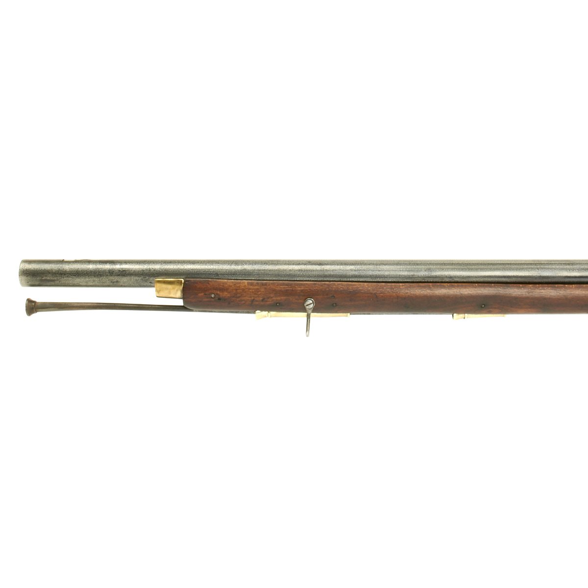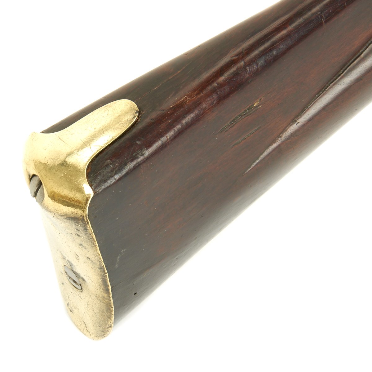 The musket is in overall terrific condition and was found here in the U.S., fully cleaned and ready to display. Stock is in excellent shape, and the only detracting feature is the missing front sight, which appears to have been replaced once before.