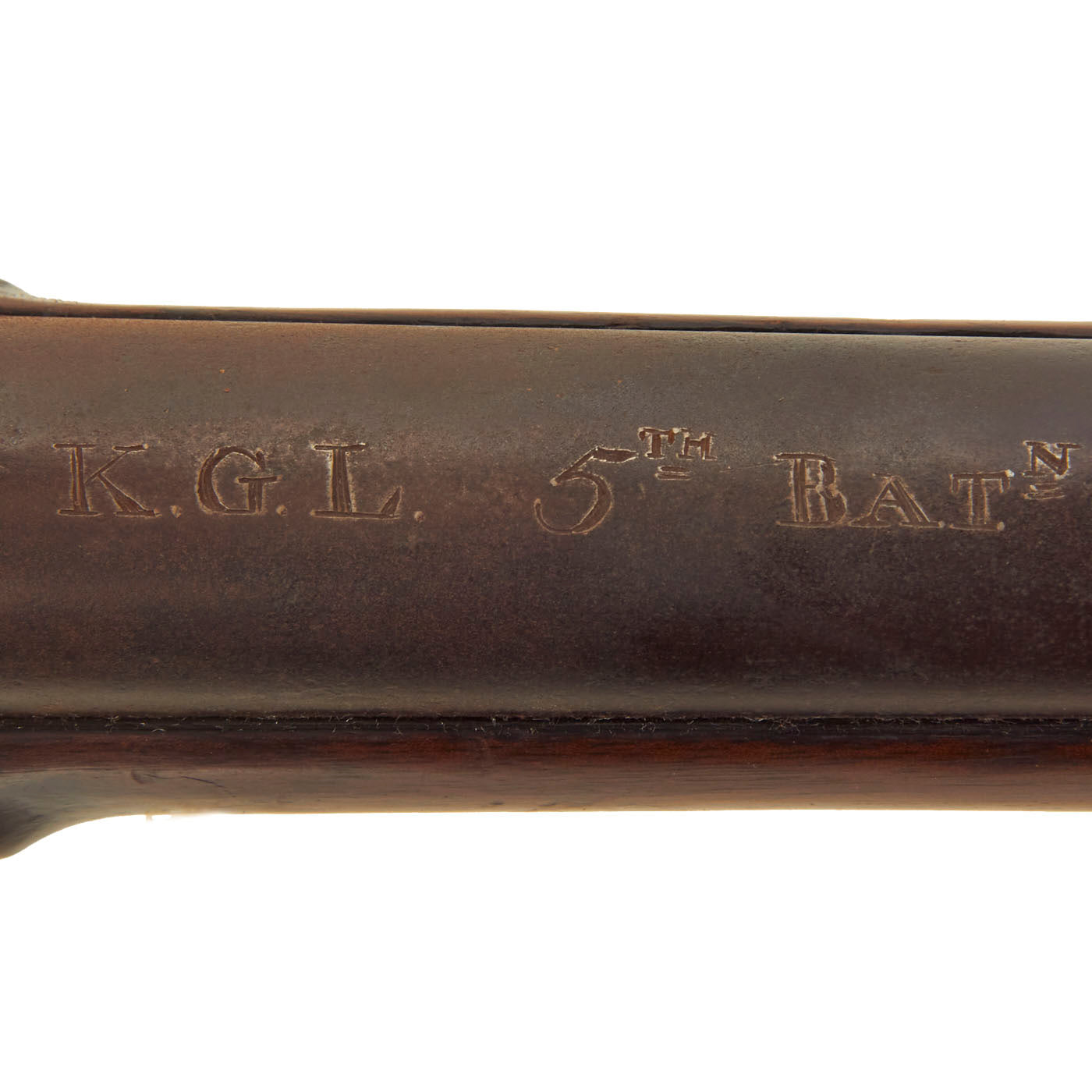 Original Item: Only One Available. This is a fine example of a British Third Model Brown Bess, with the 39" barrel adopted in 1796. Also known as the "India Pattern", it was the standard Musket of the line during 1815, the time of the Battle of Waterloo. It is marked on the top of the barrel with K. G. L. 5'TH BAT'N, for the KING'S GERMAN LEGION, 5TH BATTALION. This musket almost certainly saw service during the Napoleonic Wars, and may have been been carried on the battlefield at Waterloo itself!