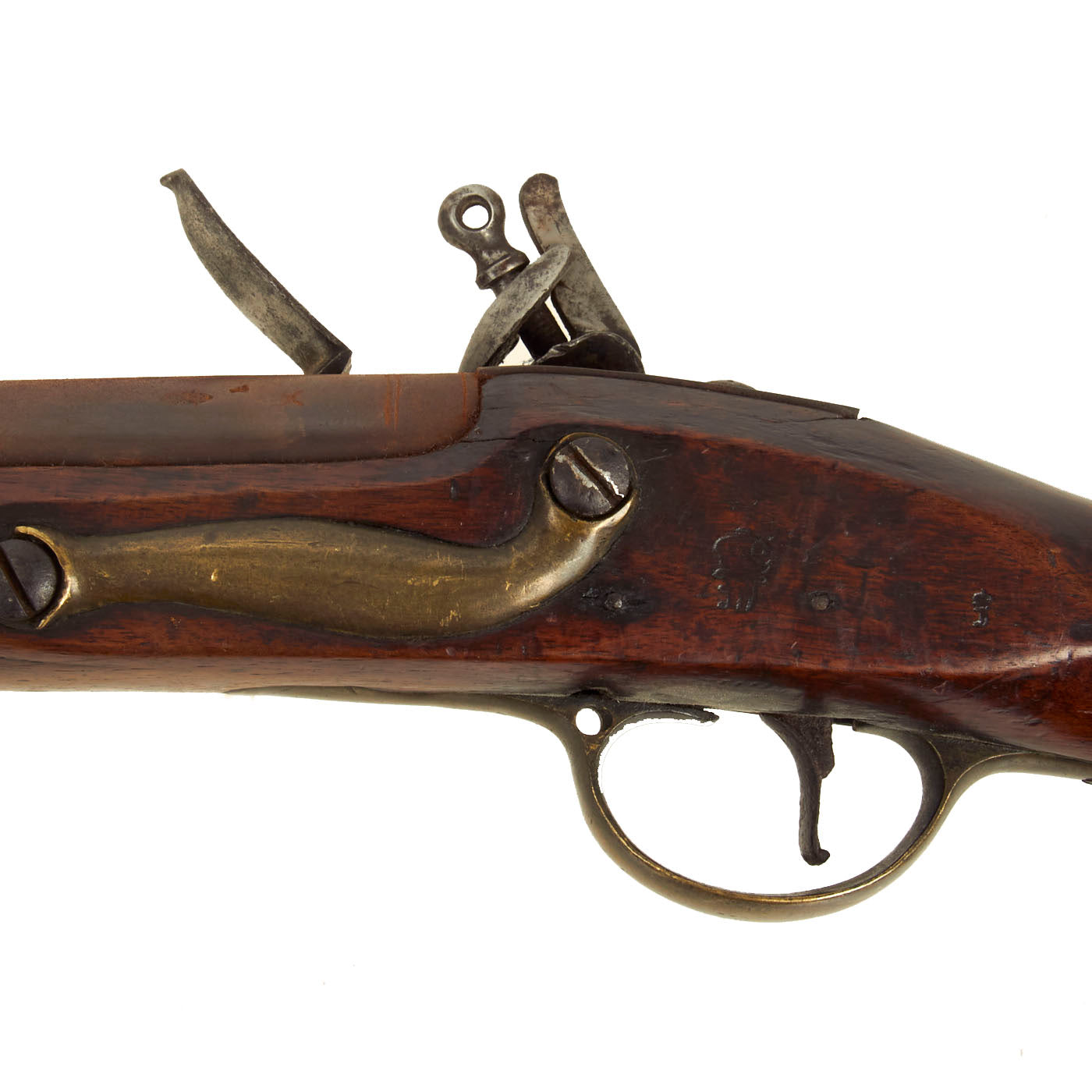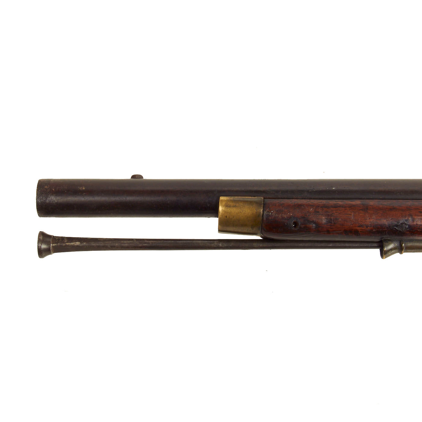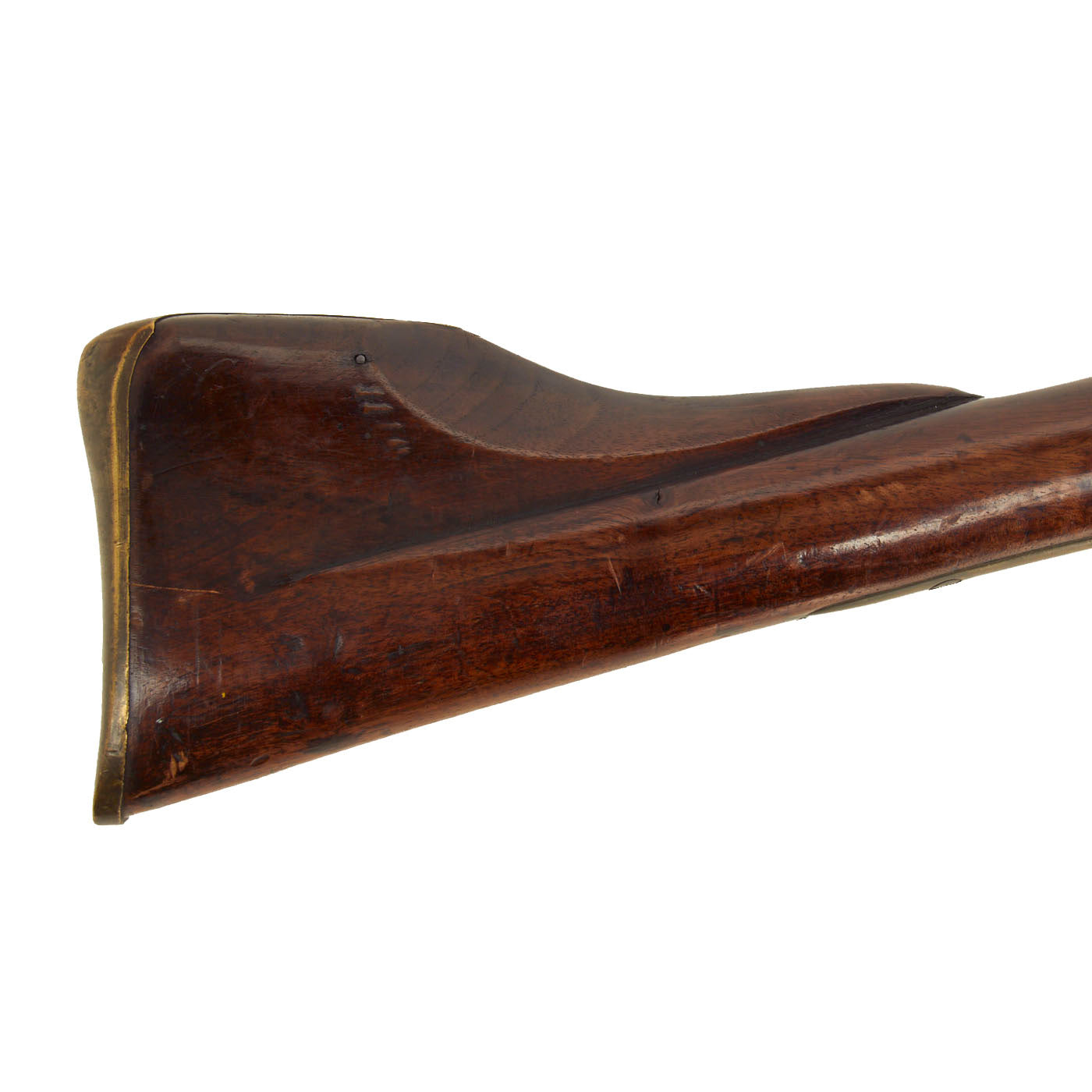 The stock on this example is in very good shape, and the cutout cheek rest in the butt stock really adds to the charm! There is of course the usual denting and scratching from wear, expected on a musket that has seen real service. The sling swivels were unfortunately removed at some point, probably after it left military service. There are some interesting markings on the butt plate tang, which read 31. C. / No. 14, which may be a rack number, probably from when it was in British service.