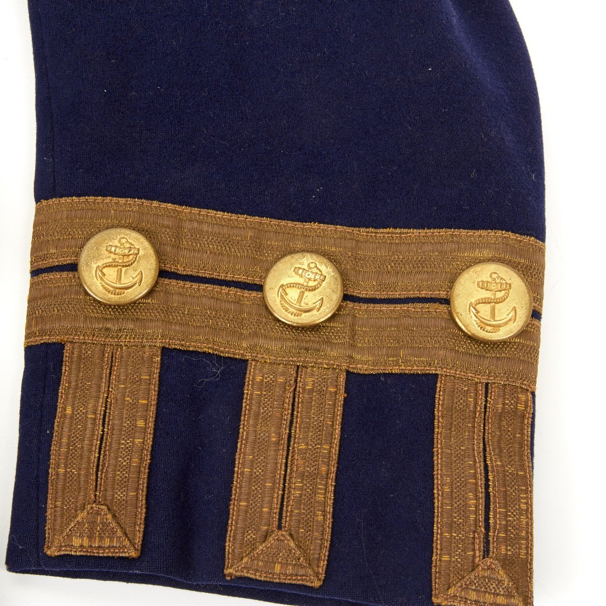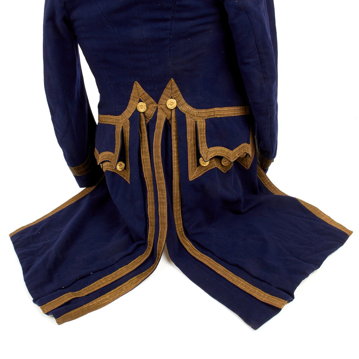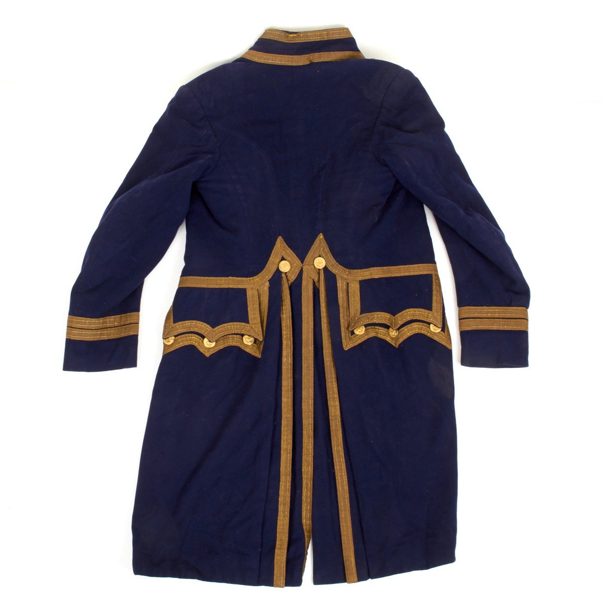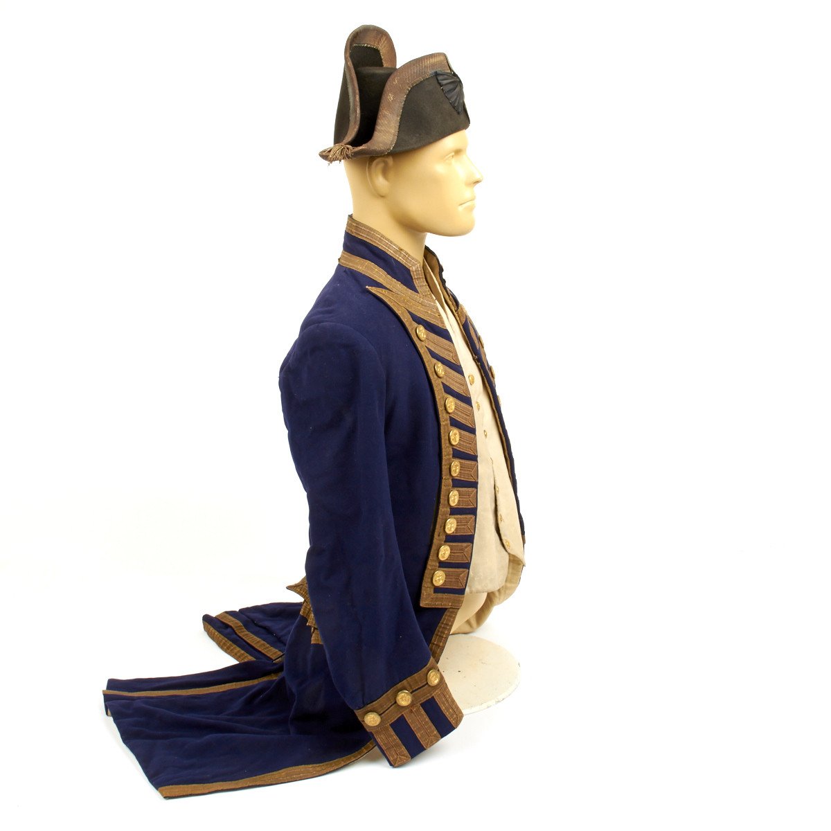 - Officer's Frock Coat with gold braid, all original Naval gilt Buttons and lining complete. Note the quilted stitching in inner arm area (repaired/replaced) was resewn post 1830.