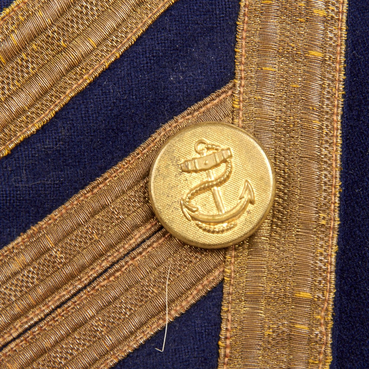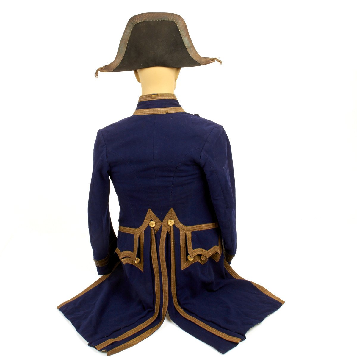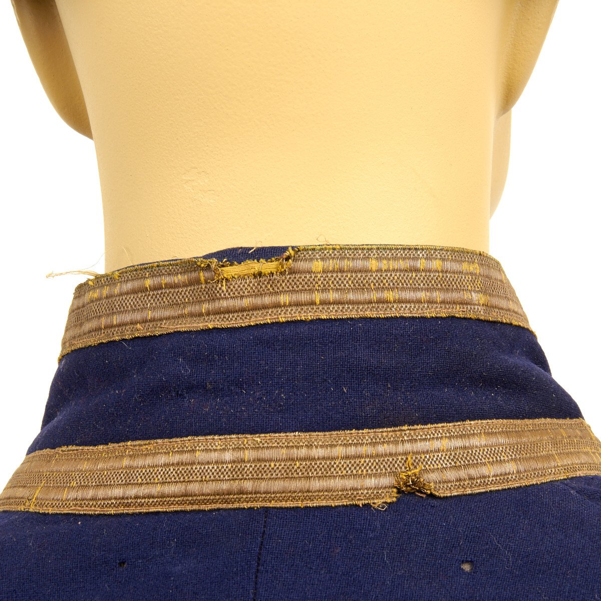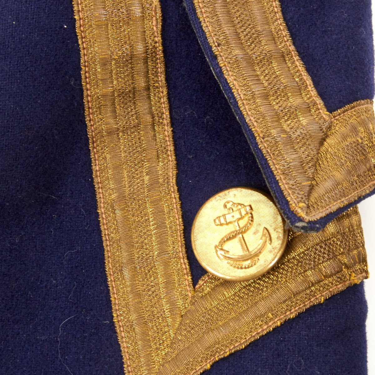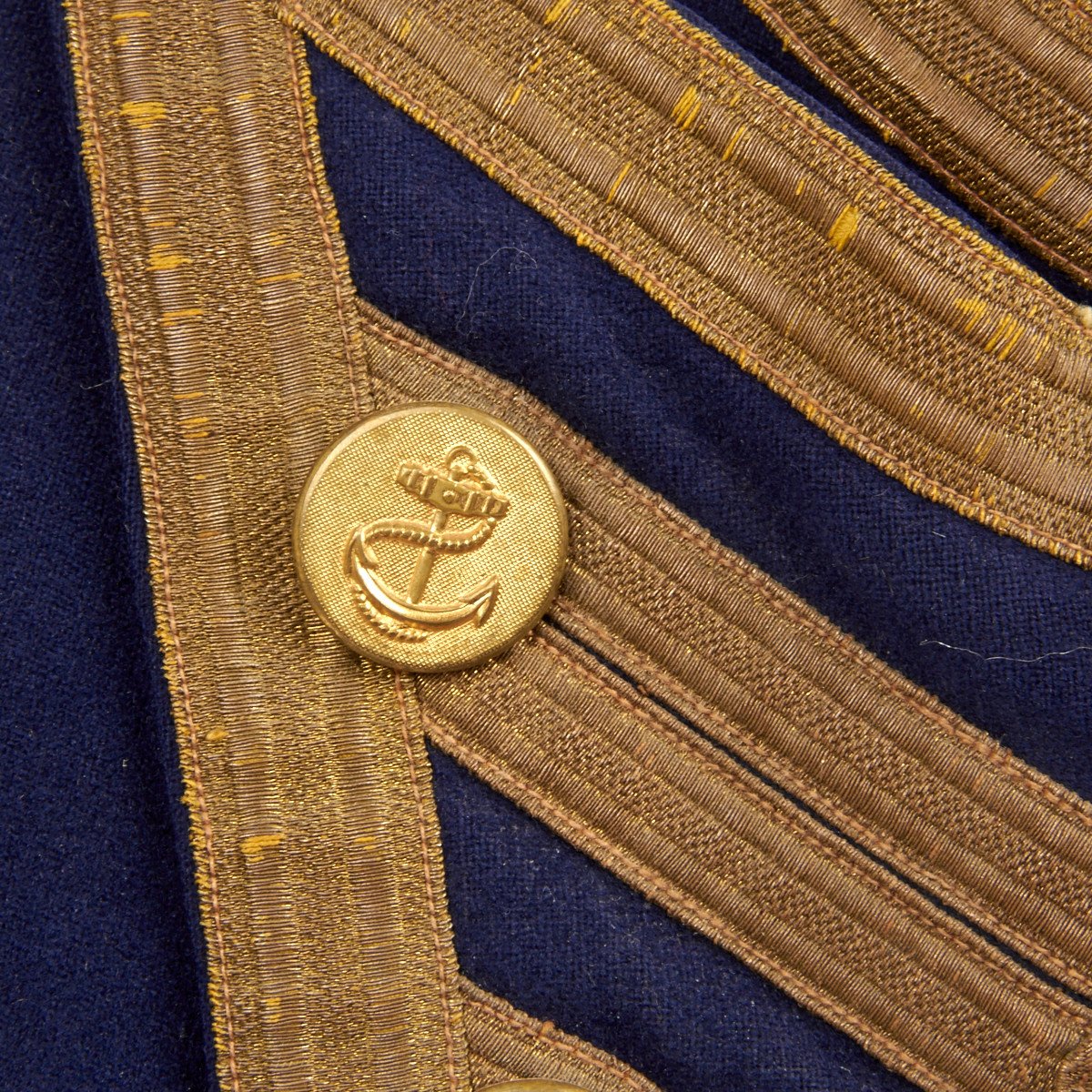 - Officer's Frock Coat with gold braid, all original Naval gilt Buttons and lining complete. Note the quilted stitching in inner arm area (repaired/replaced) was resewn post 1830.