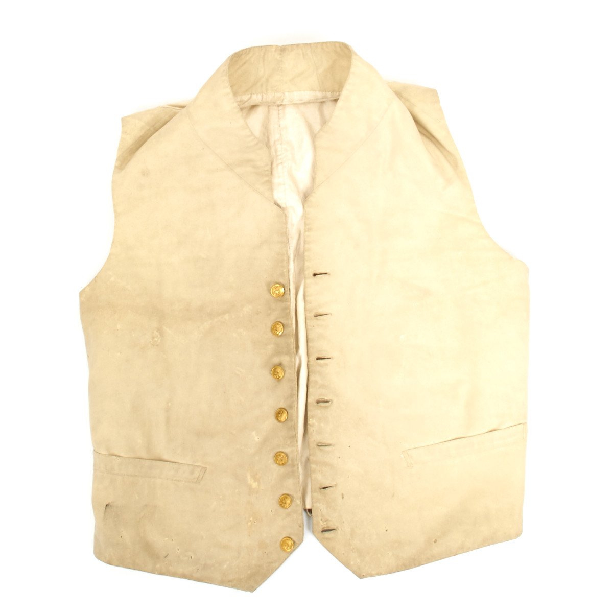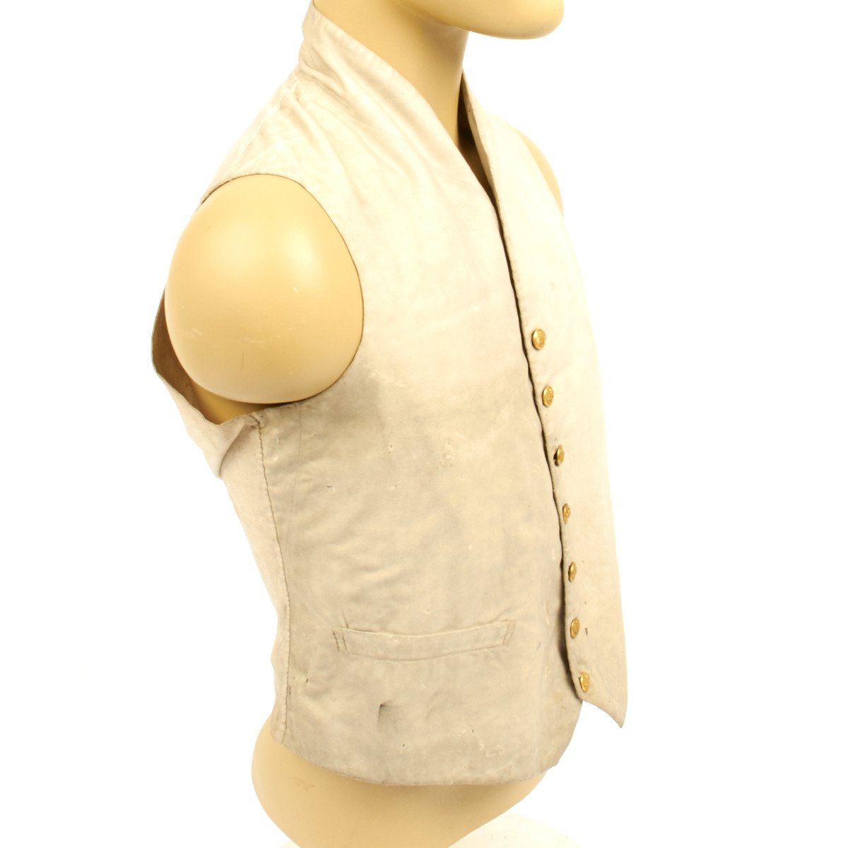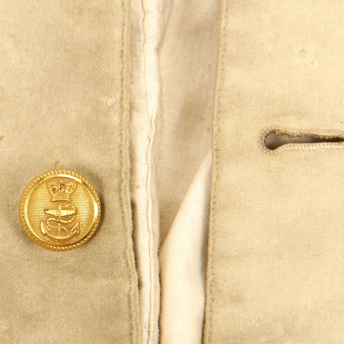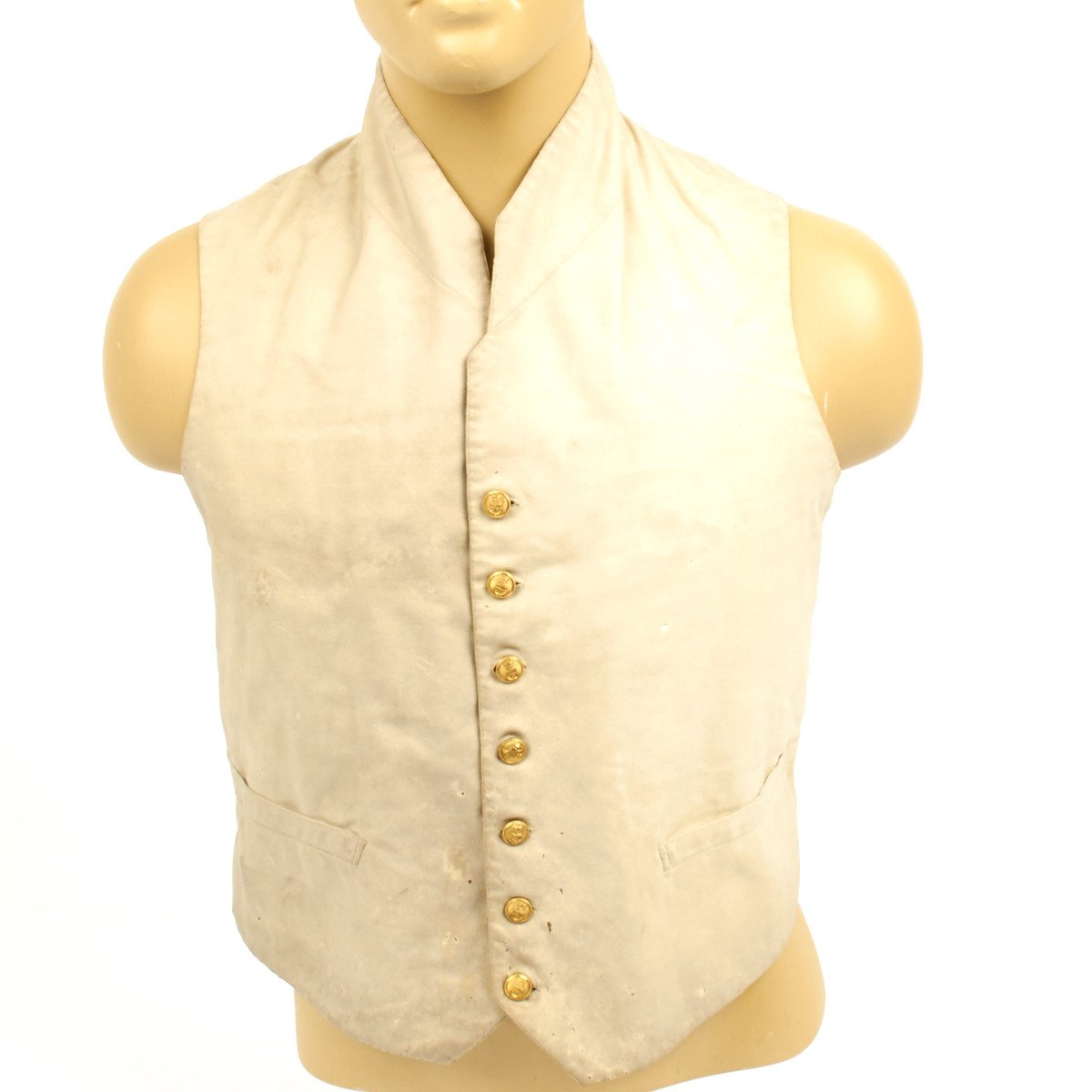 - Officer's quality white waistcoat with sizing ribbons to rear and all gilt Naval buttons in place.